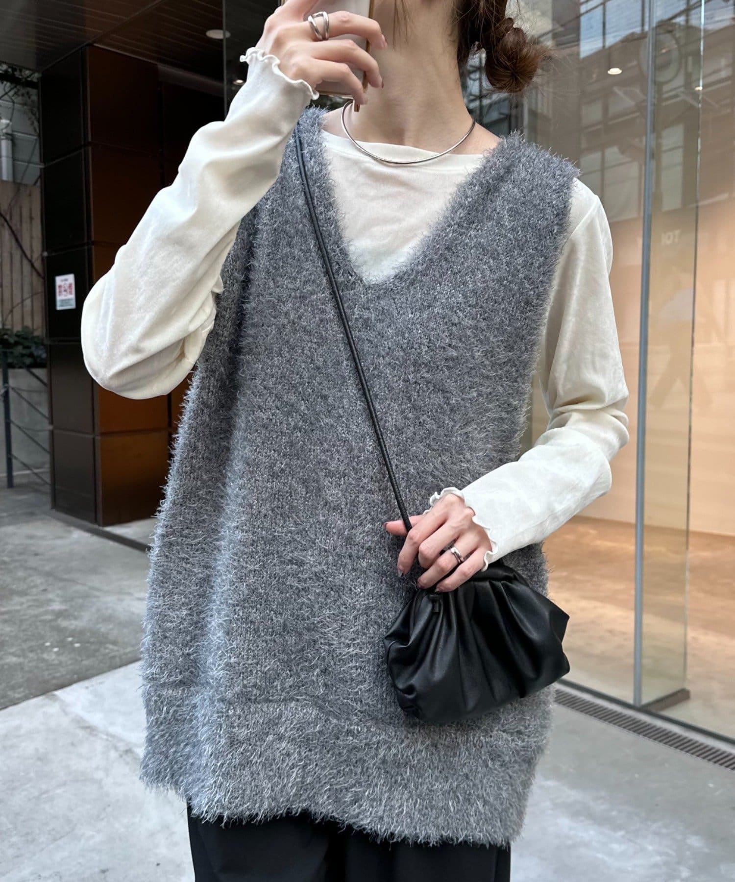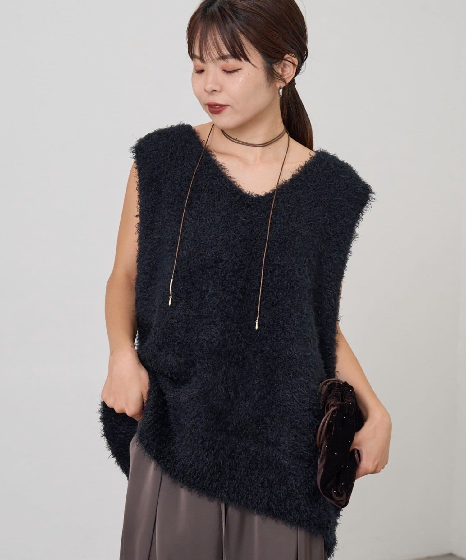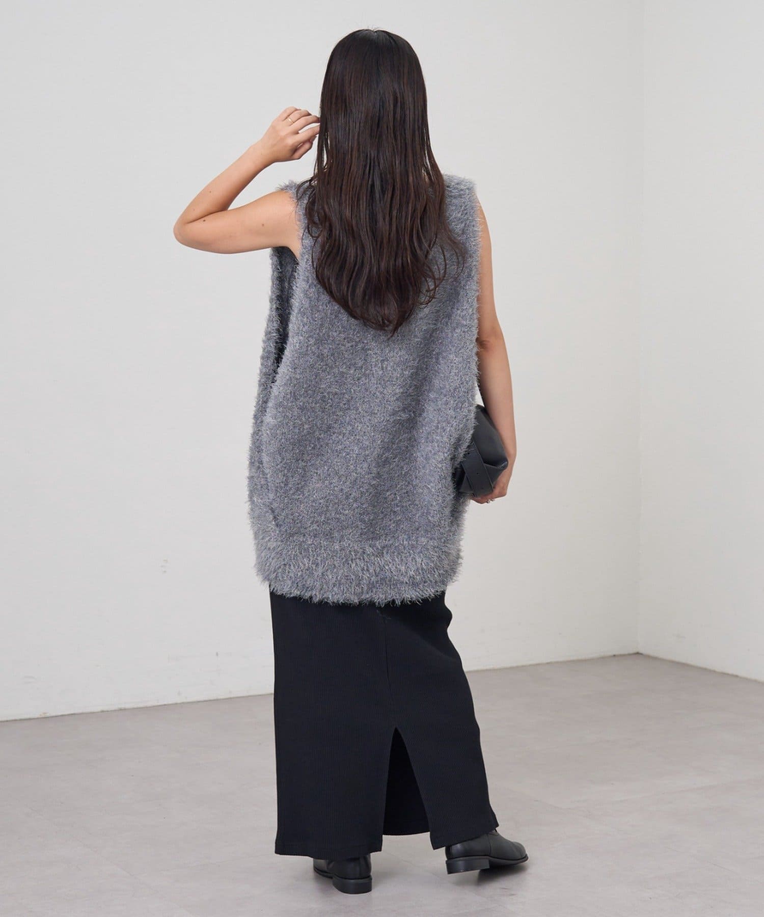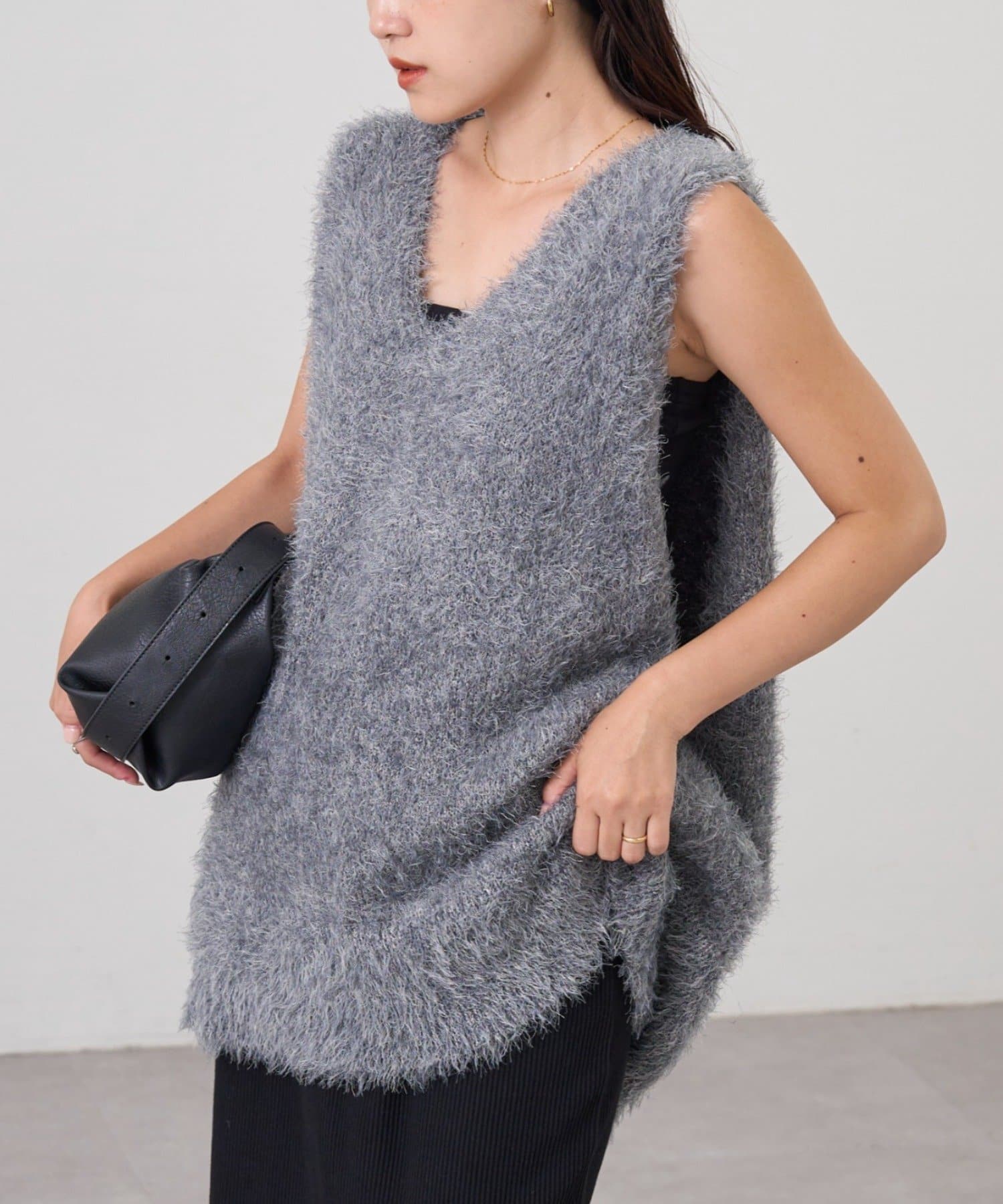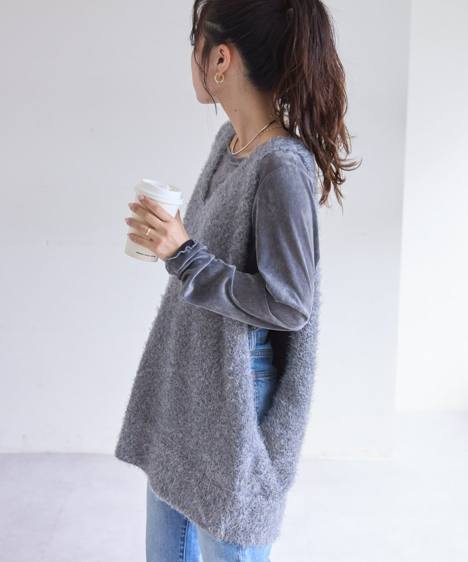 【体型カバーと抜け感◎】ミックスフェザーヤーンオーバーニットベスト(WEB限定)