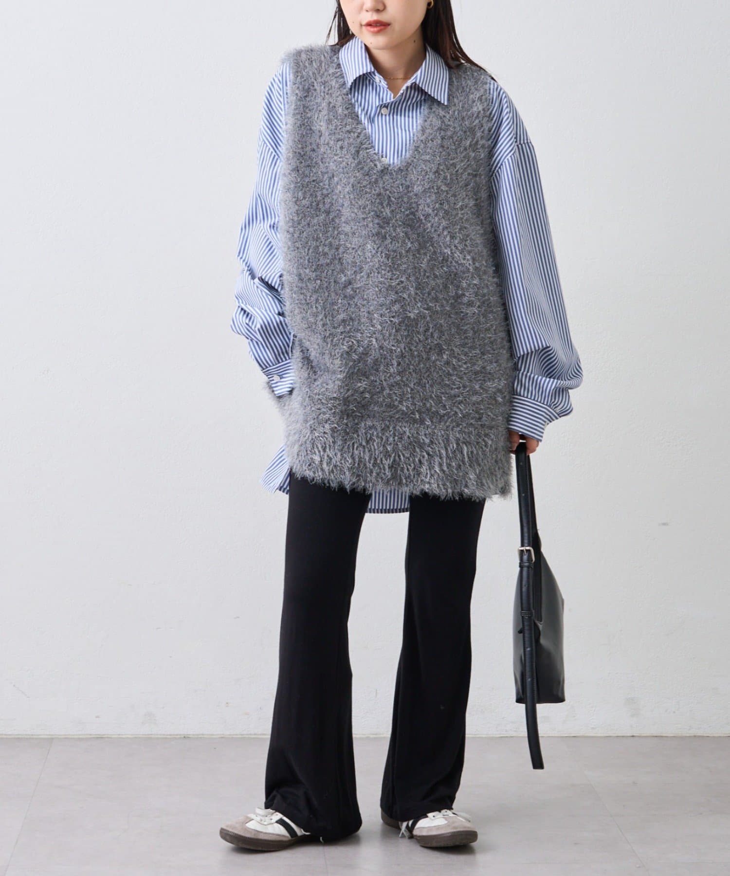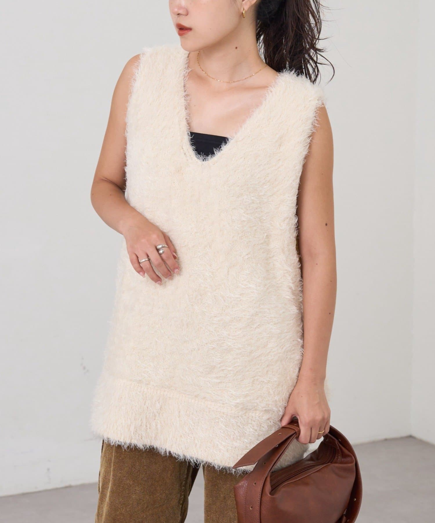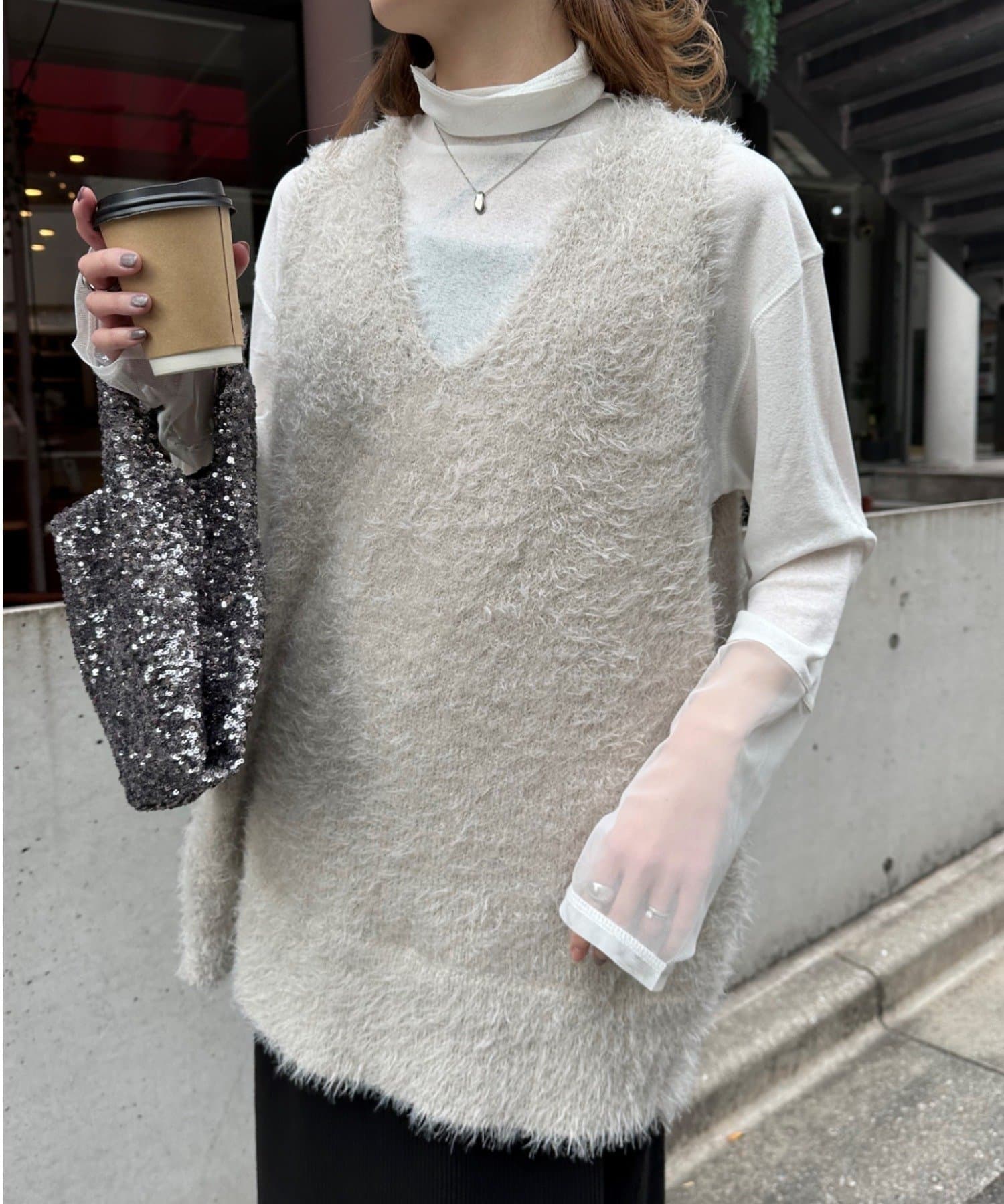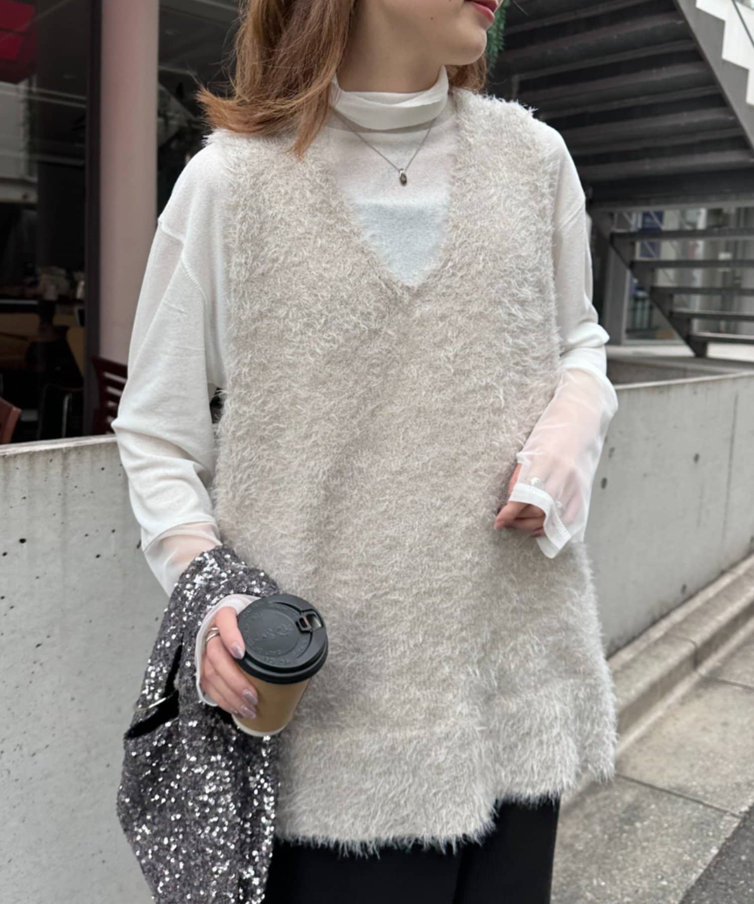 【体型カバーと抜け感◎】ミックスフェザーヤーンオーバーニットベスト(WEB限定)