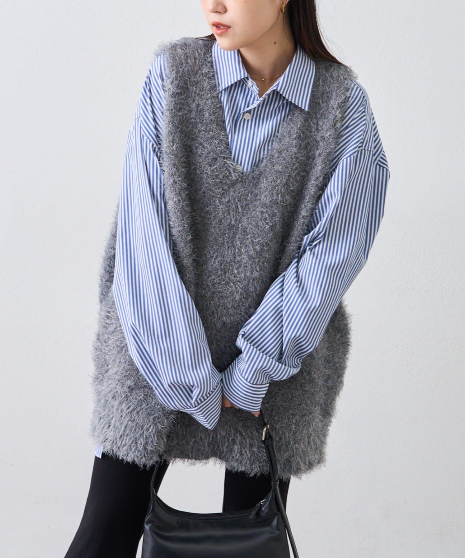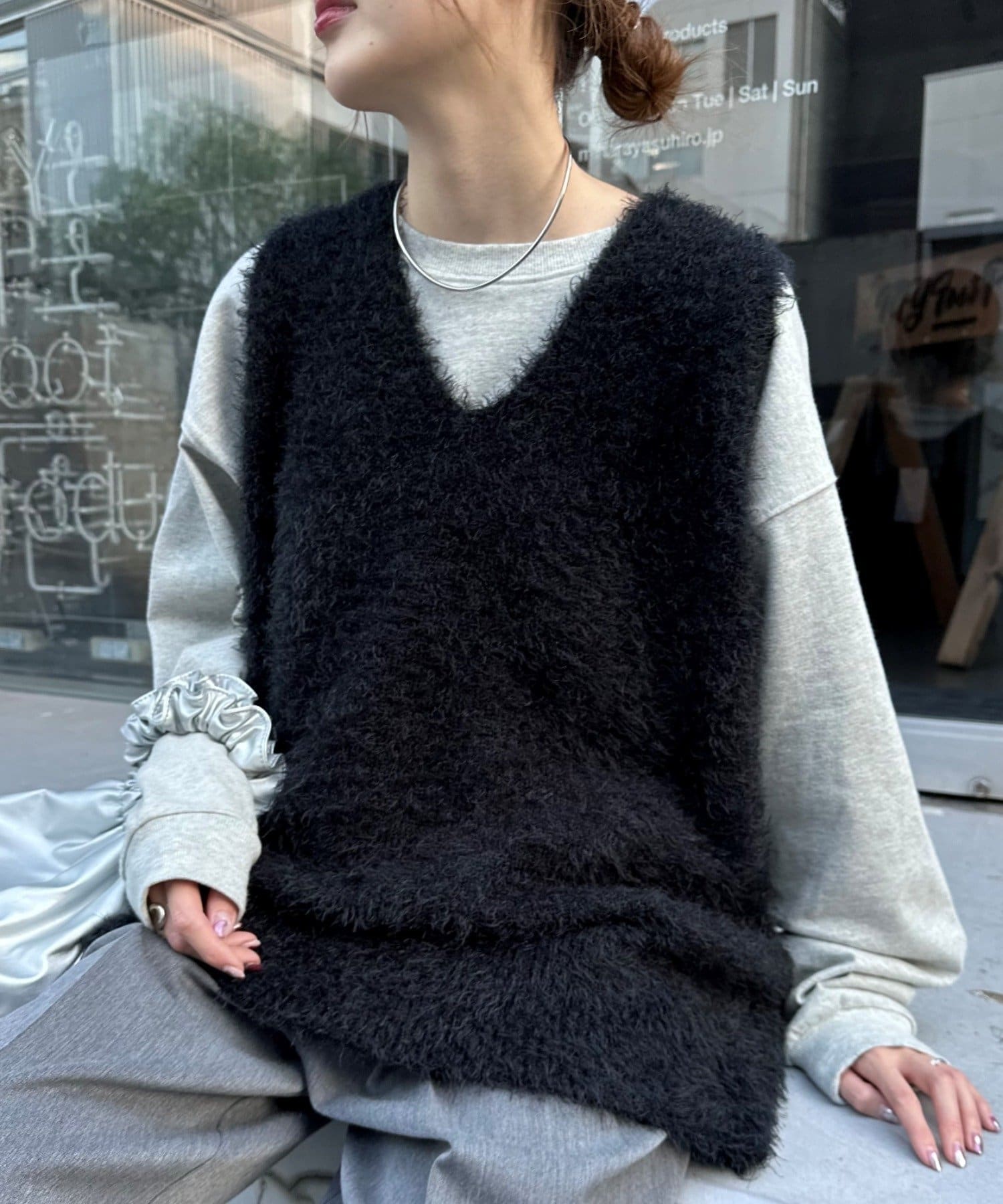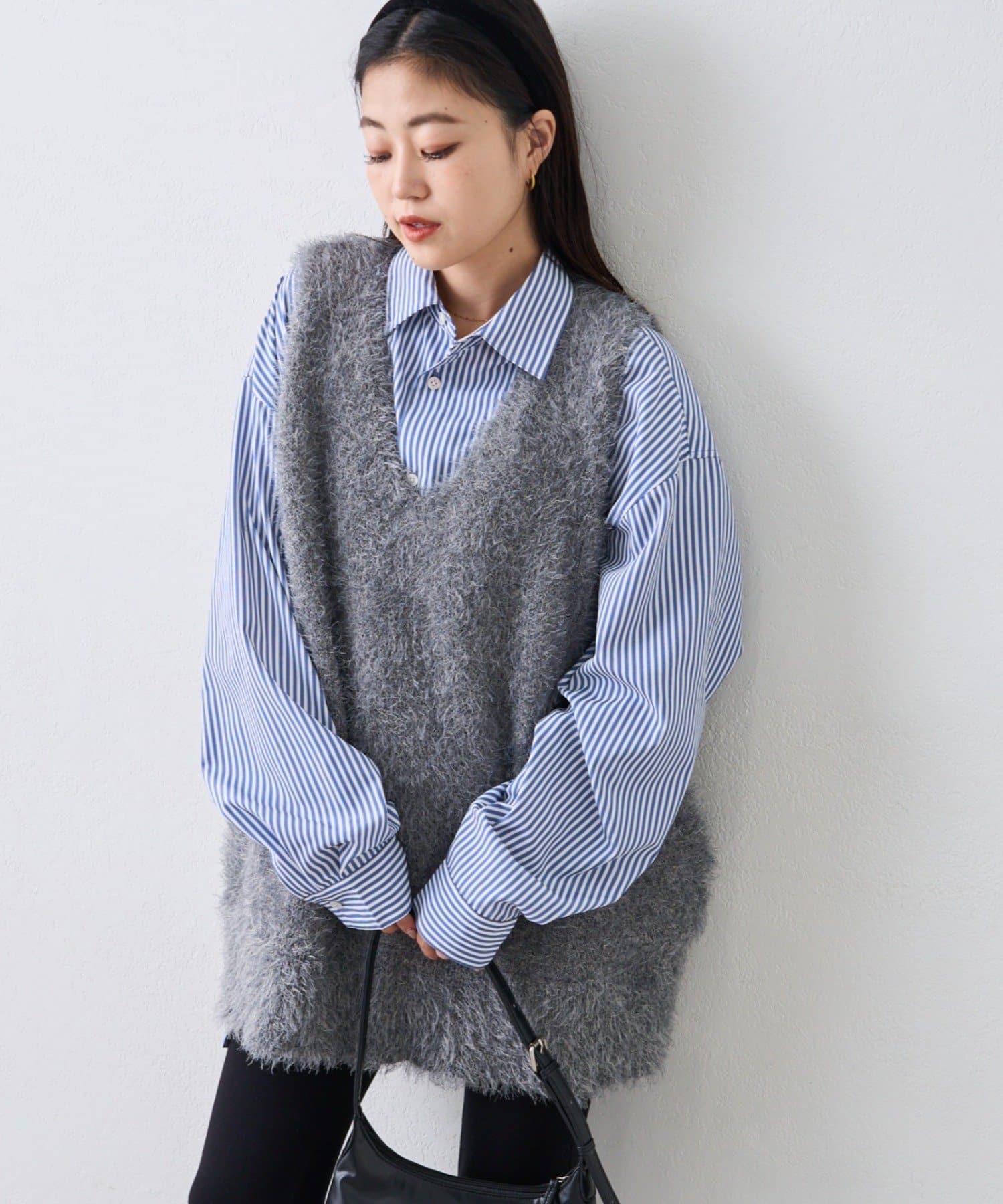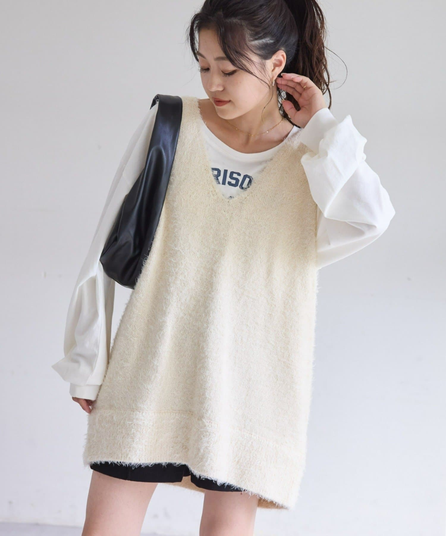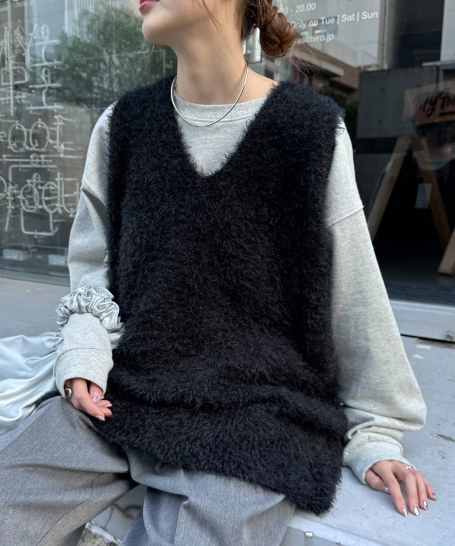 【体型カバーと抜け感◎】ミックスフェザーヤーンオーバーニットベスト(WEB限定)