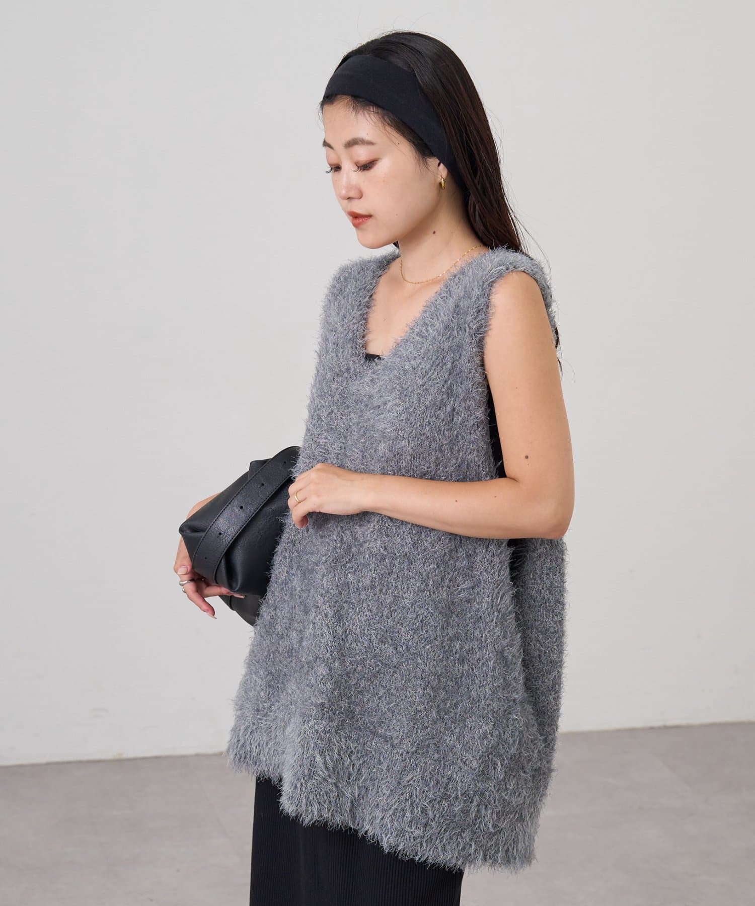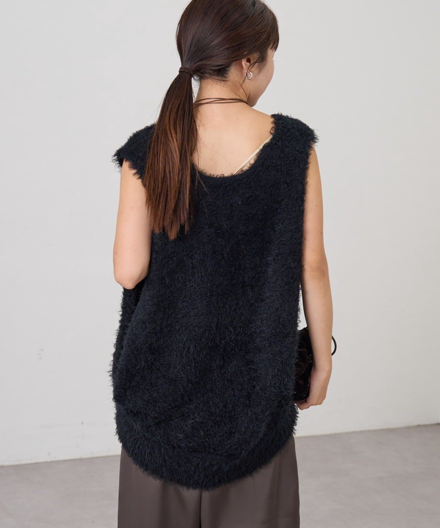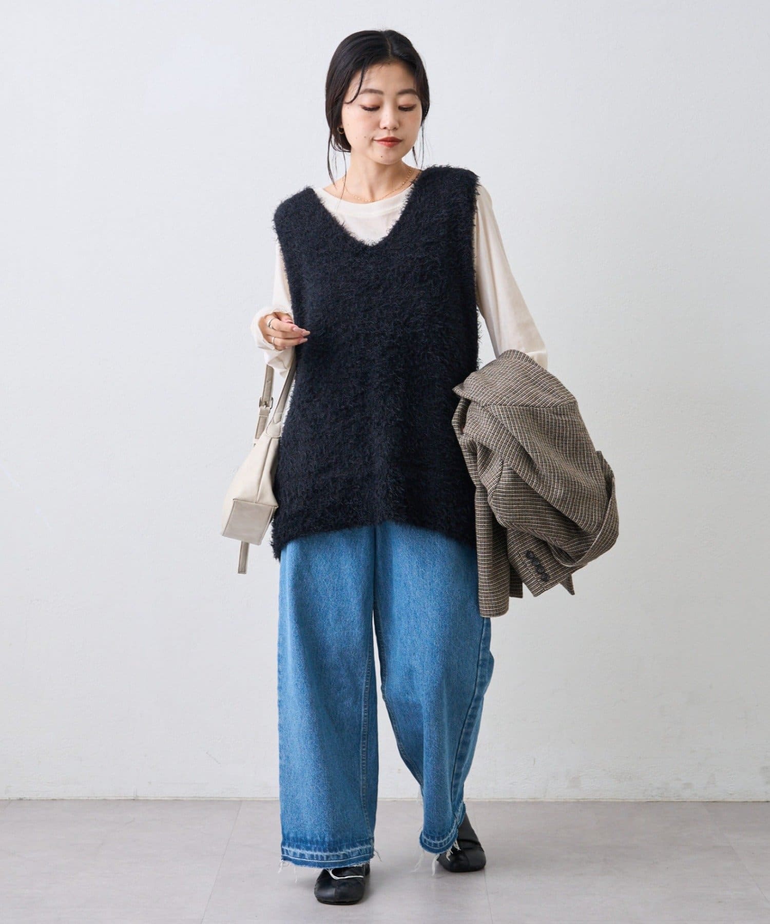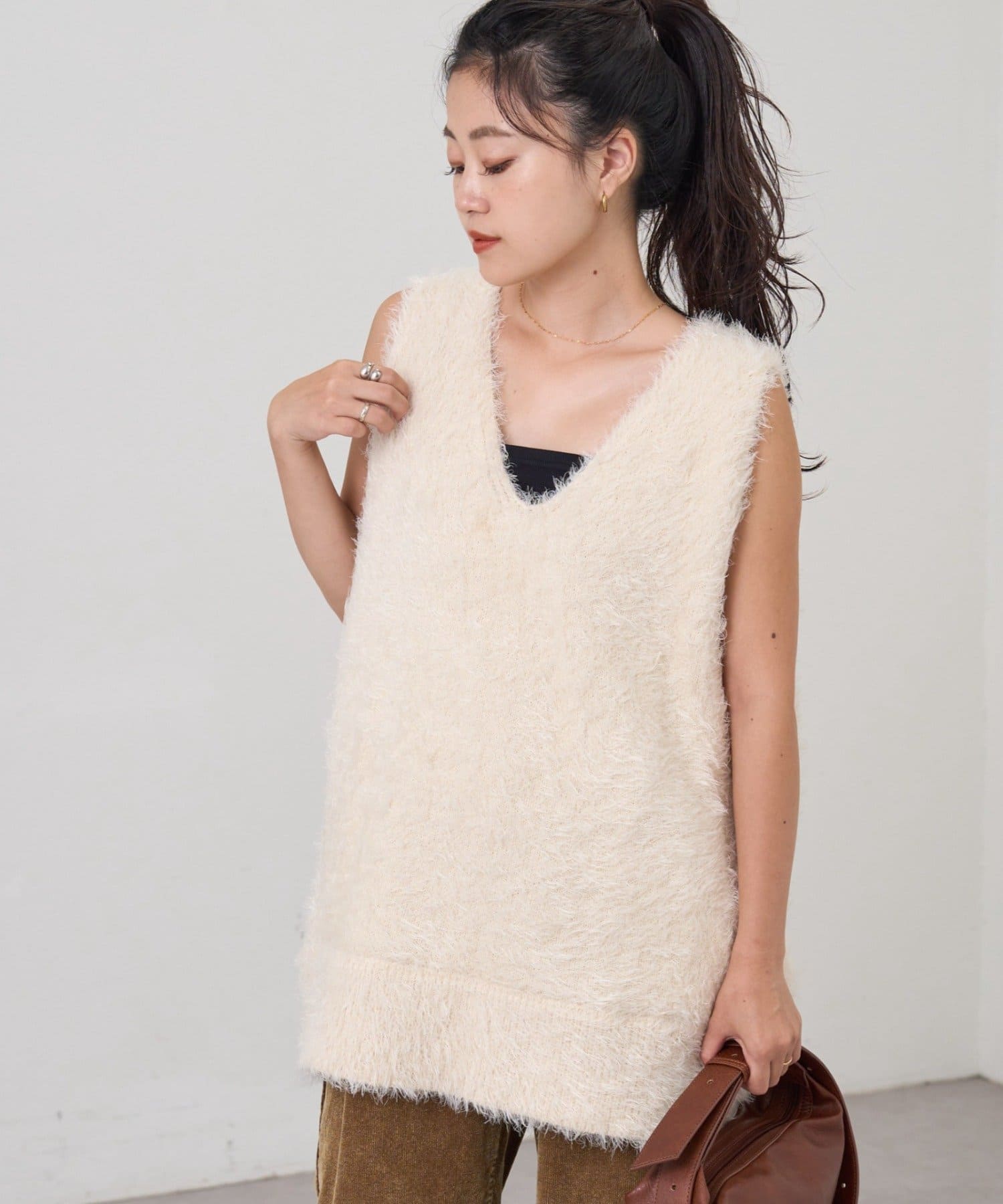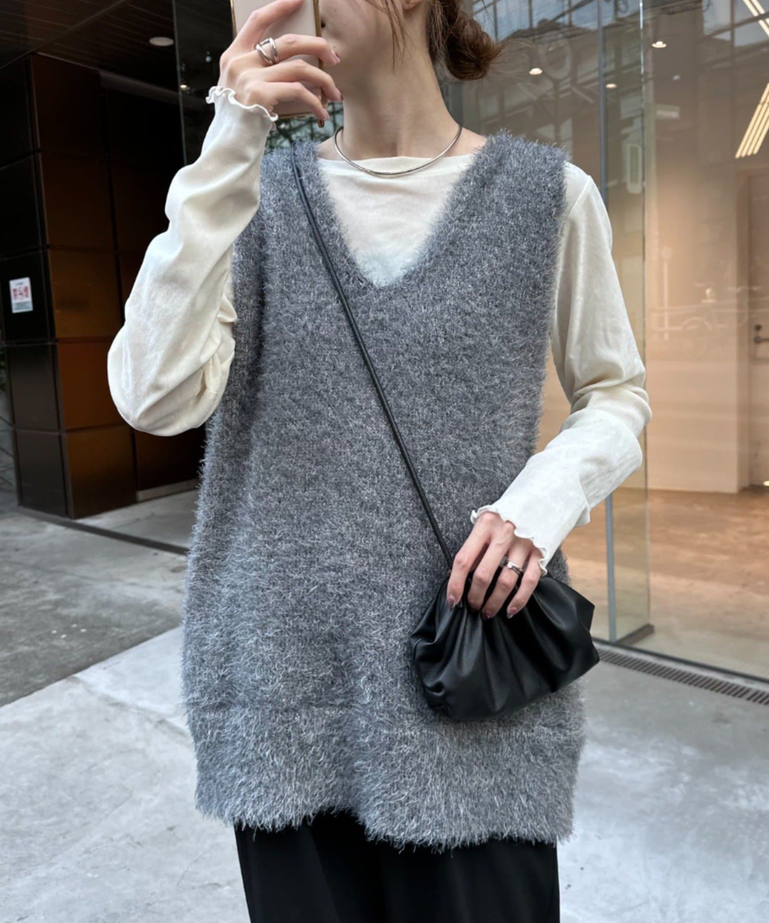 【体型カバーと抜け感◎】ミックスフェザーヤーンオーバーニットベスト(WEB限定)