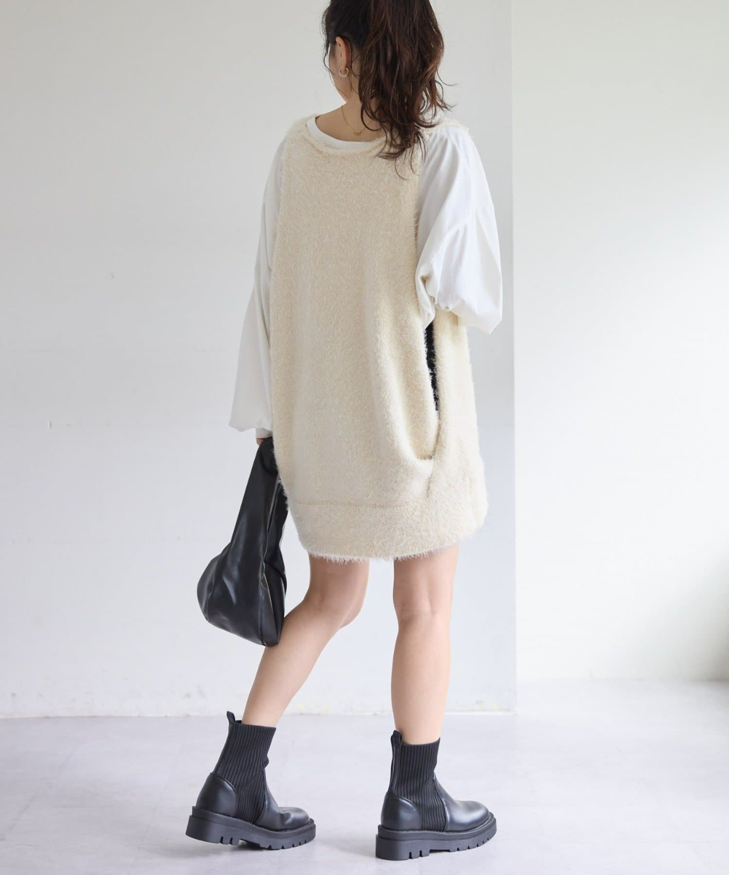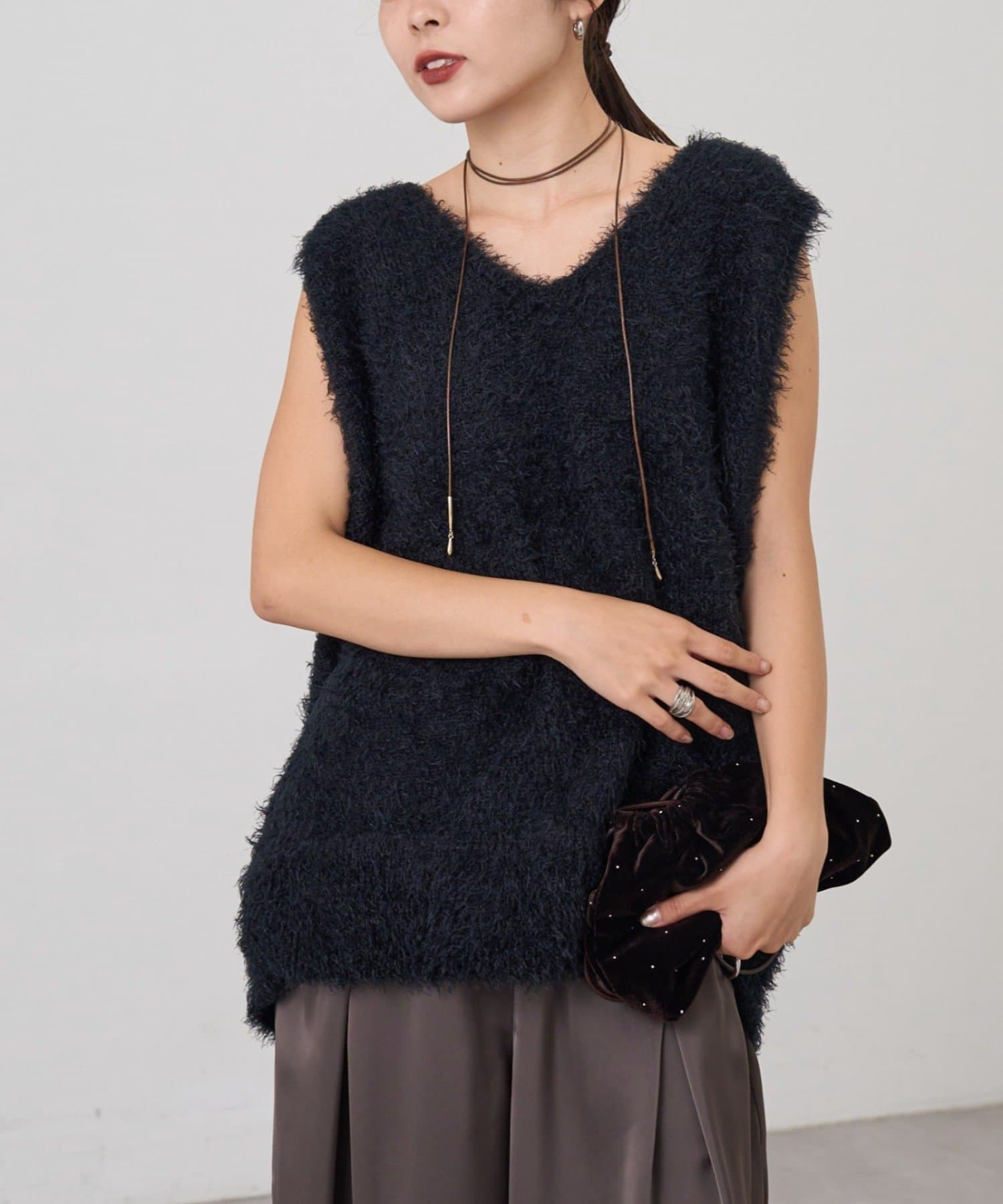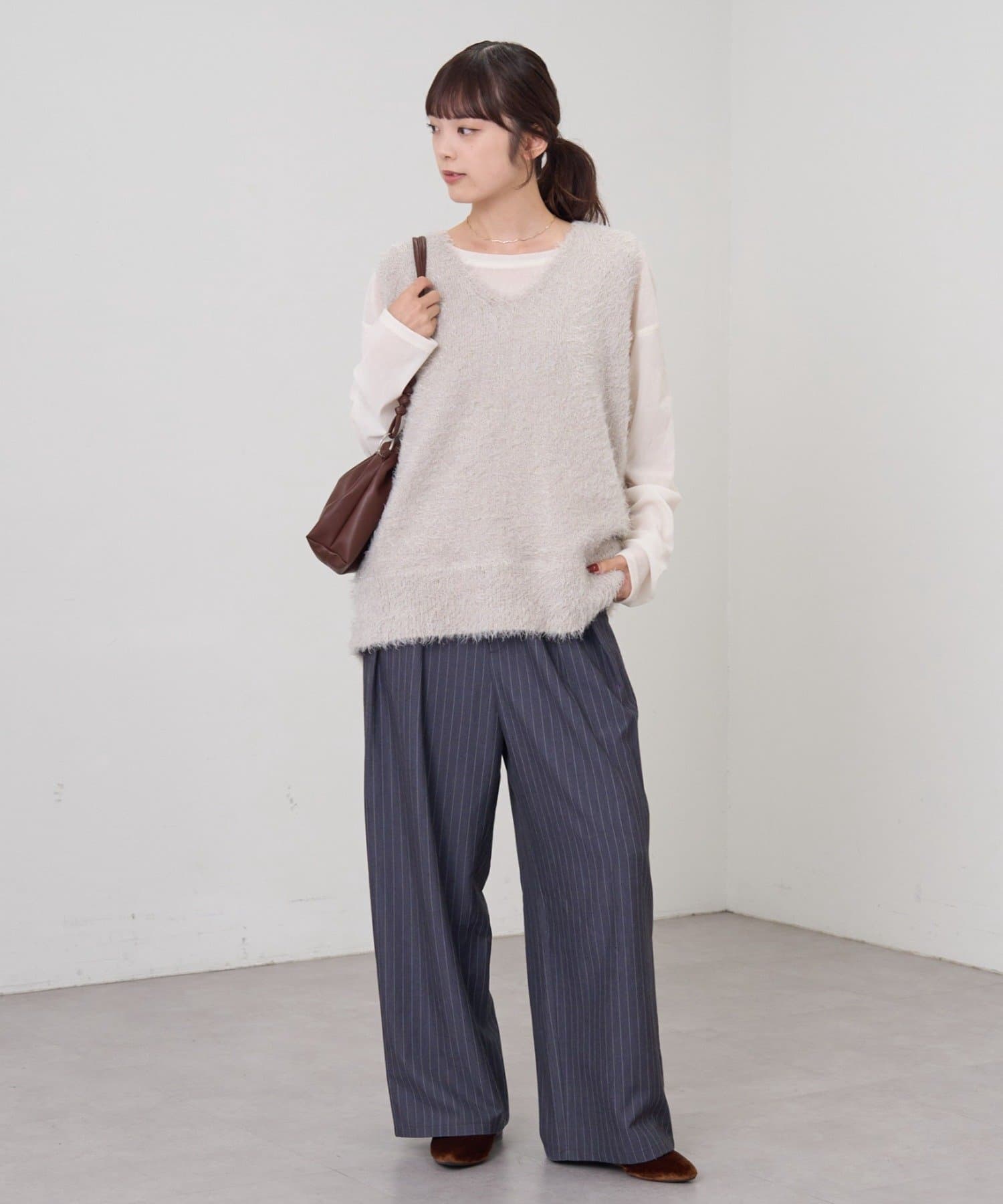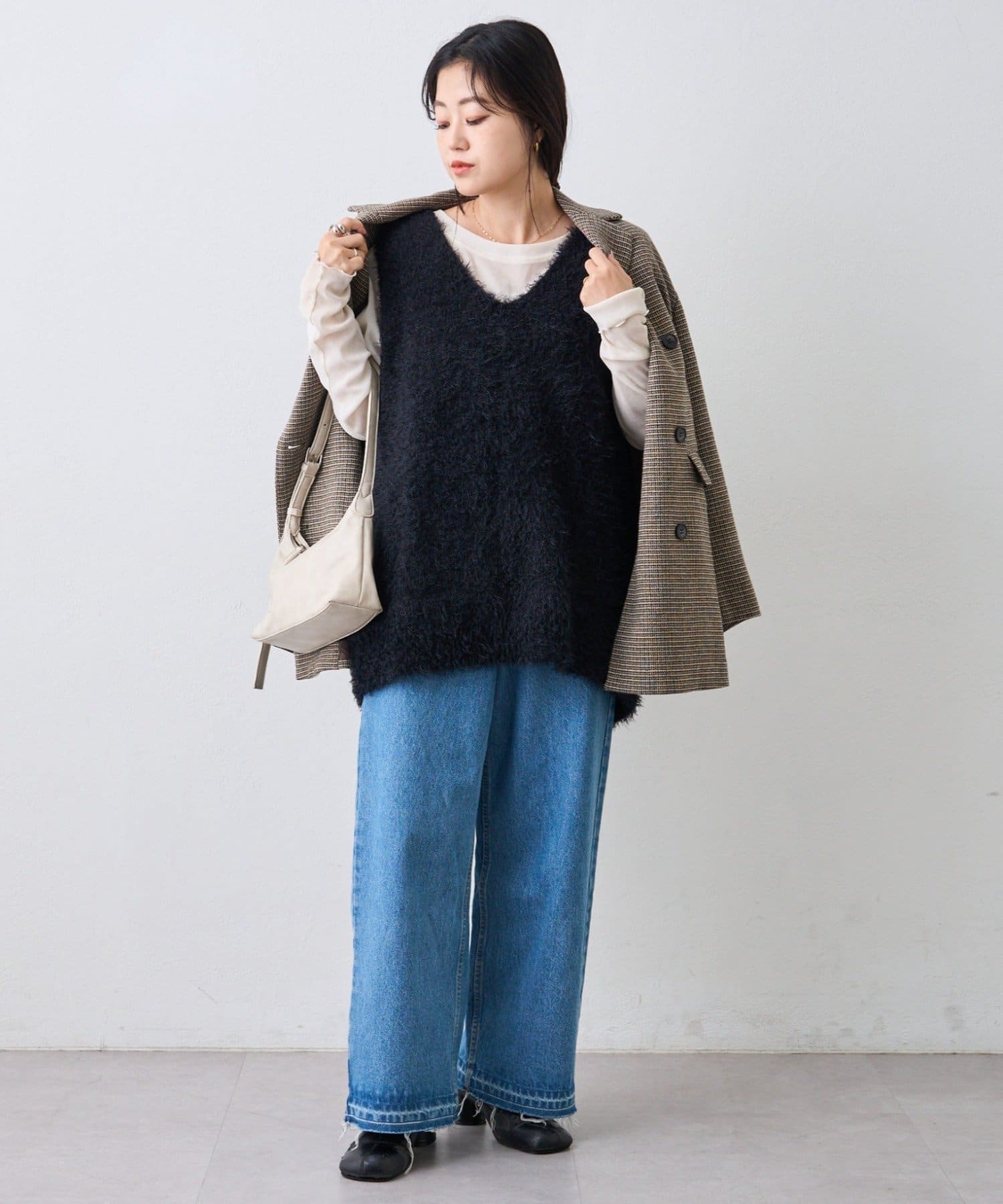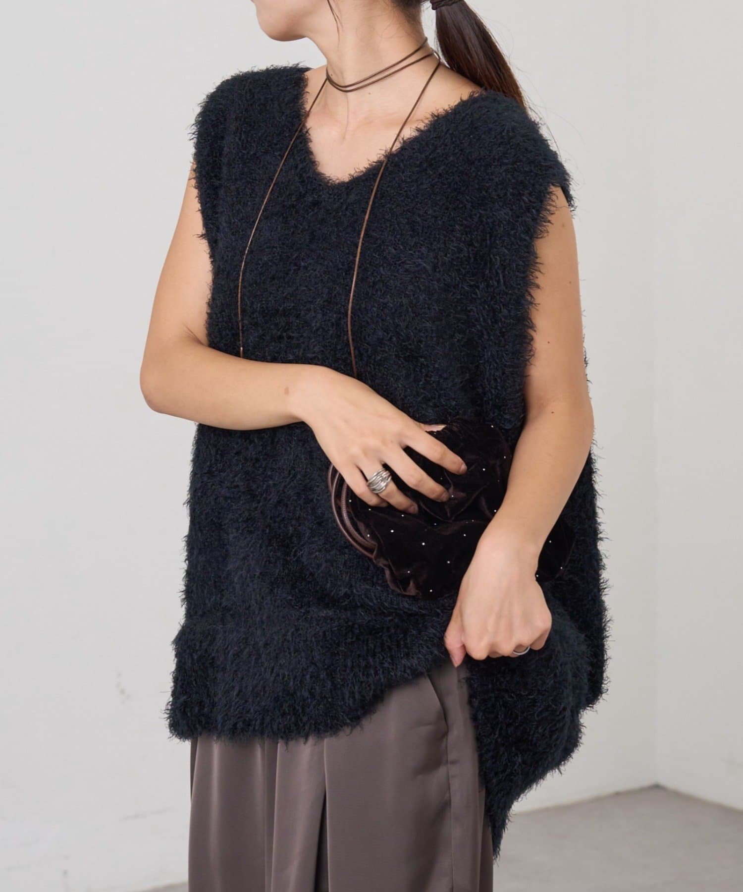【体型カバーと抜け感◎】ミックスフェザーヤーンオーバーニットベスト(WEB限定)