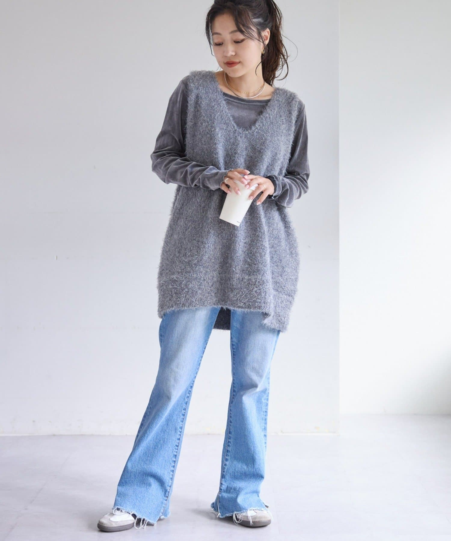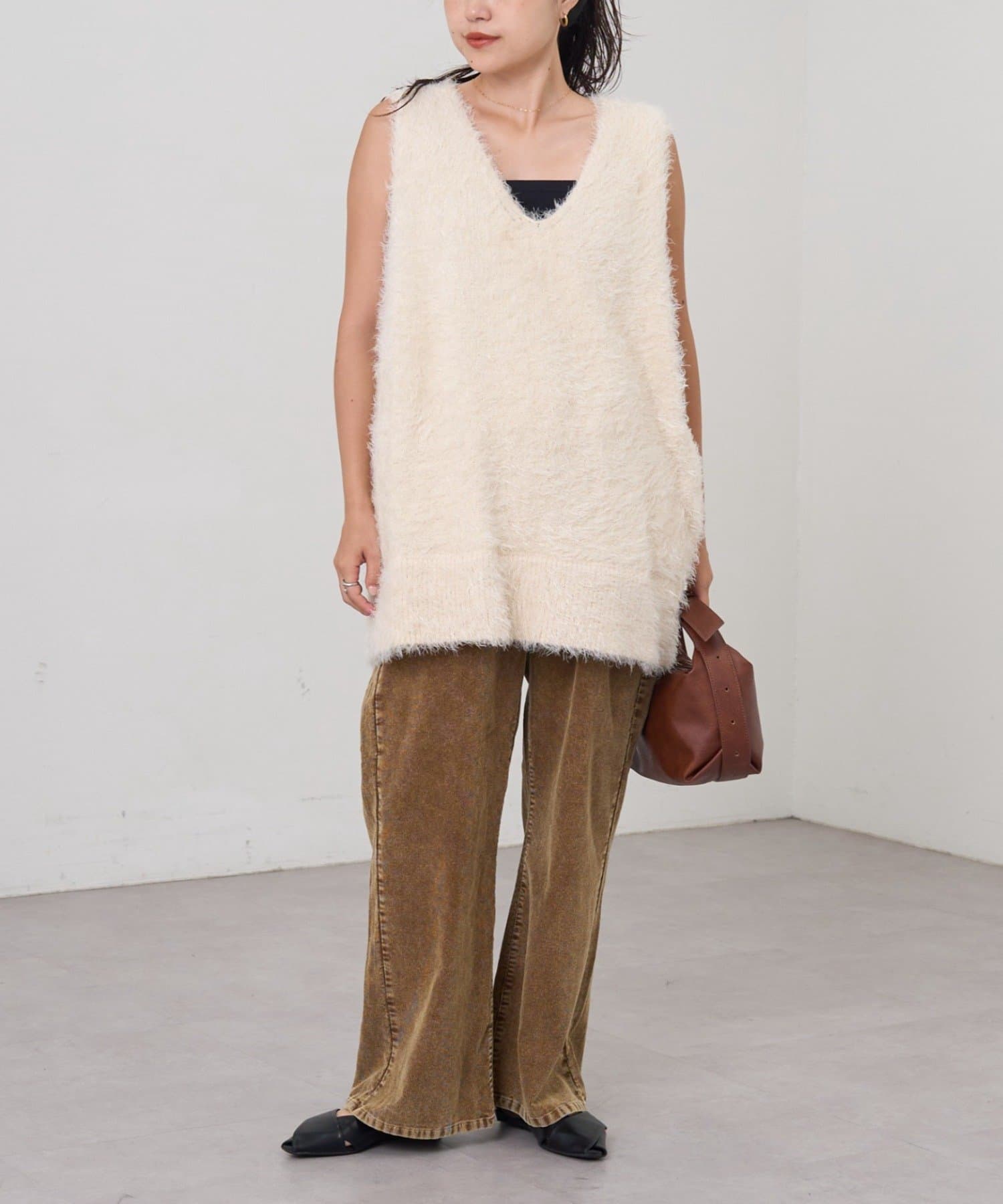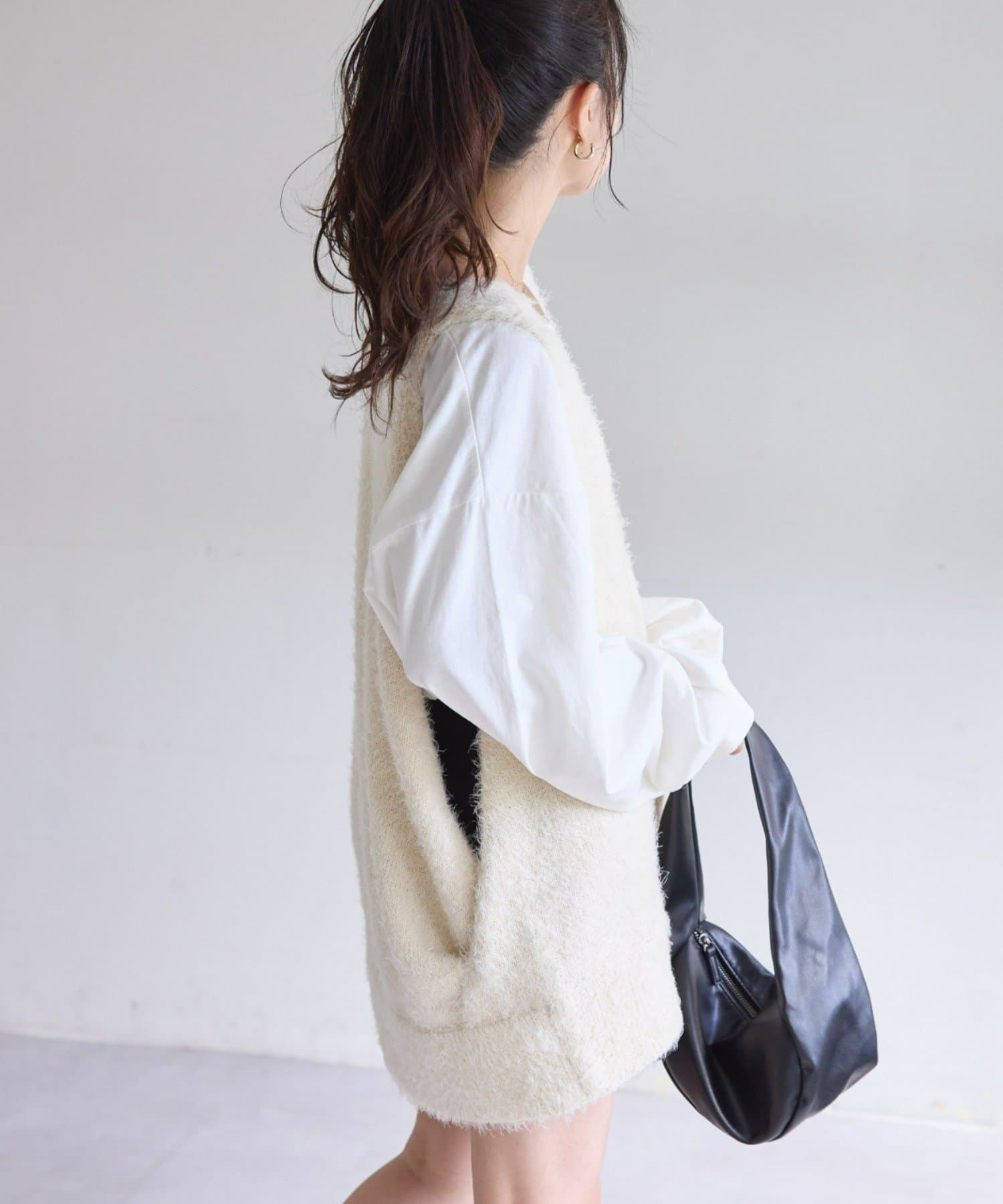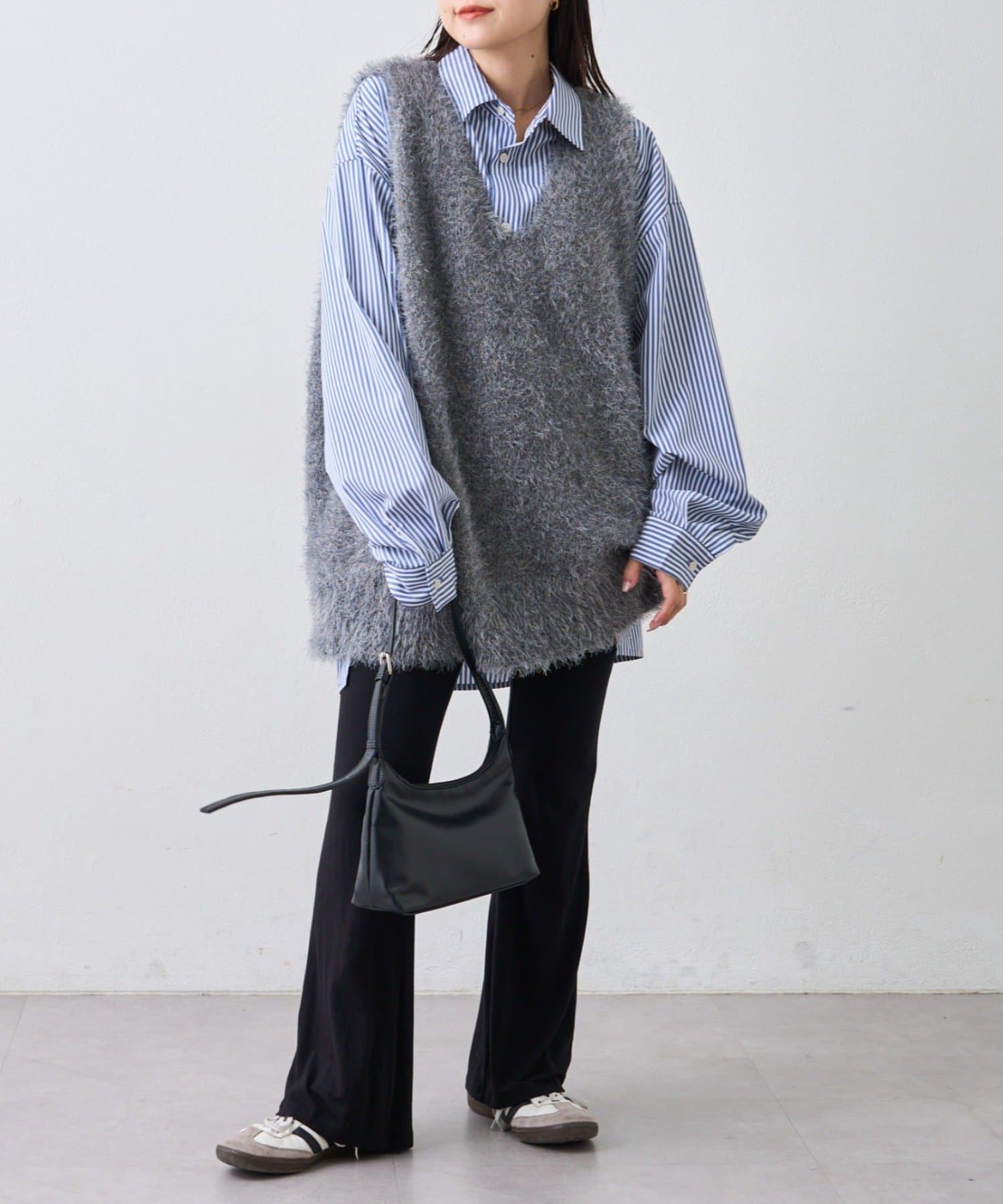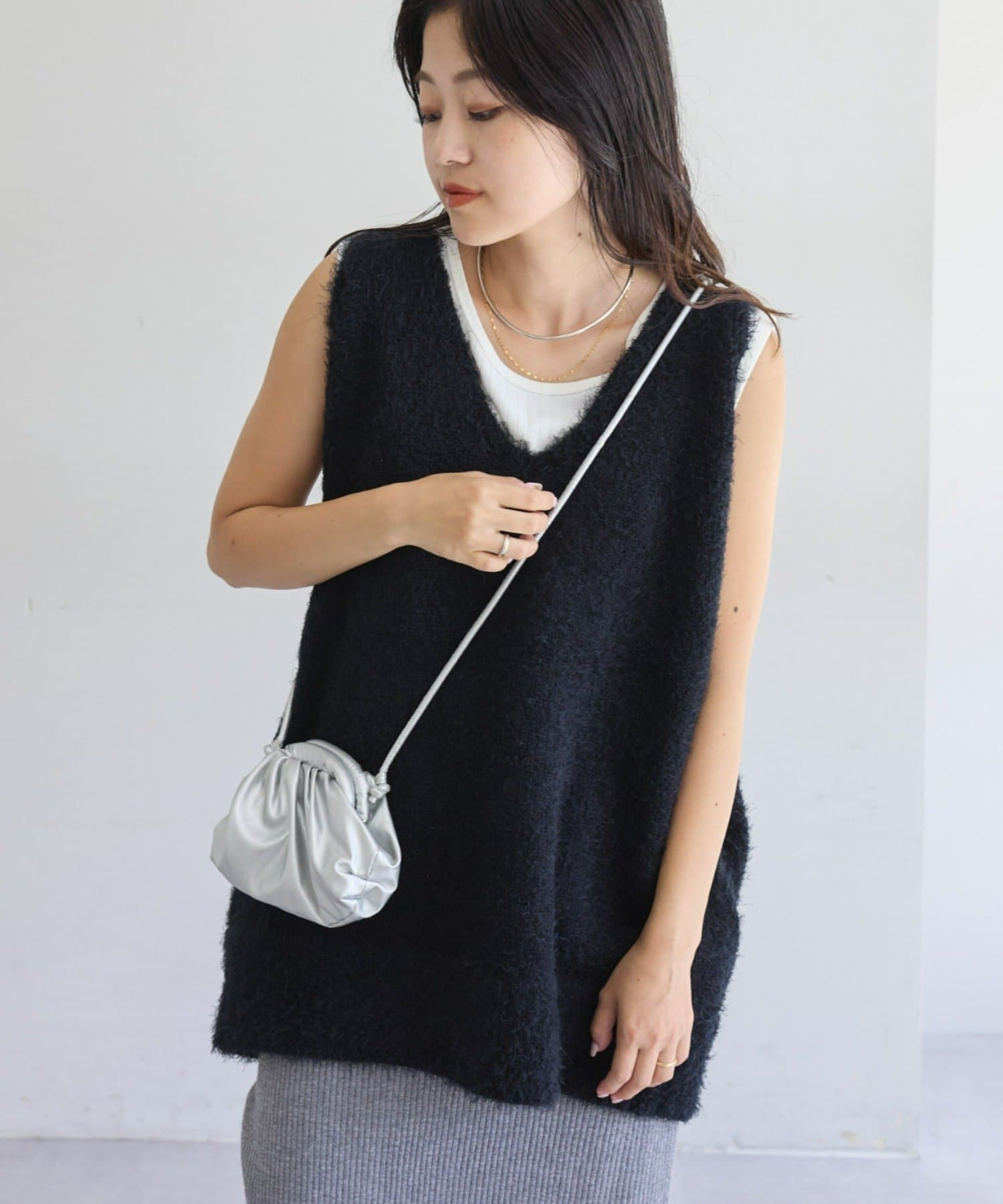 【体型カバーと抜け感◎】ミックスフェザーヤーンオーバーニットベスト(WEB限定)