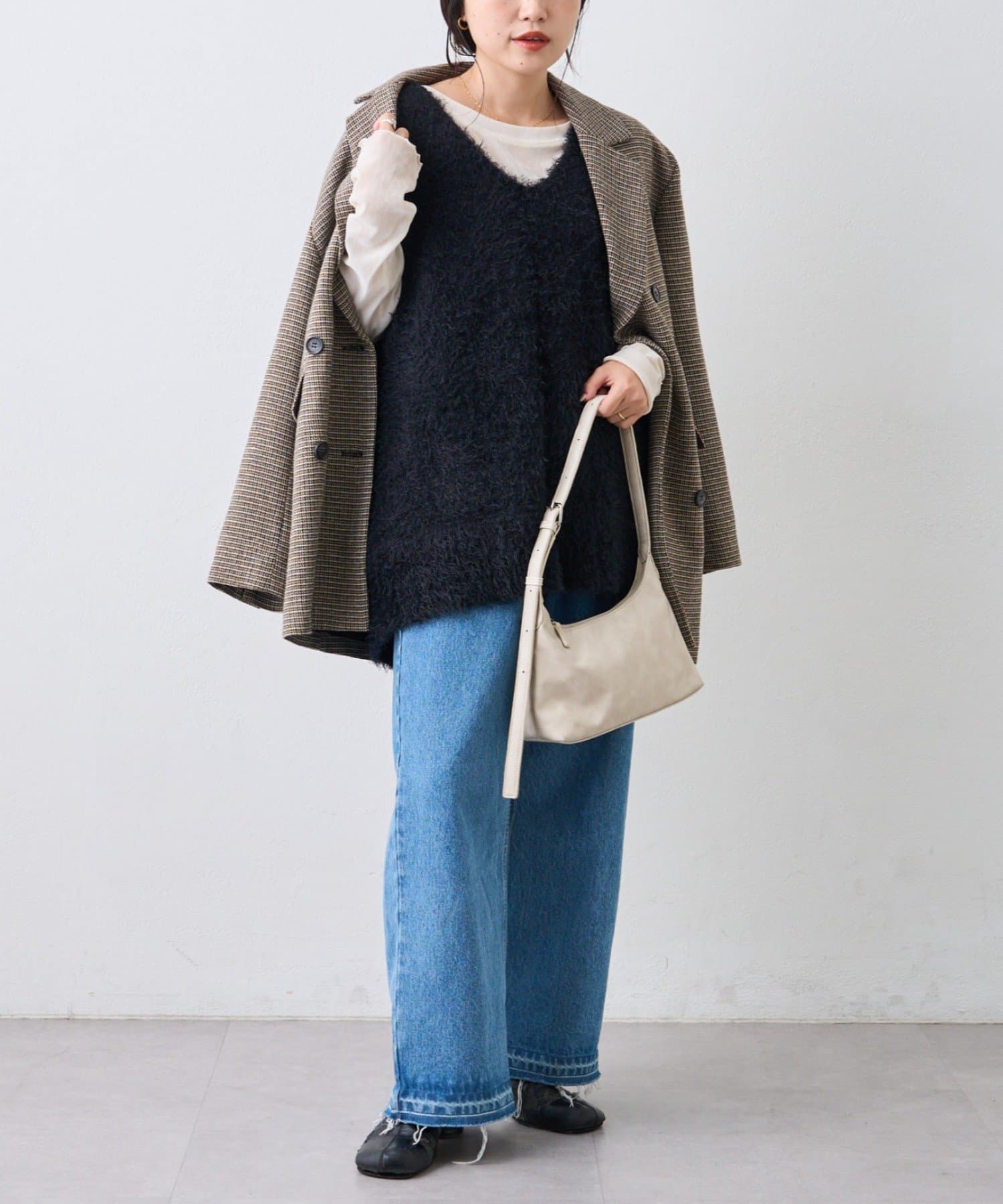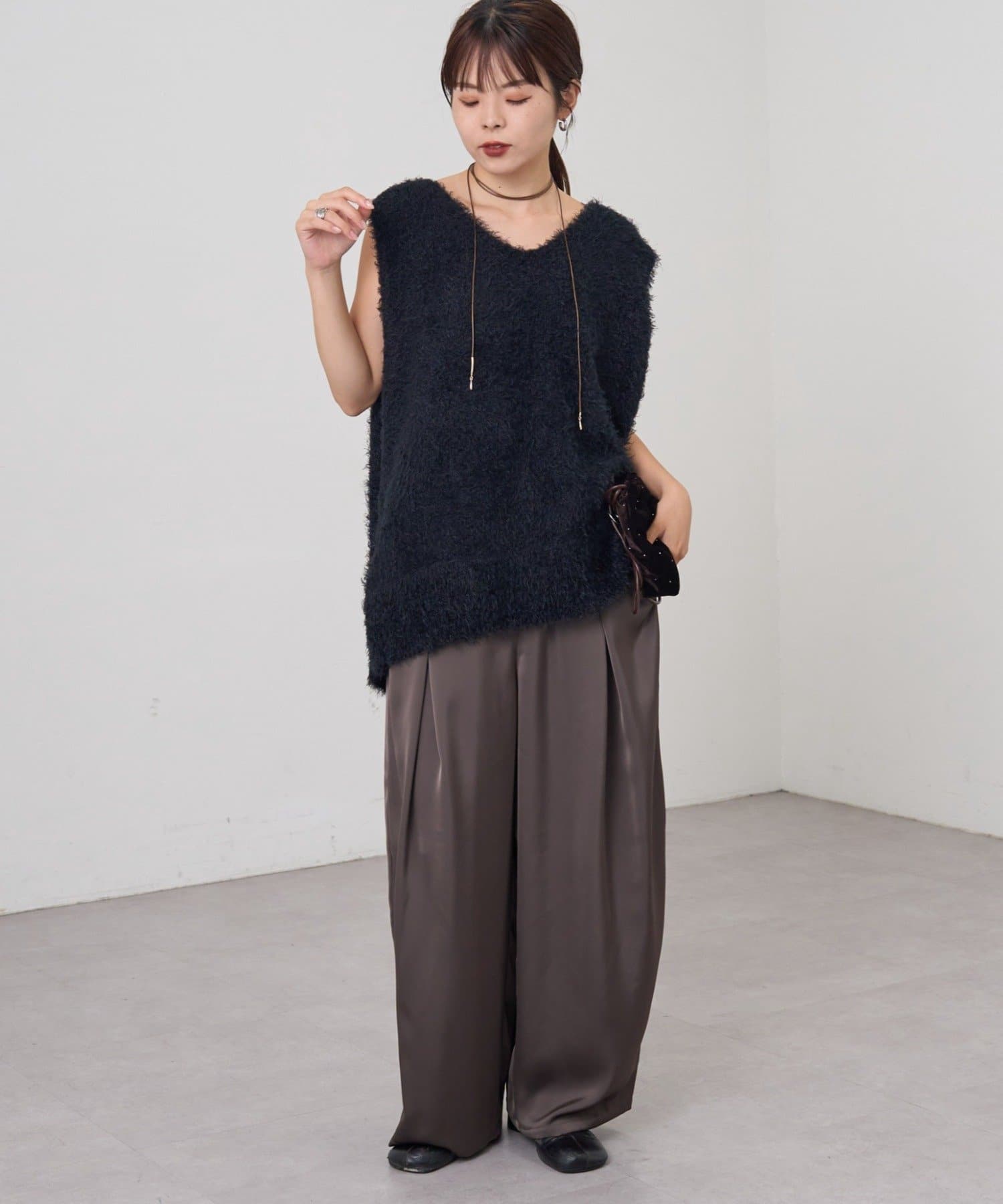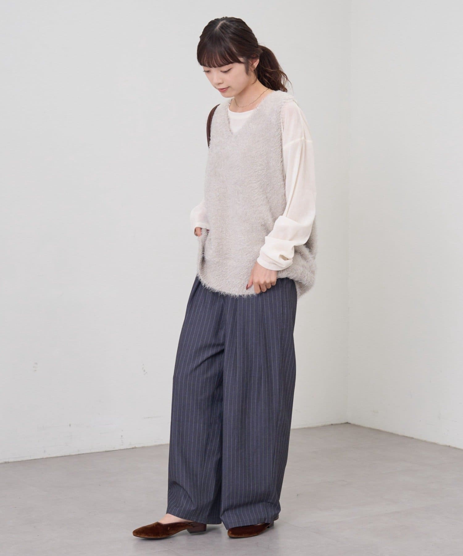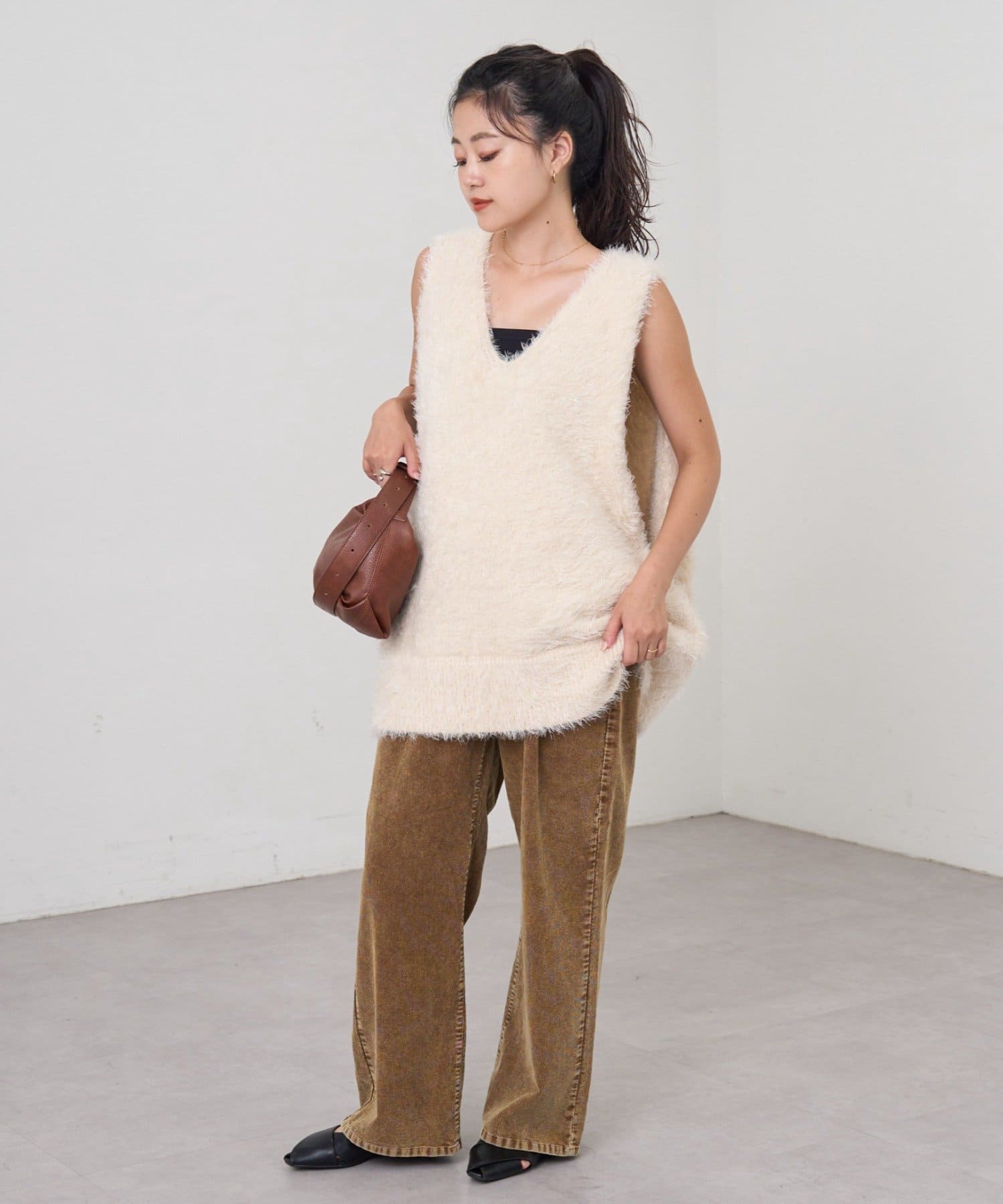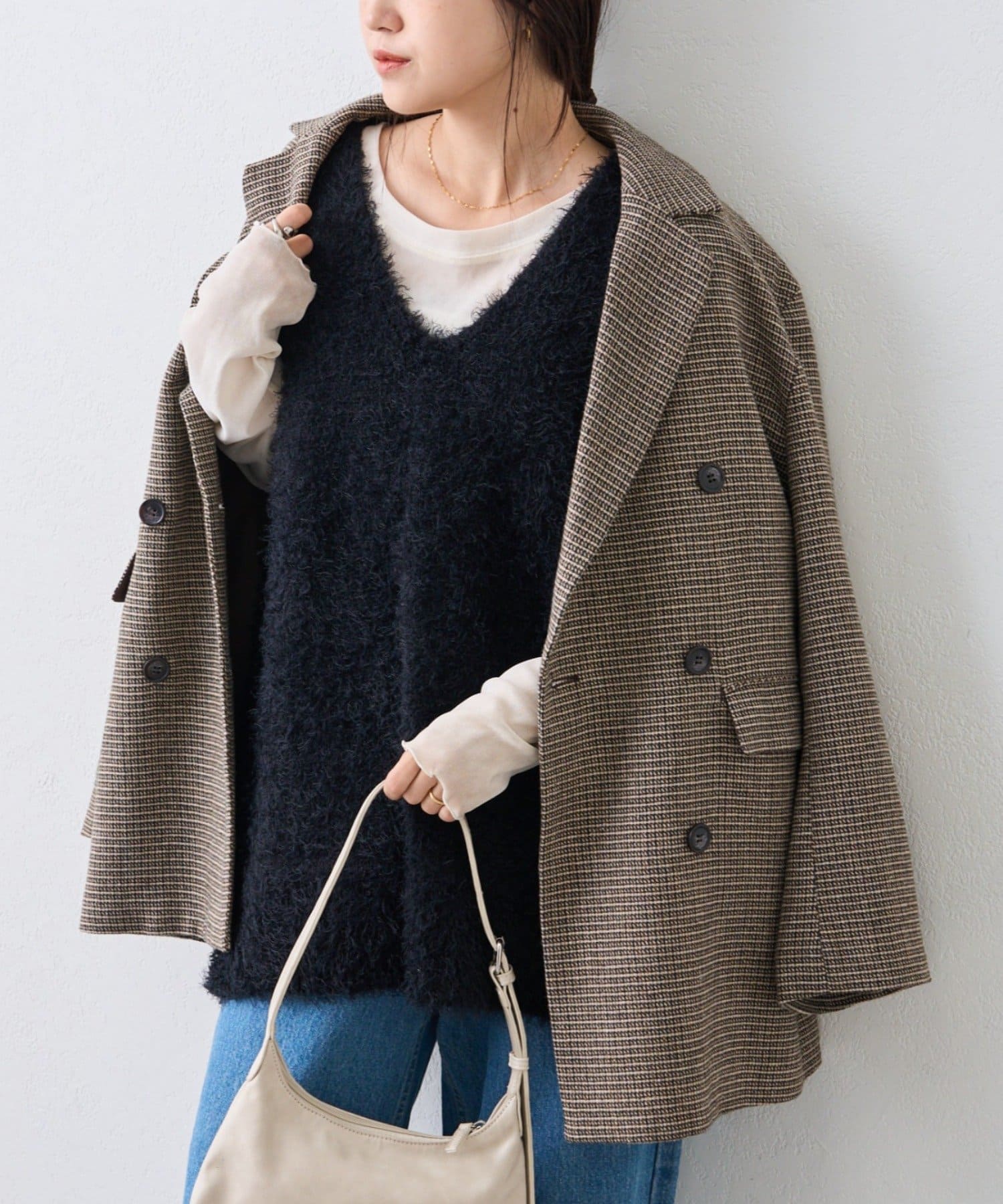 【体型カバーと抜け感◎】ミックスフェザーヤーンオーバーニットベスト(WEB限定)