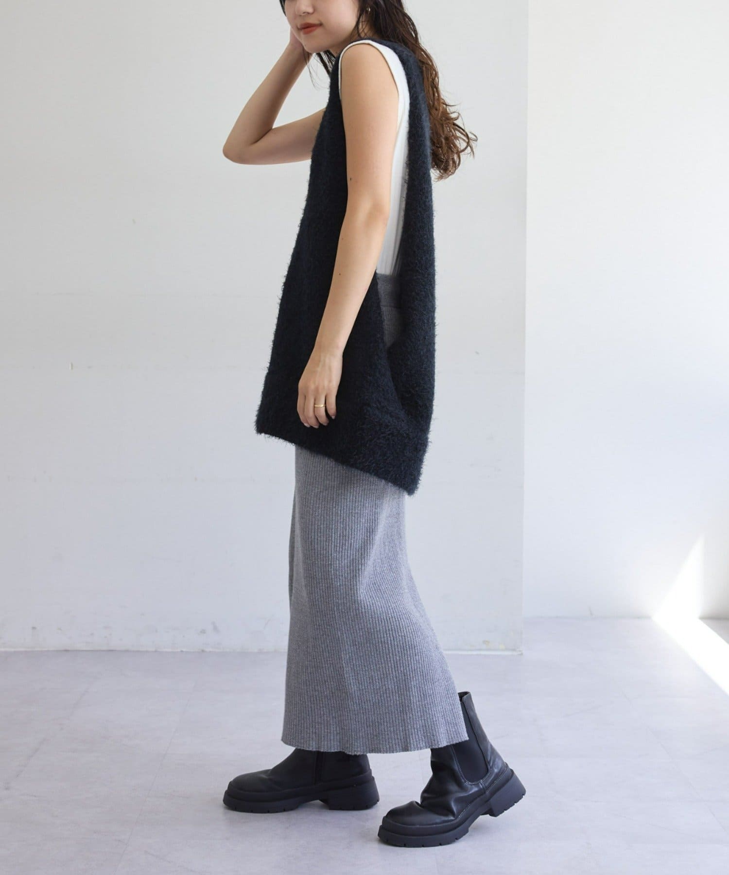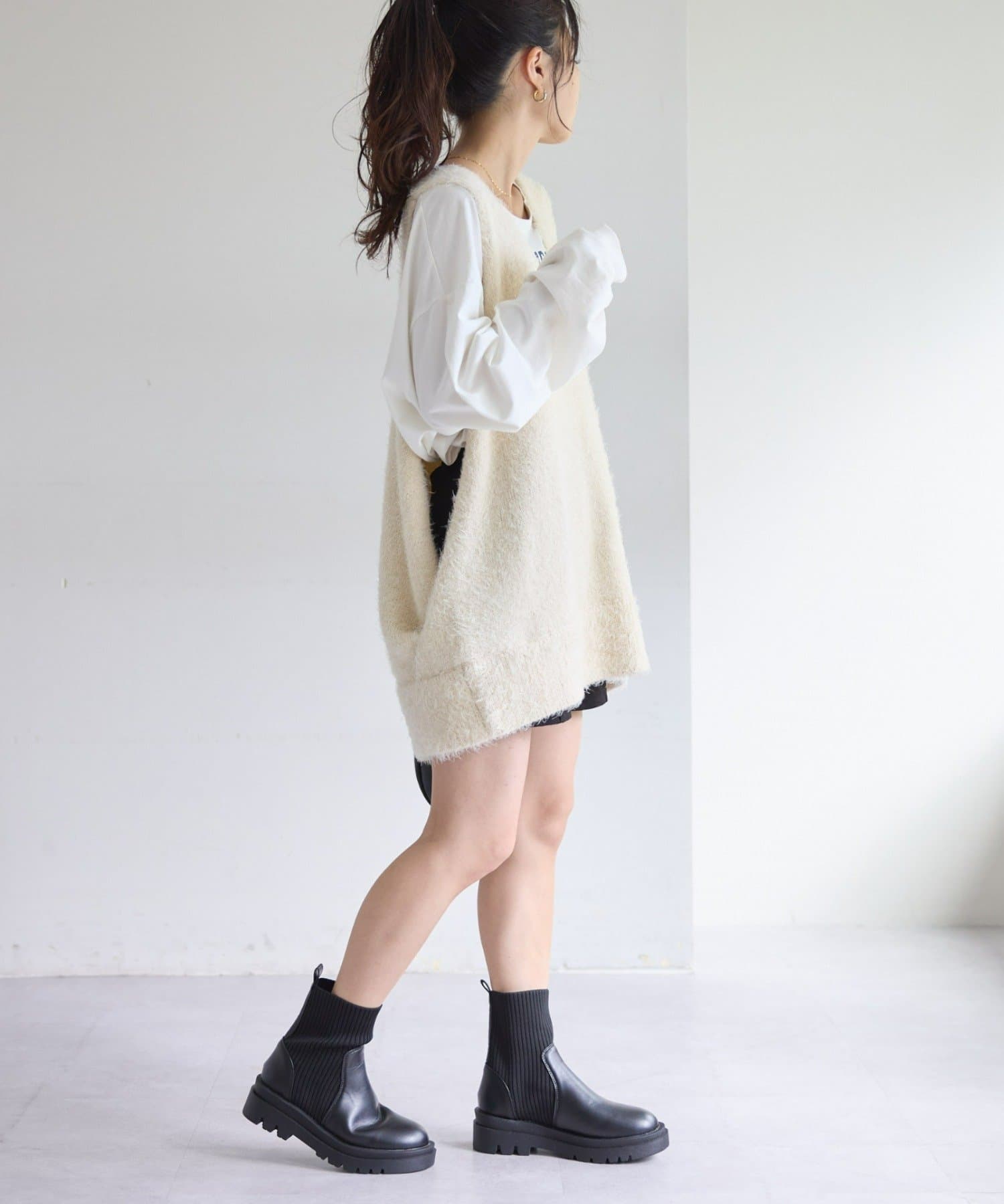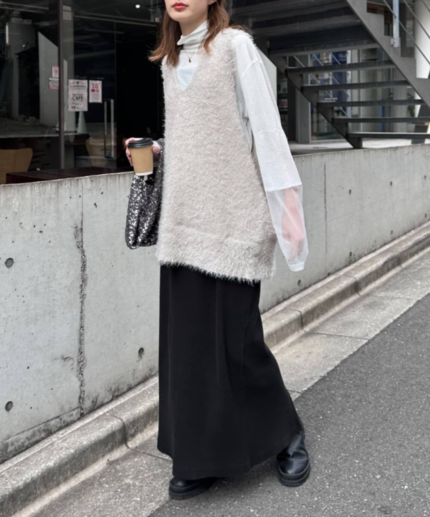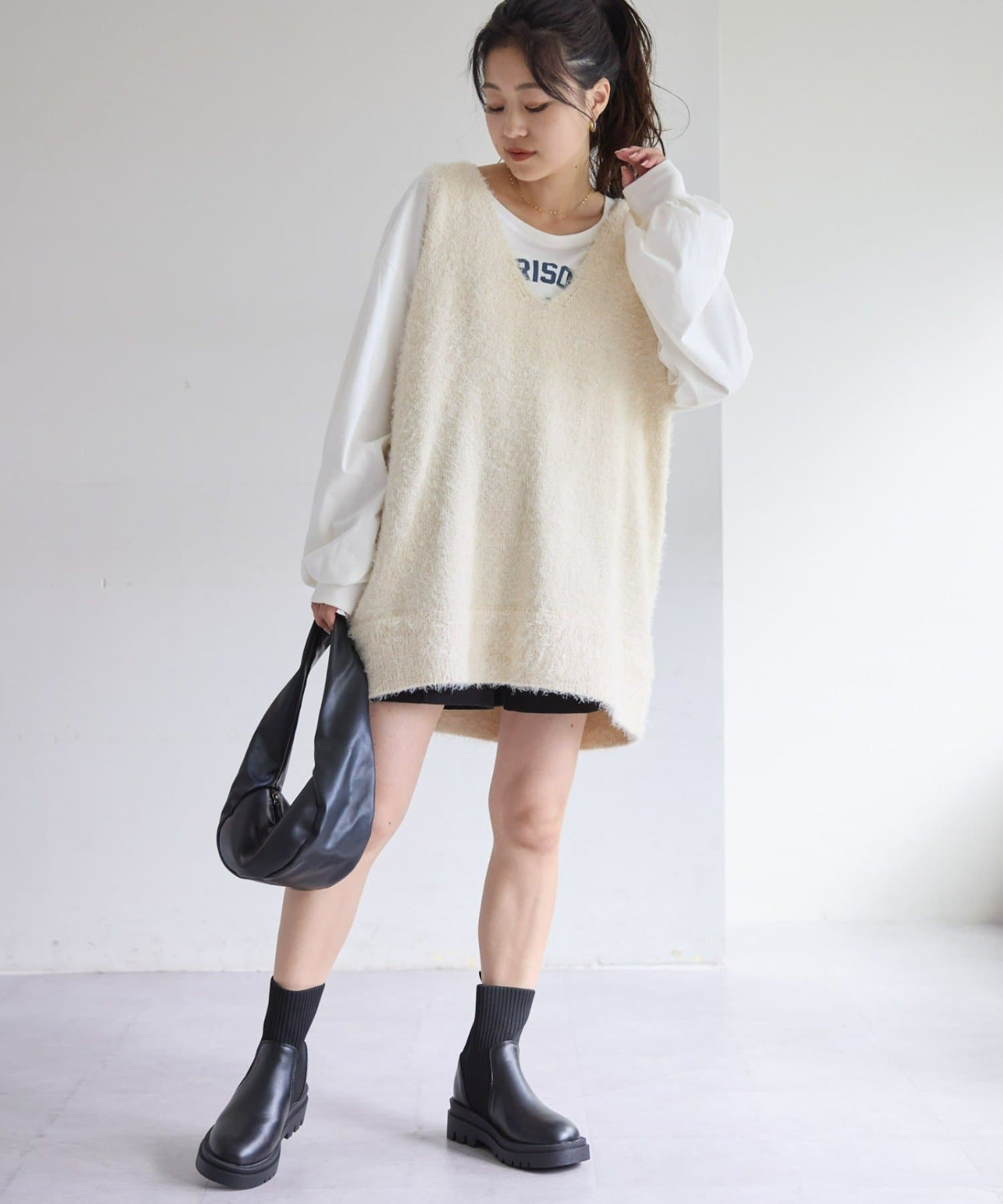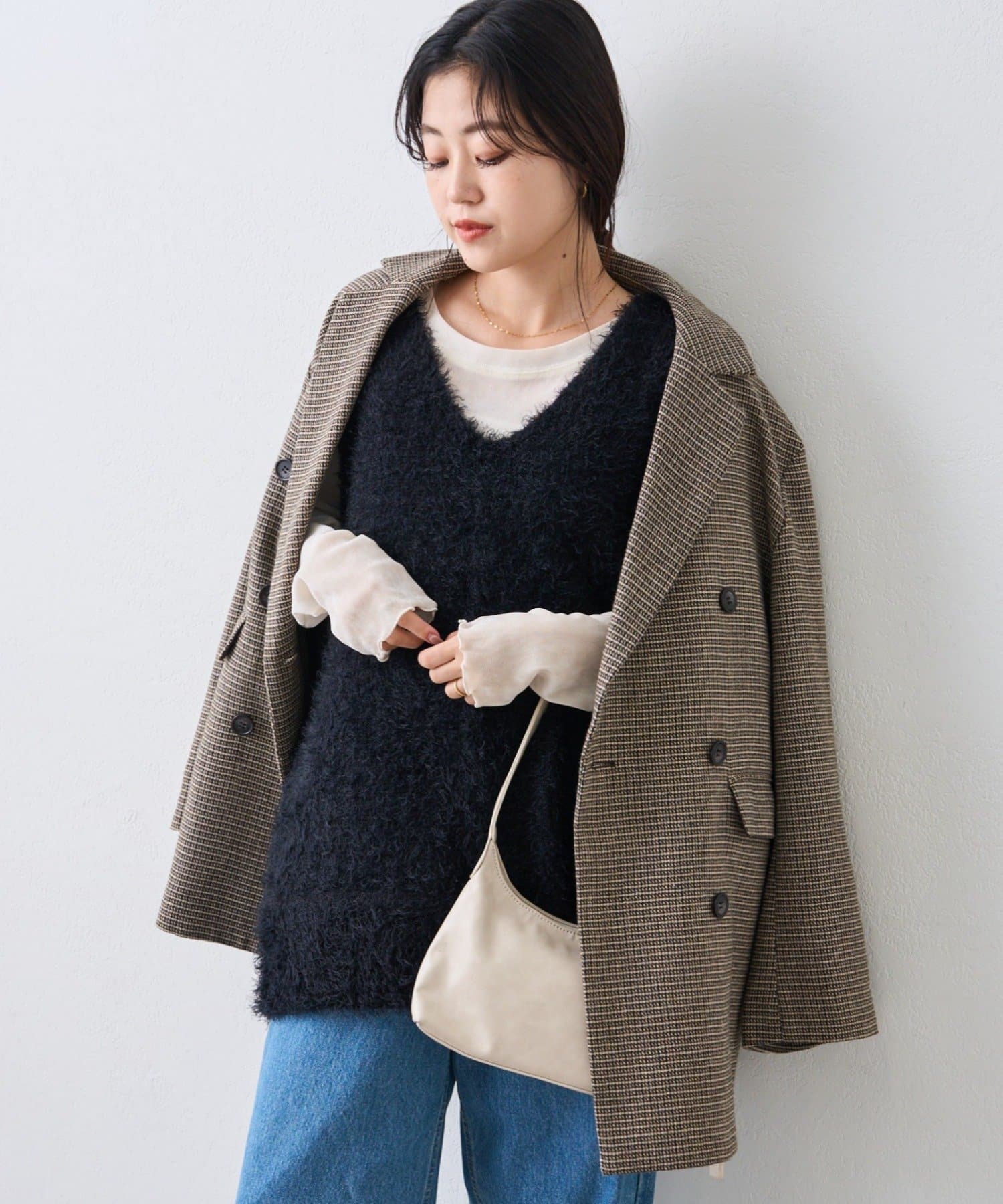 【体型カバーと抜け感◎】ミックスフェザーヤーンオーバーニットベスト(WEB限定)