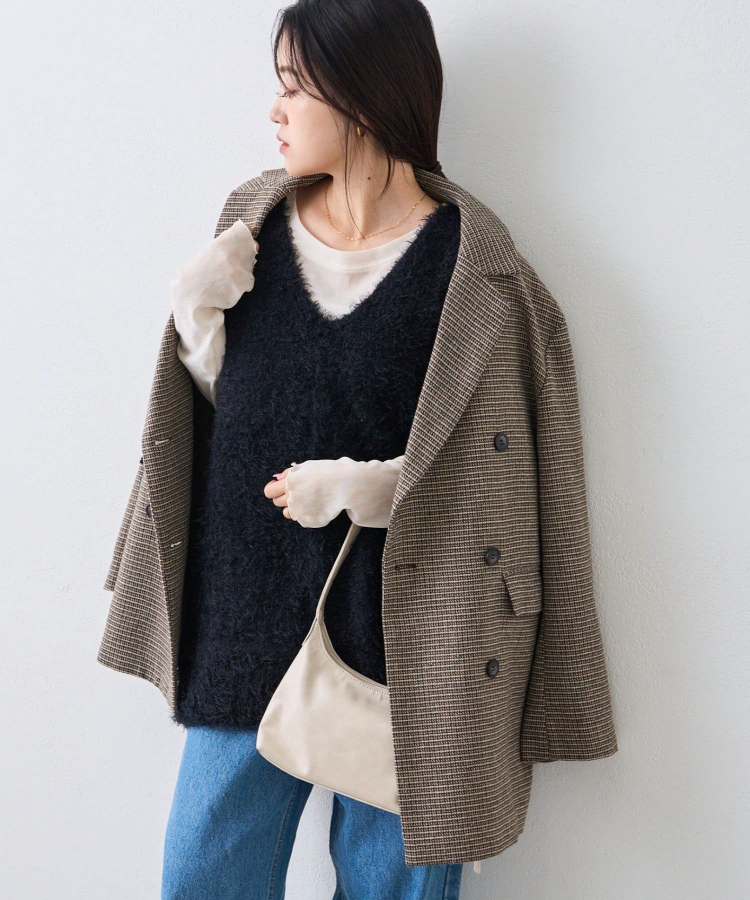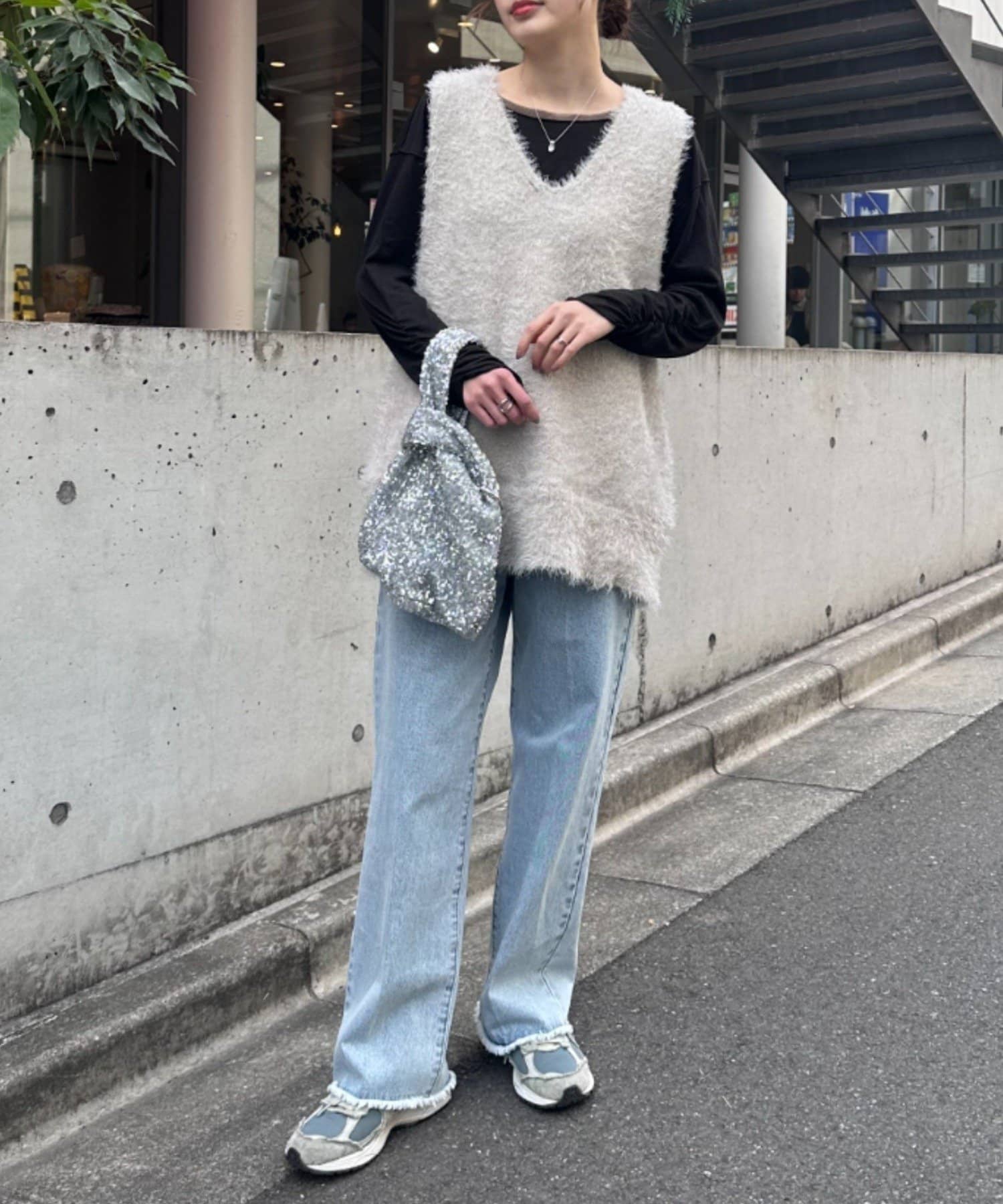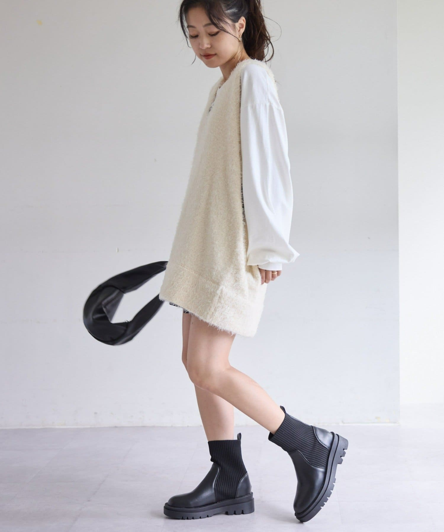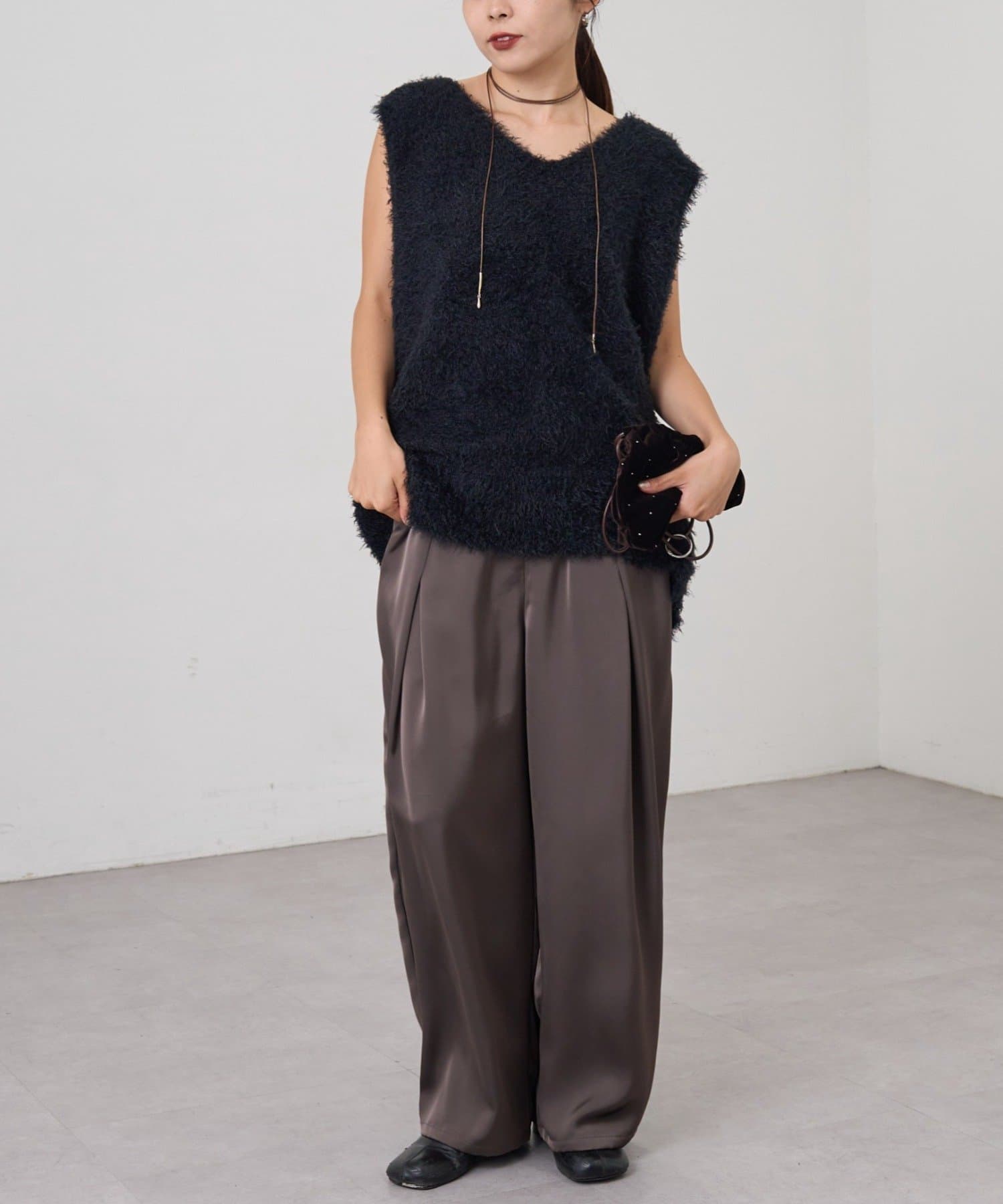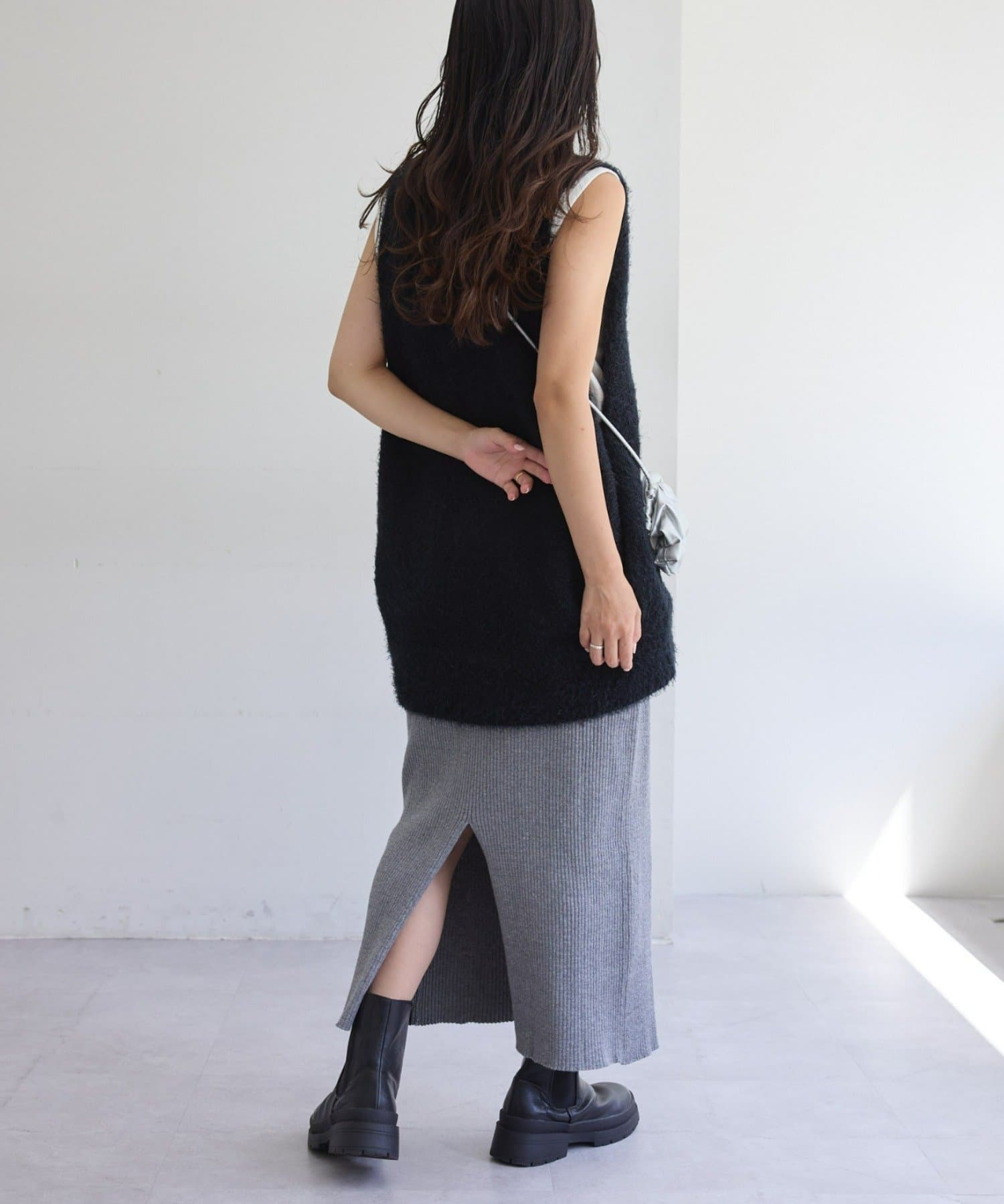 【体型カバーと抜け感◎】ミックスフェザーヤーンオーバーニットベスト(WEB限定)