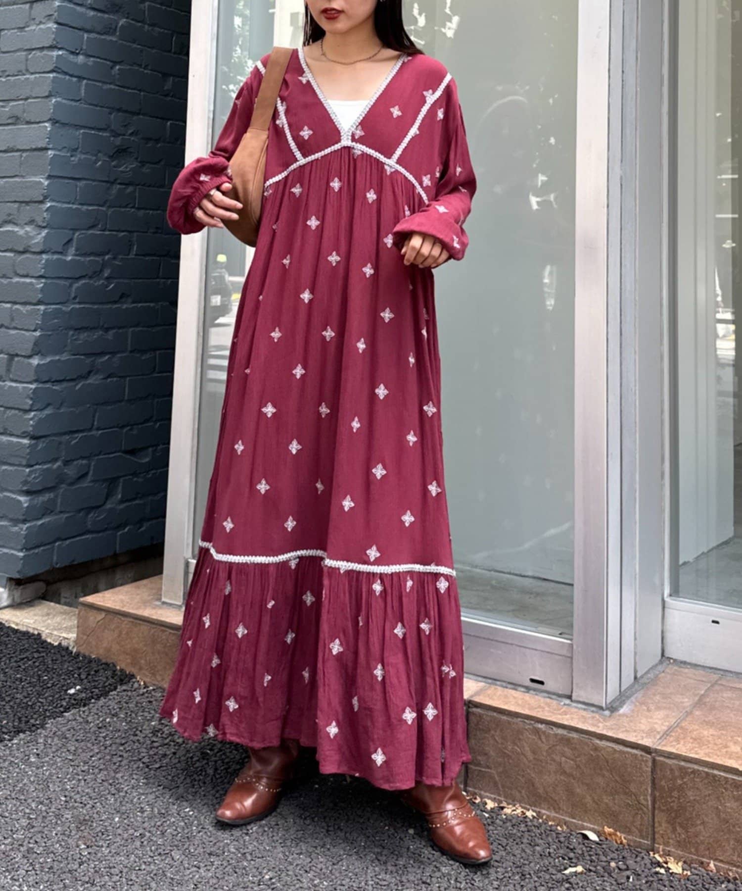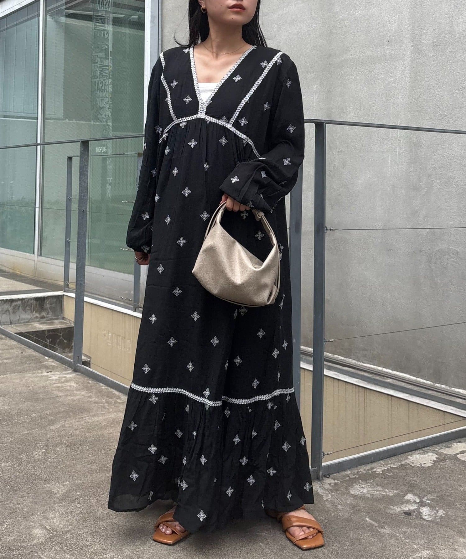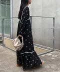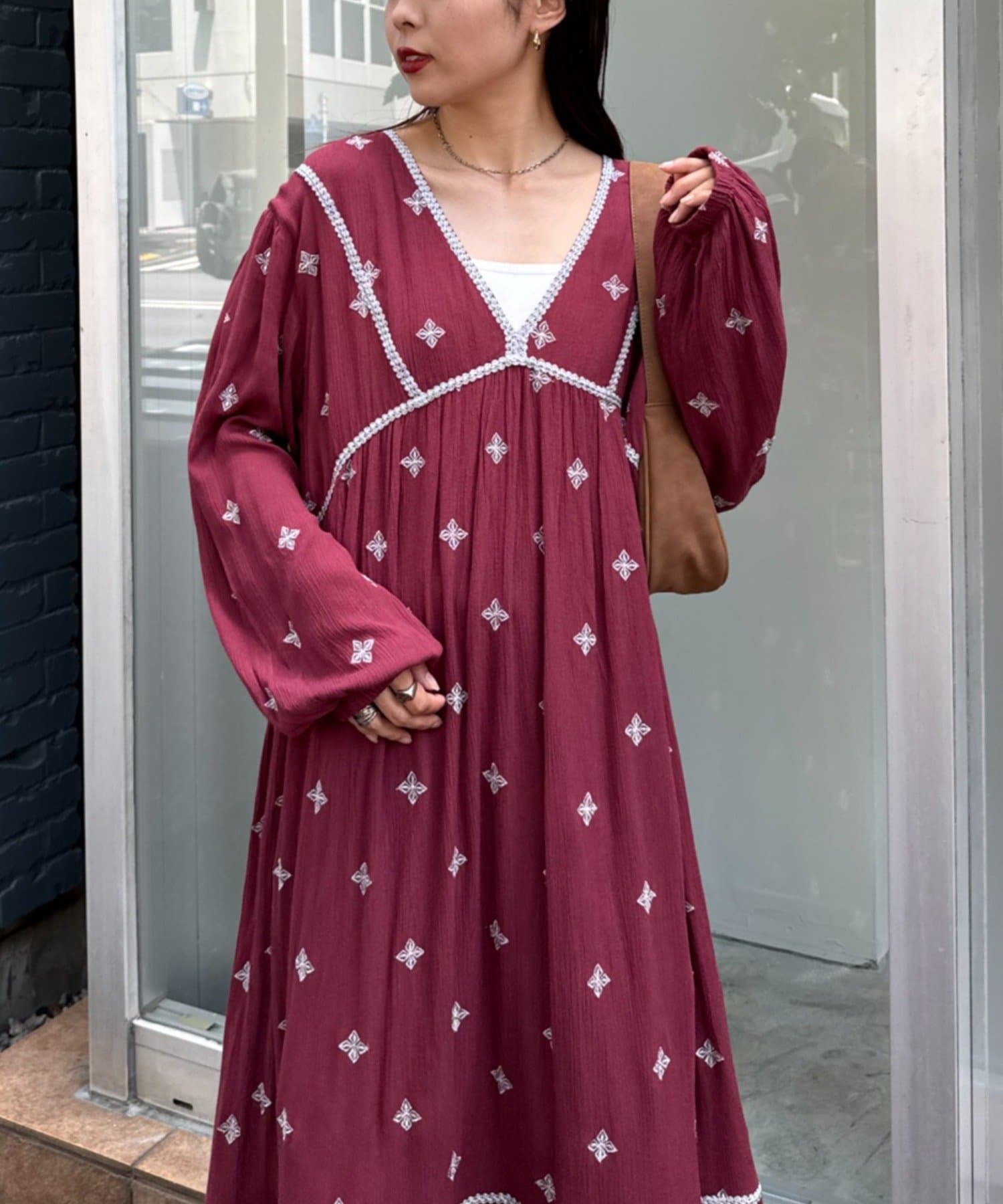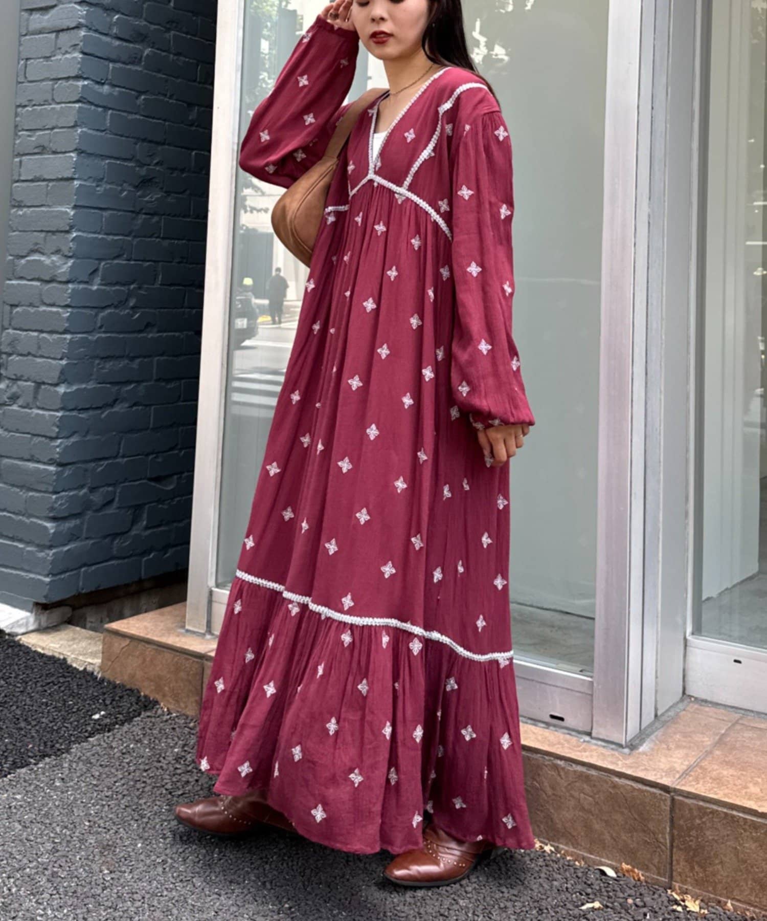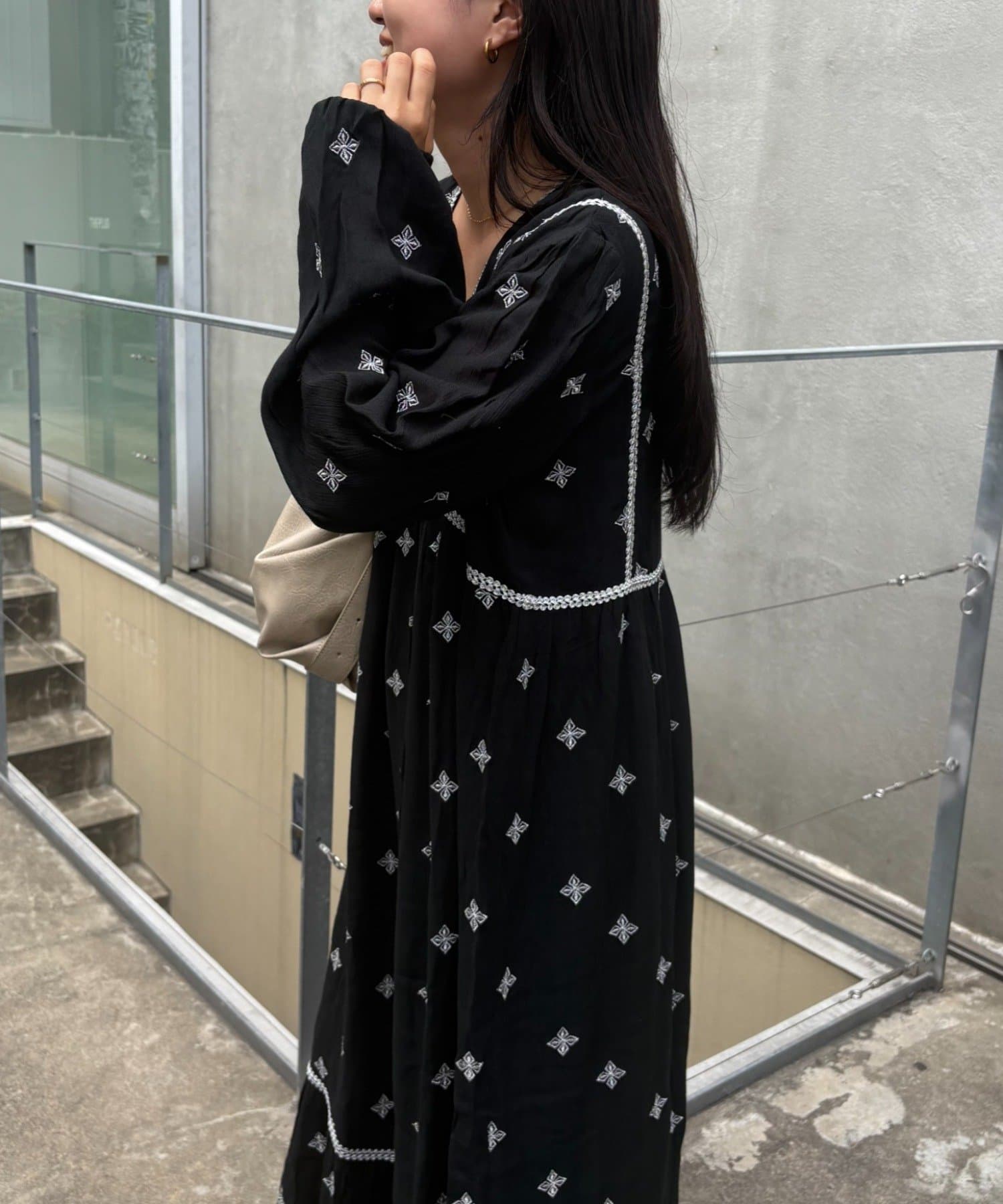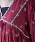ブラックとボルドーの2色展開で、アクセントの刺繍が華やかな1着です。