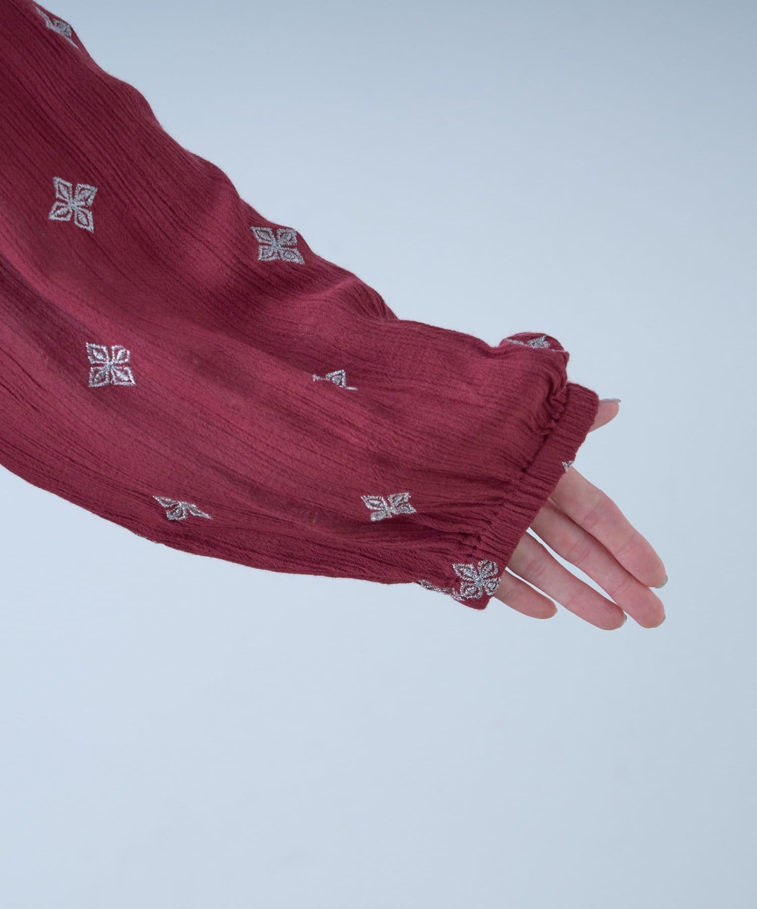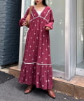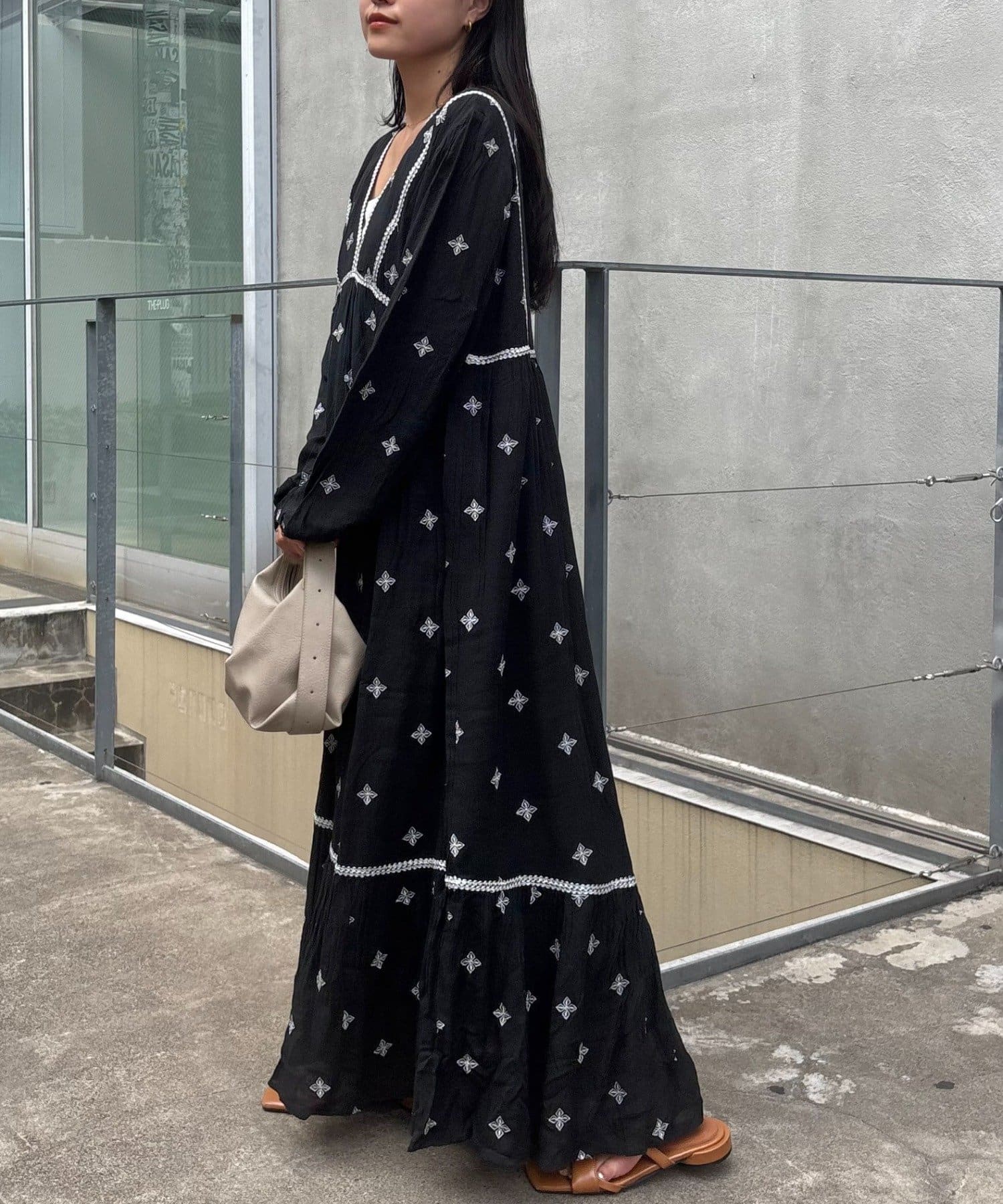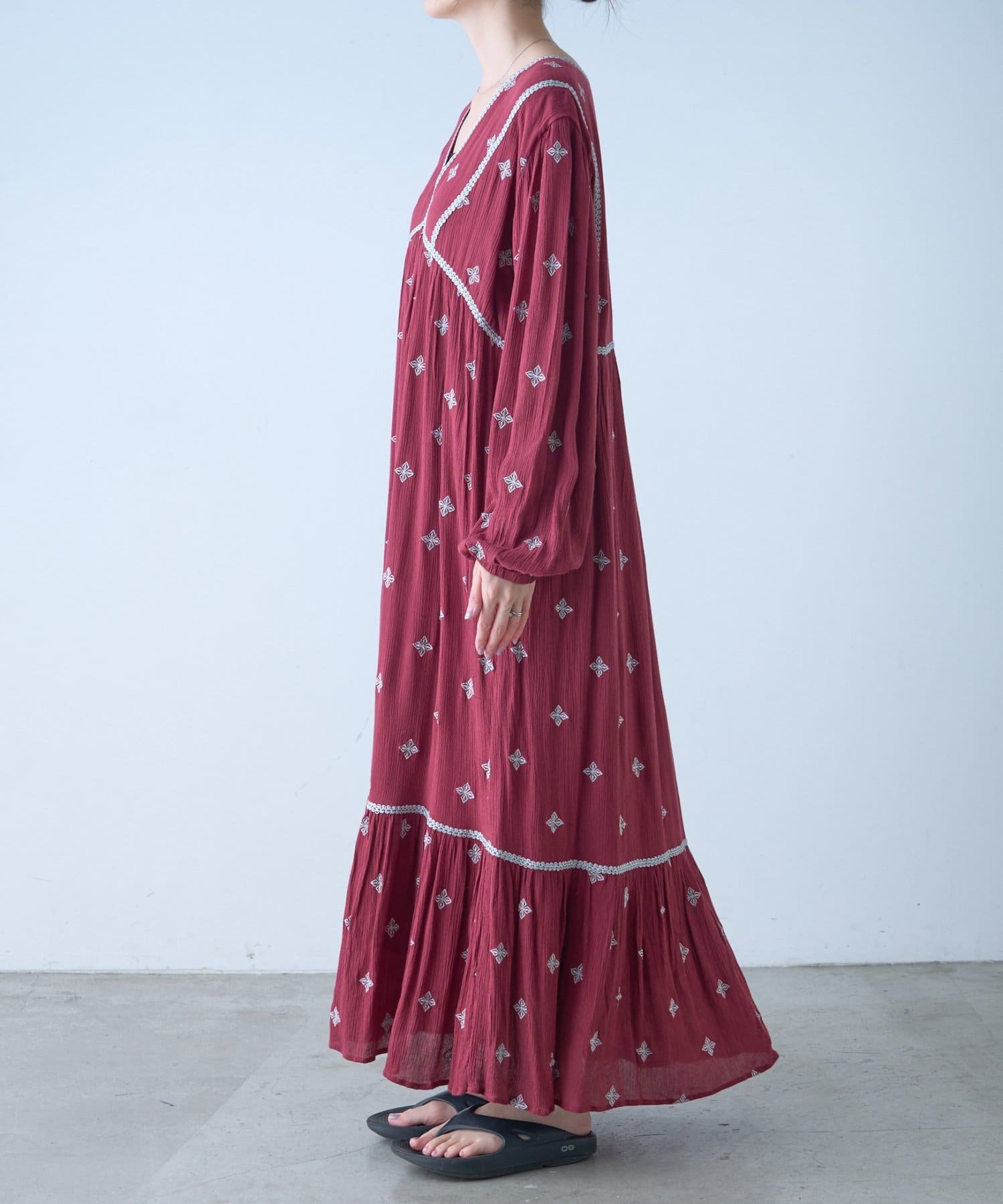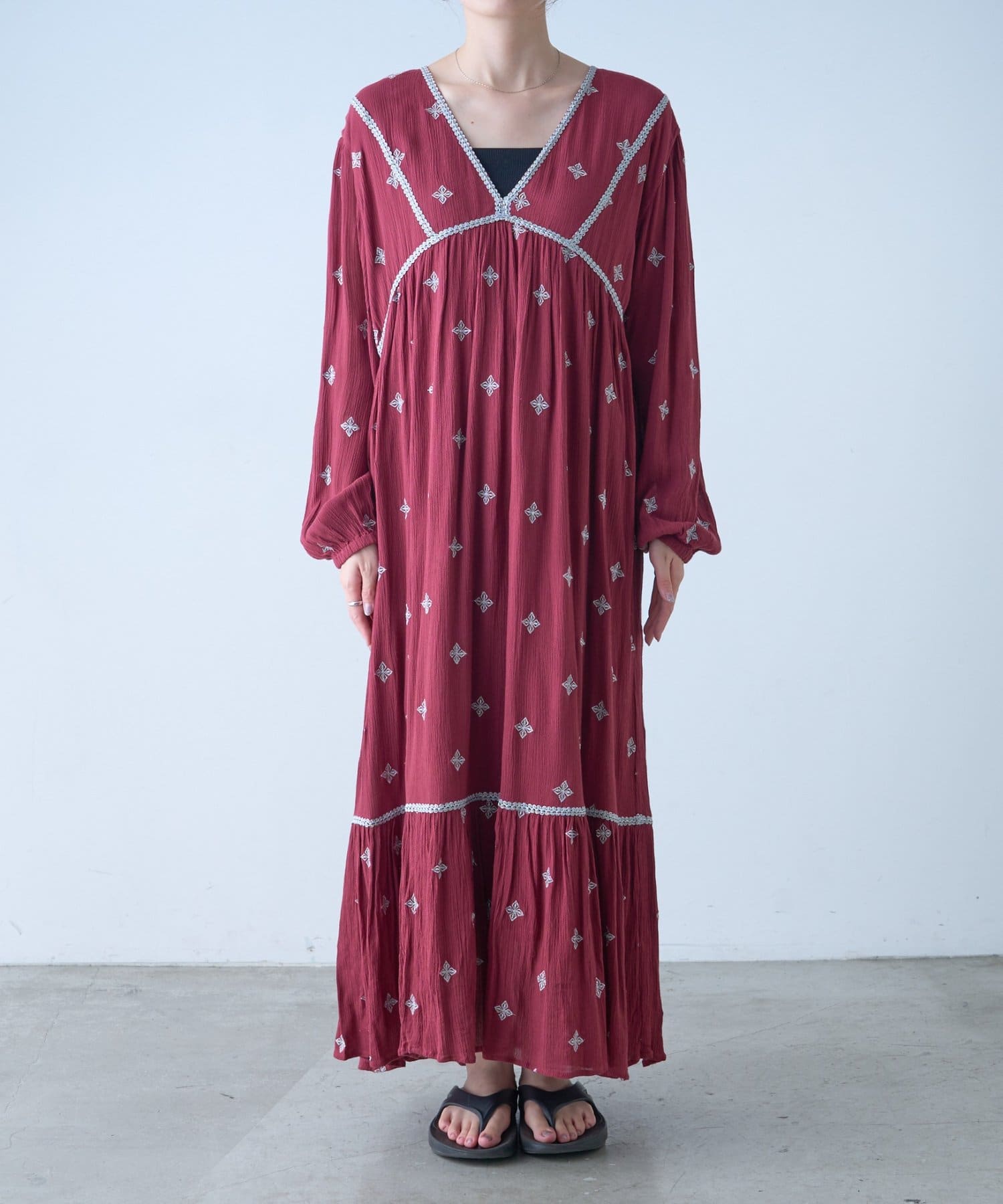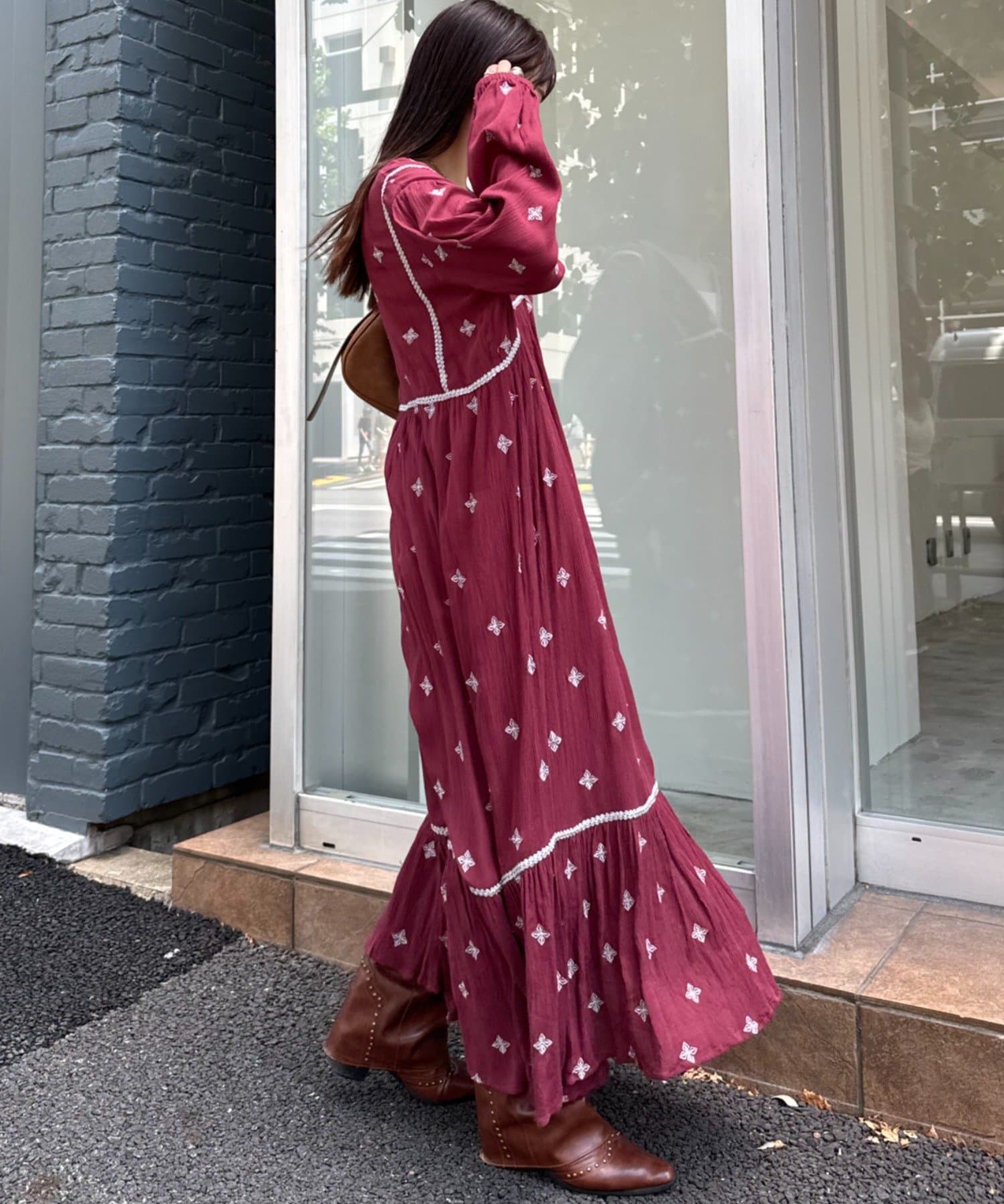 ブラックとボルドーの2色展開で、アクセントの刺繍が華やかな1着です。