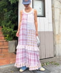 チェック柄を贅沢に組み合わせたパッチワークデザインのキャミワンピ♩