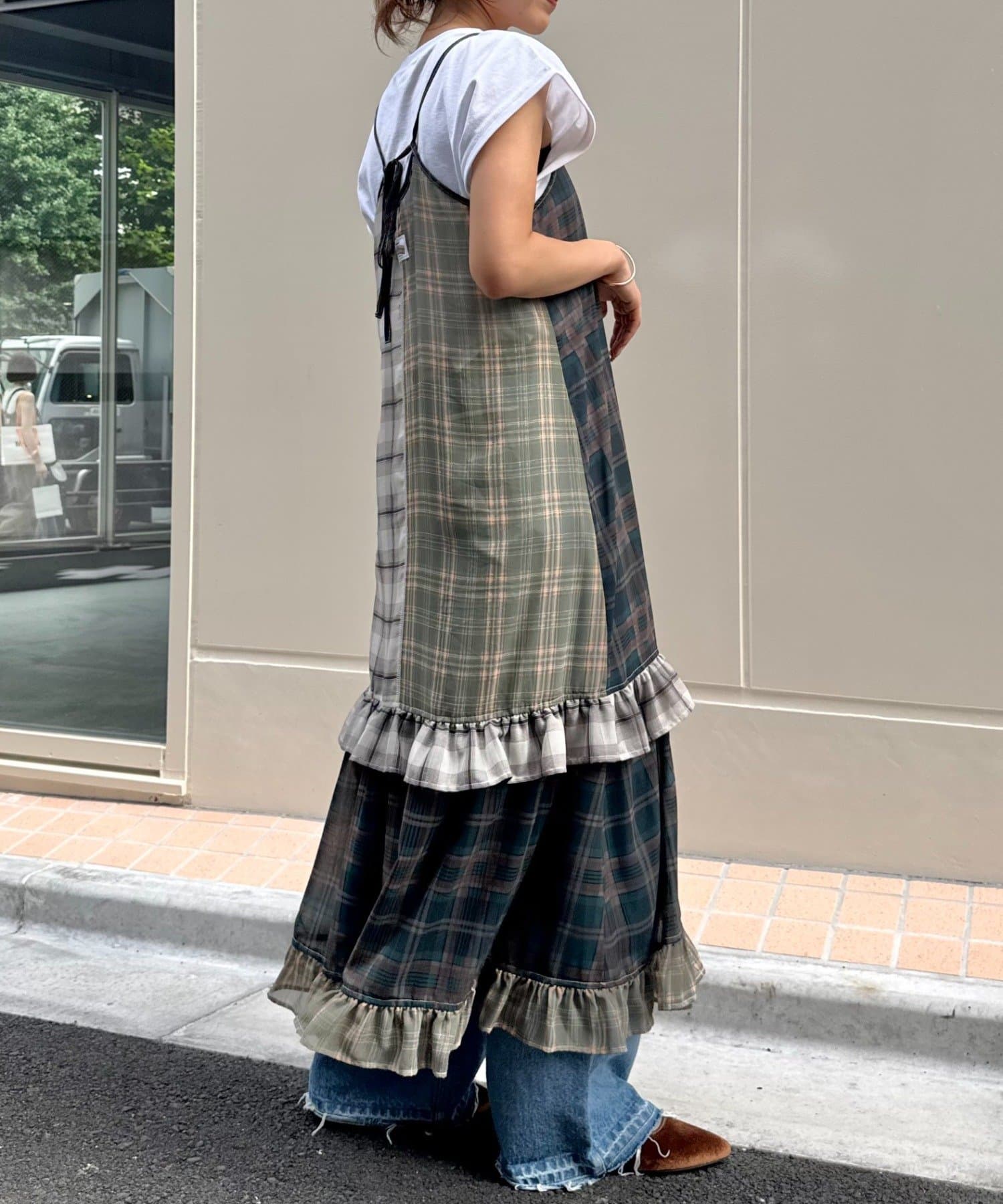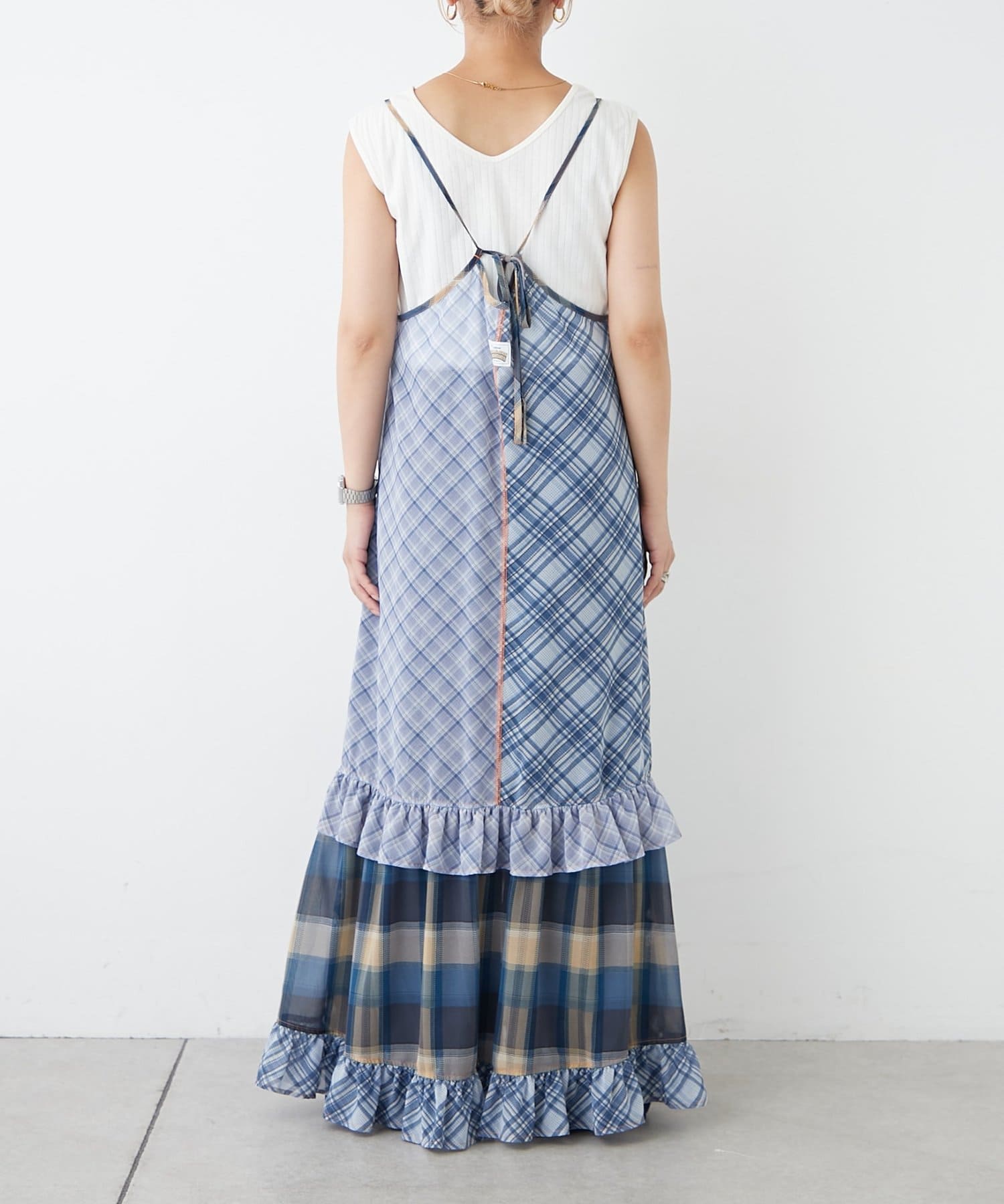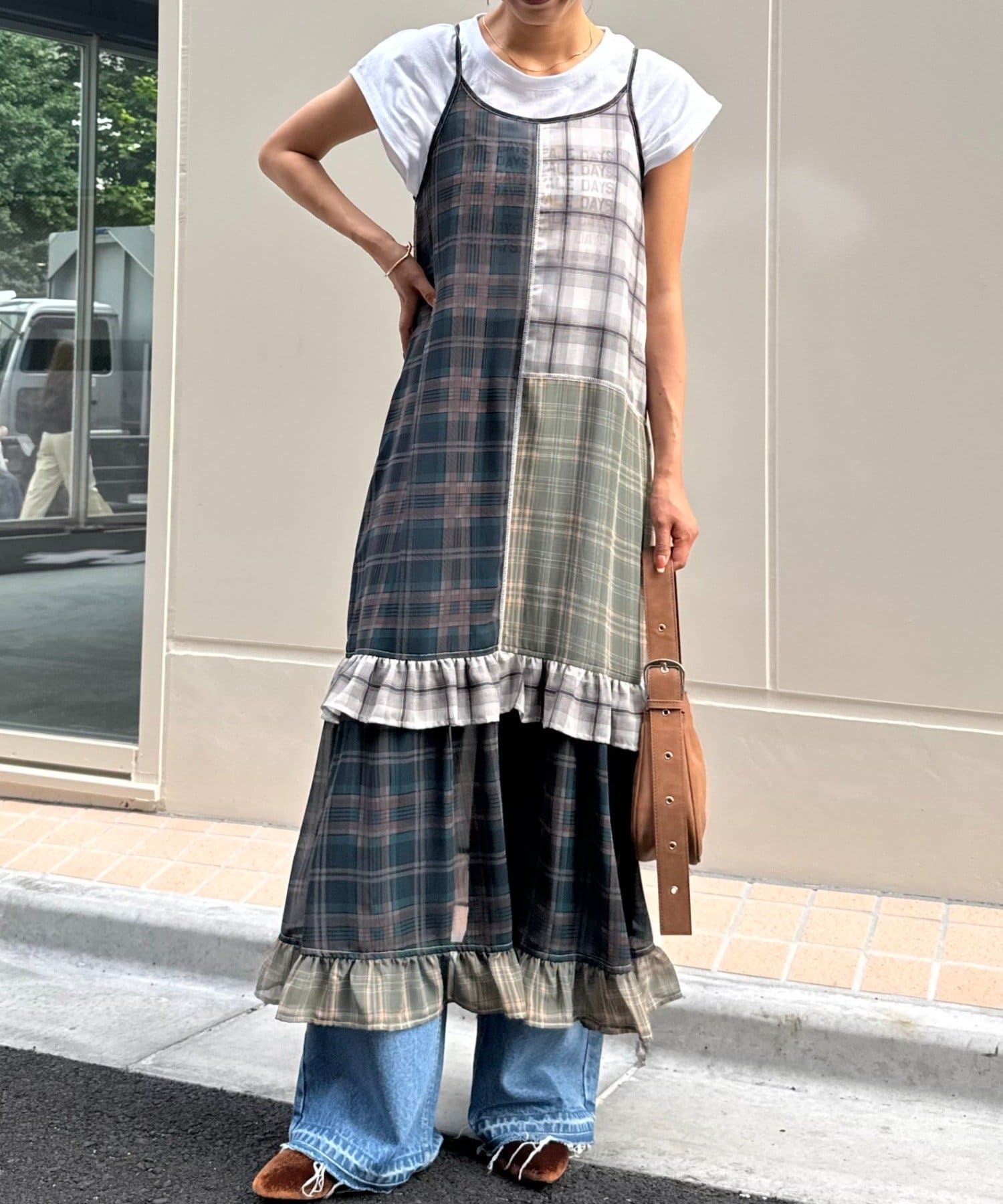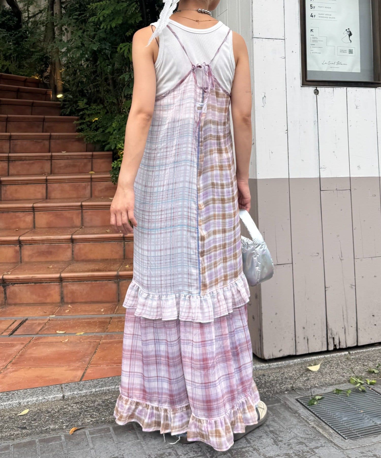 レイヤードが映える♩チェック×フリルキャミワンピ