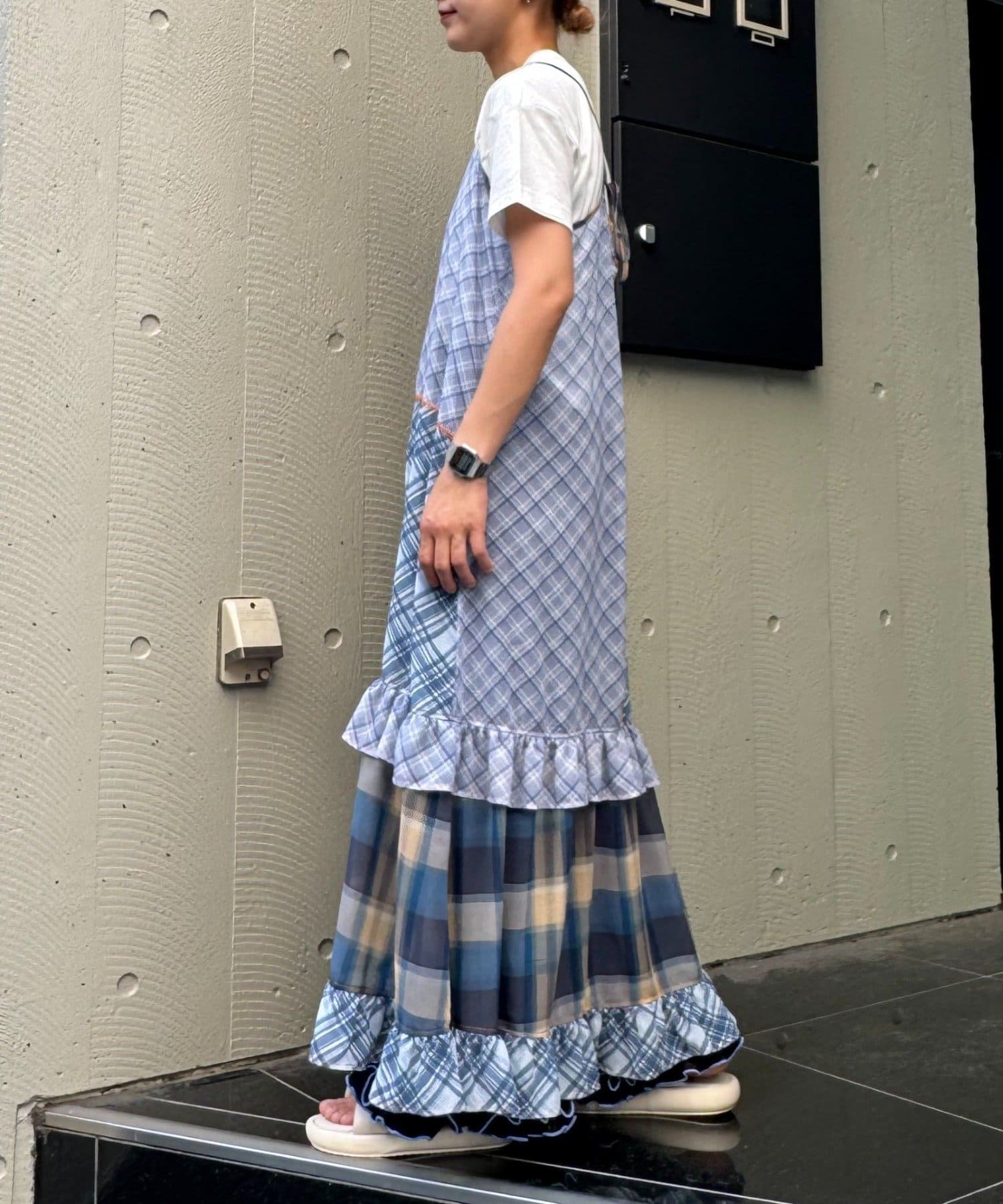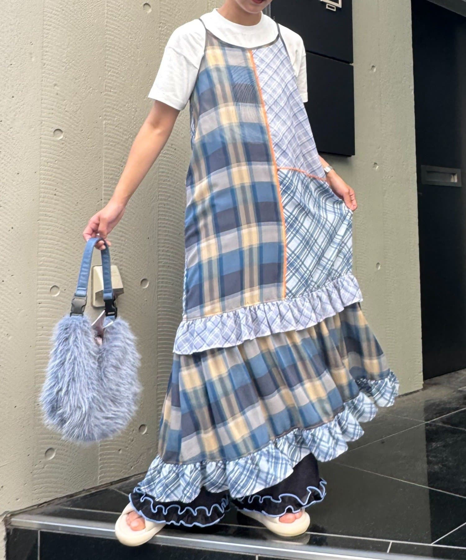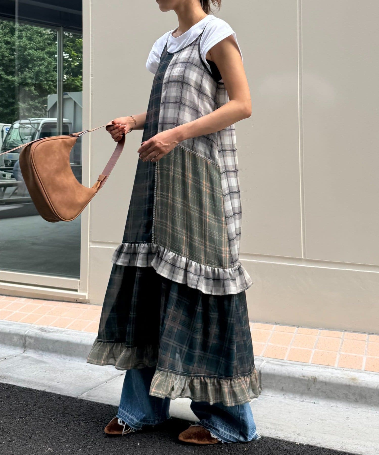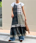 レイヤードが映える♩チェック×フリルキャミワンピ