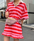 甘めなワンピースに合わせれば、バッグのフリルがリンクして統一感あるガーリーコーデに。