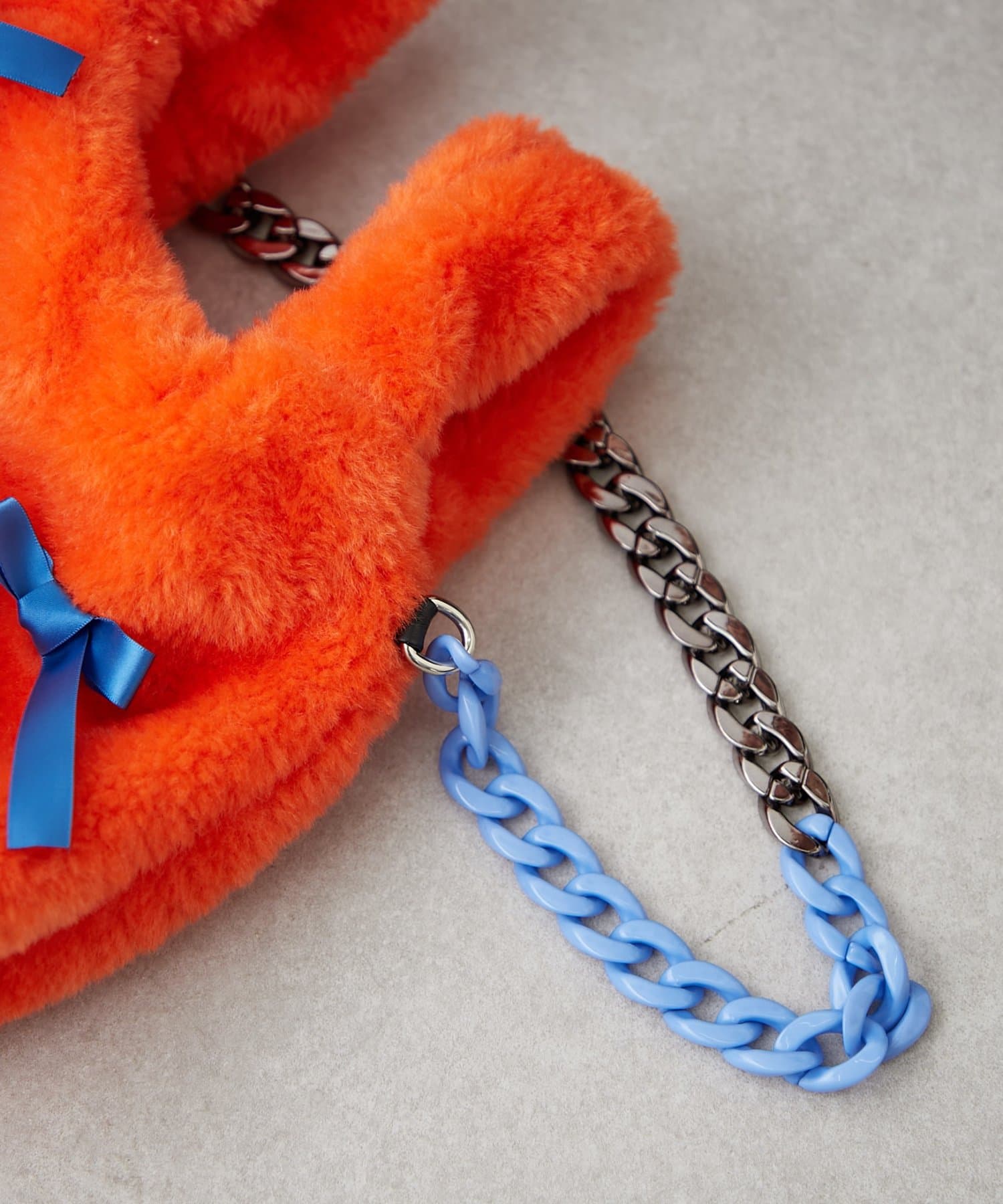 リボンと配色が可愛すぎる♩チェーン付きリボンファーバッグ