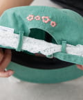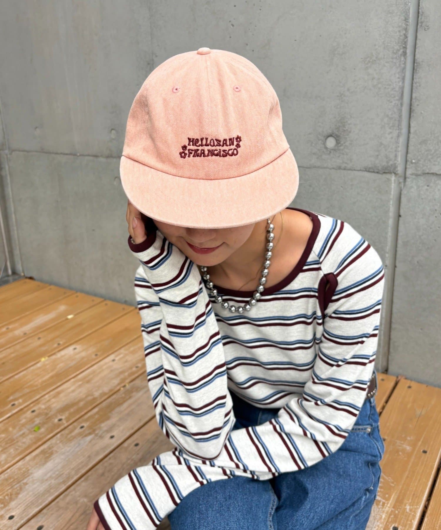 ベースは6パネルのベーシックな形なので、甘さがありつつもしっかりカジュアルに馴染んでくれます。