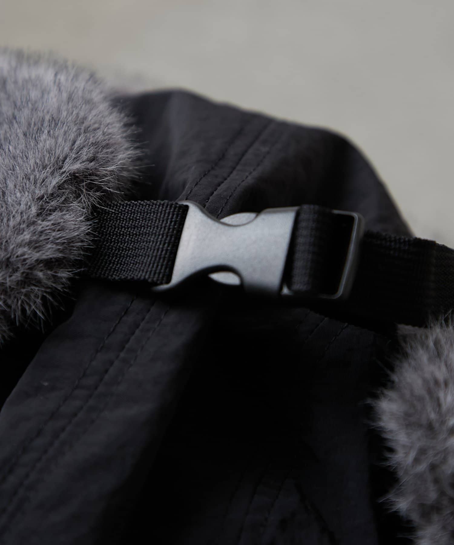 ・本体は防風性のある素材、イヤーフラップは保温性の高いファー素材を使用