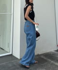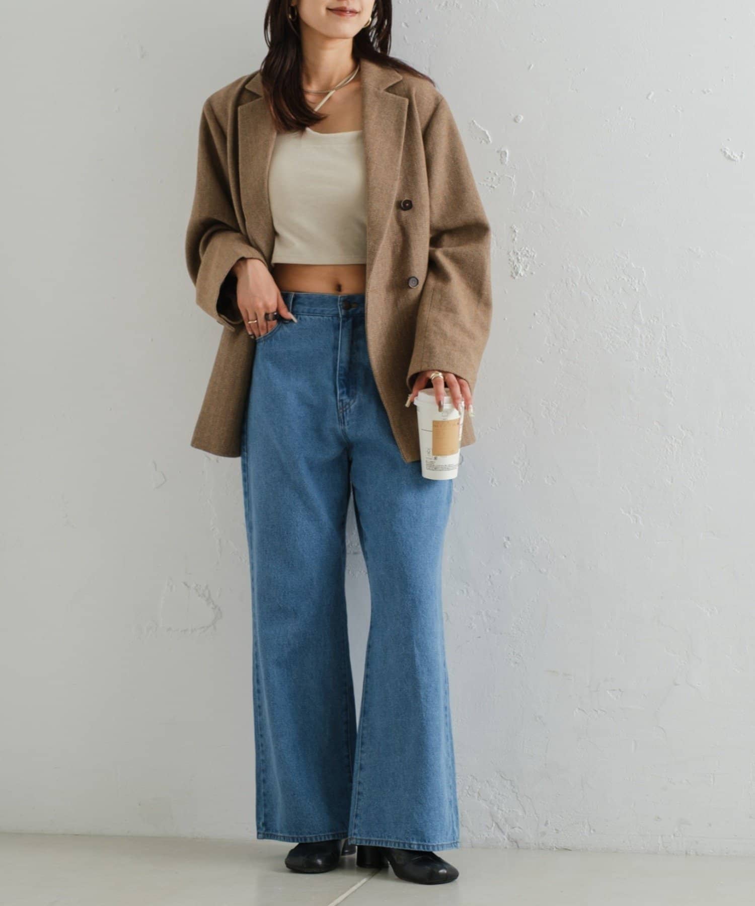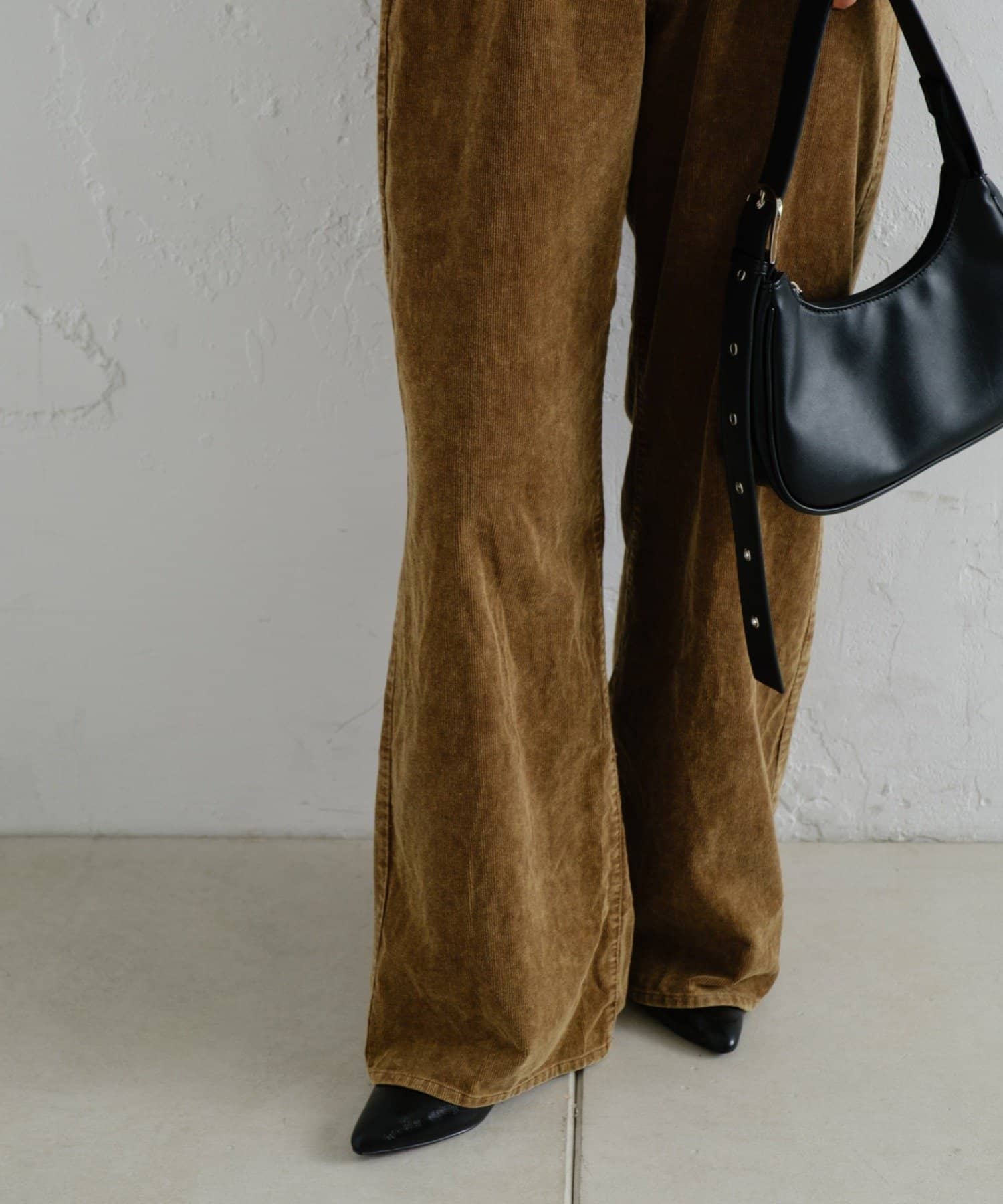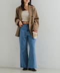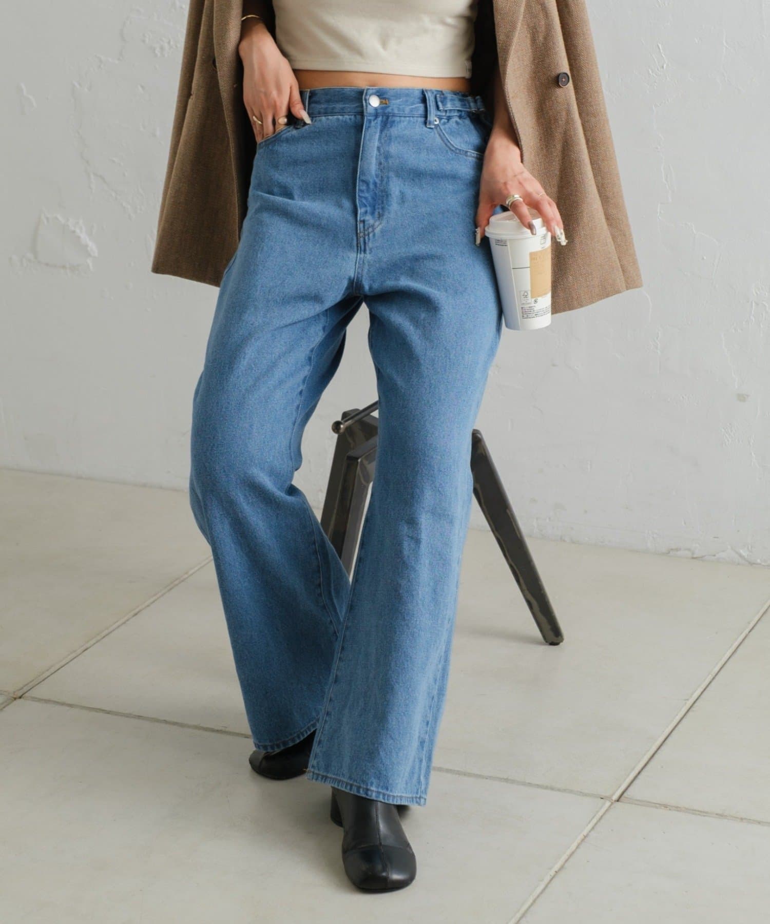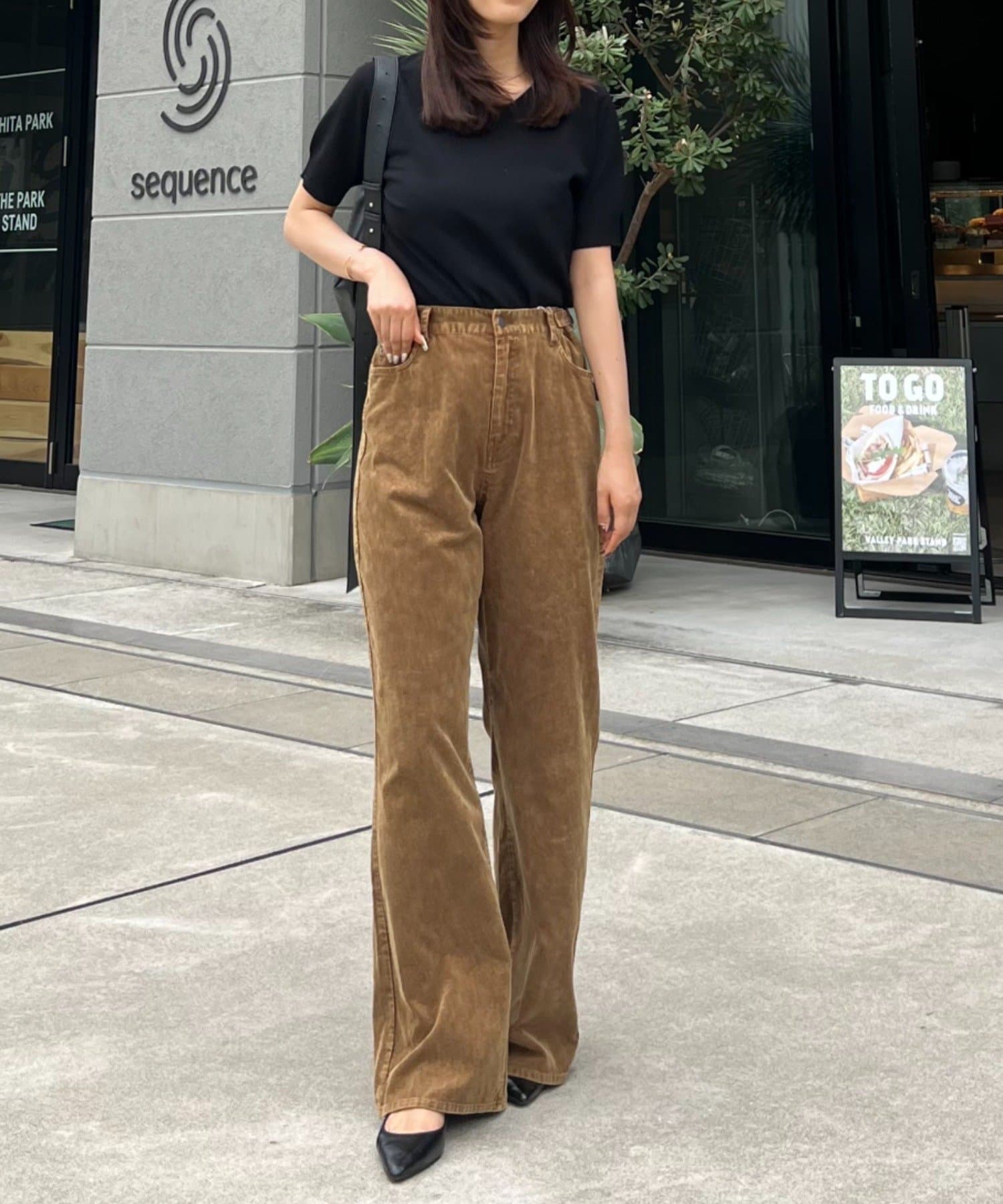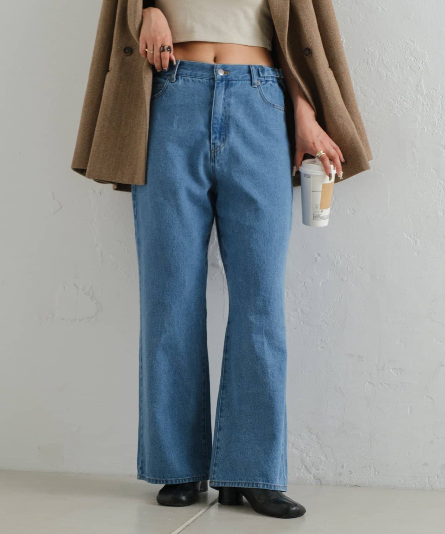 また、ハイウエスト、フレアシルエットにすることでさらにスタイルアップ見えするデザインに。