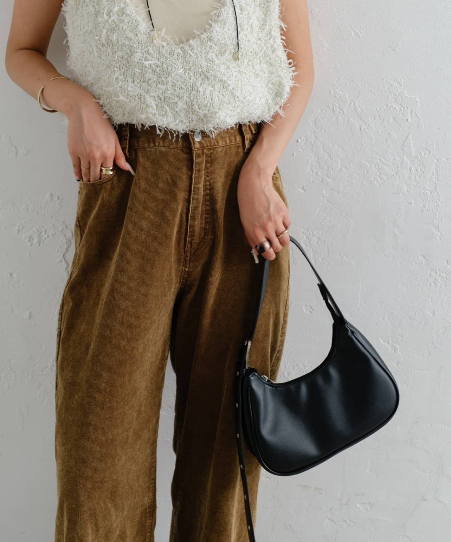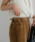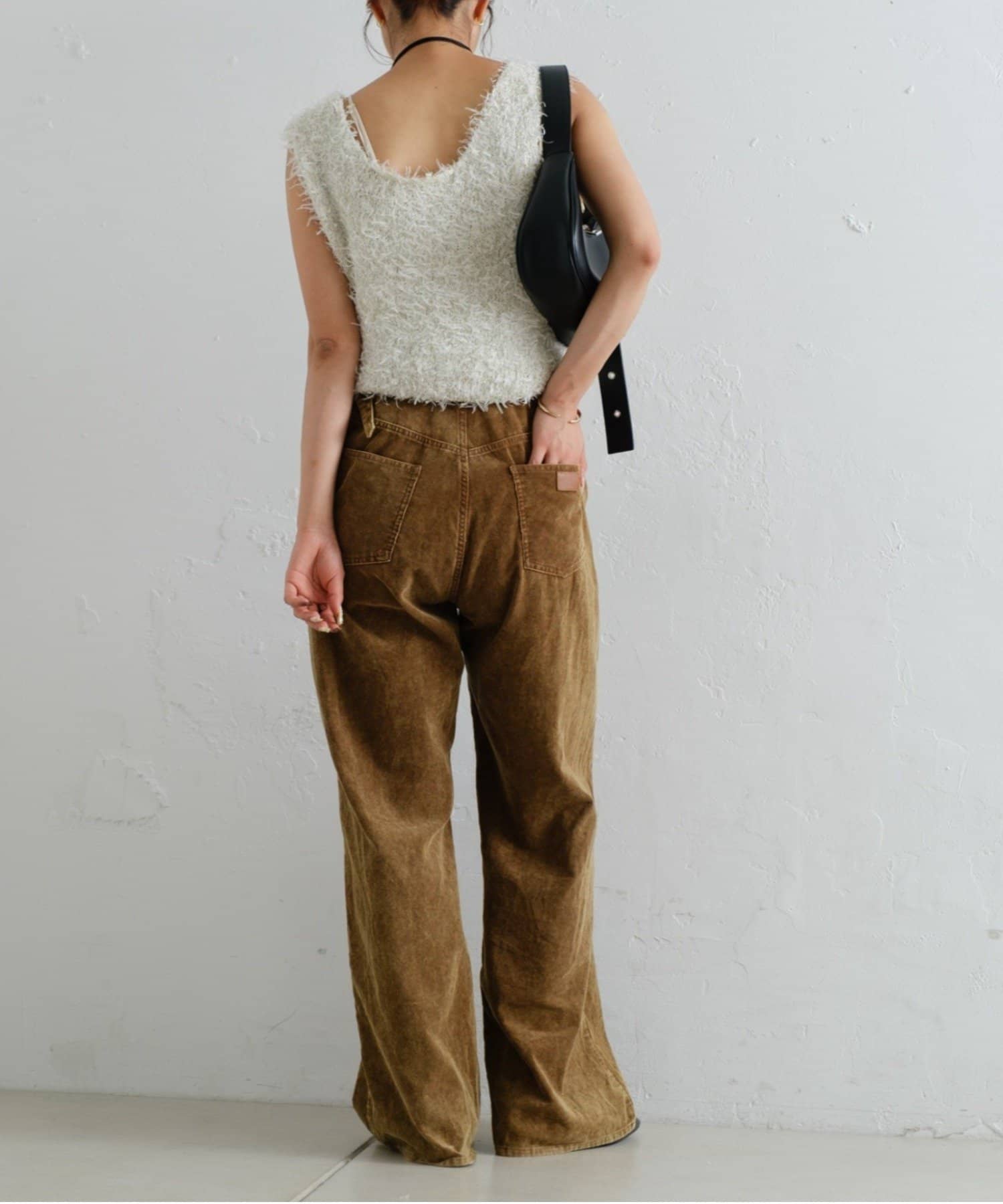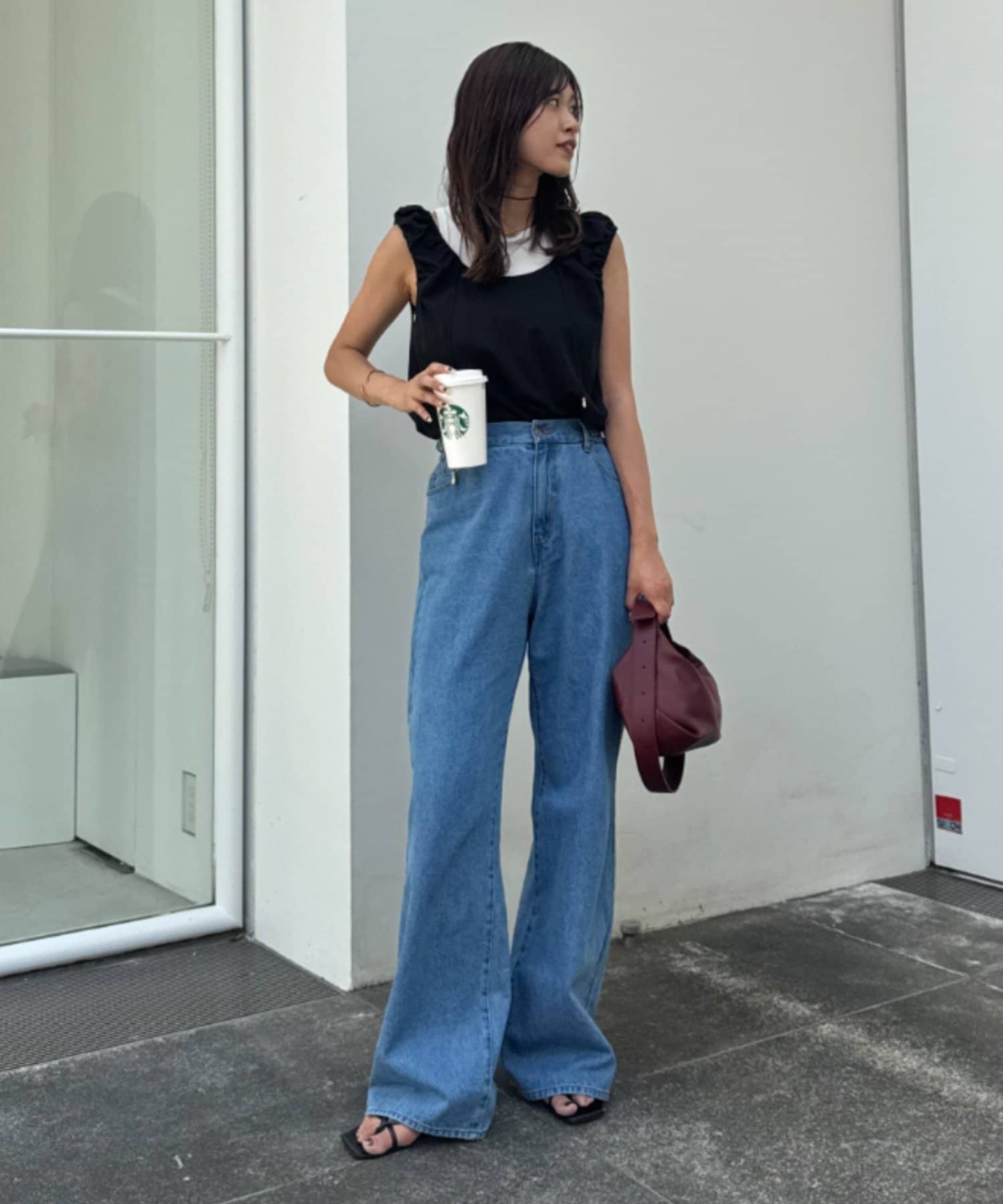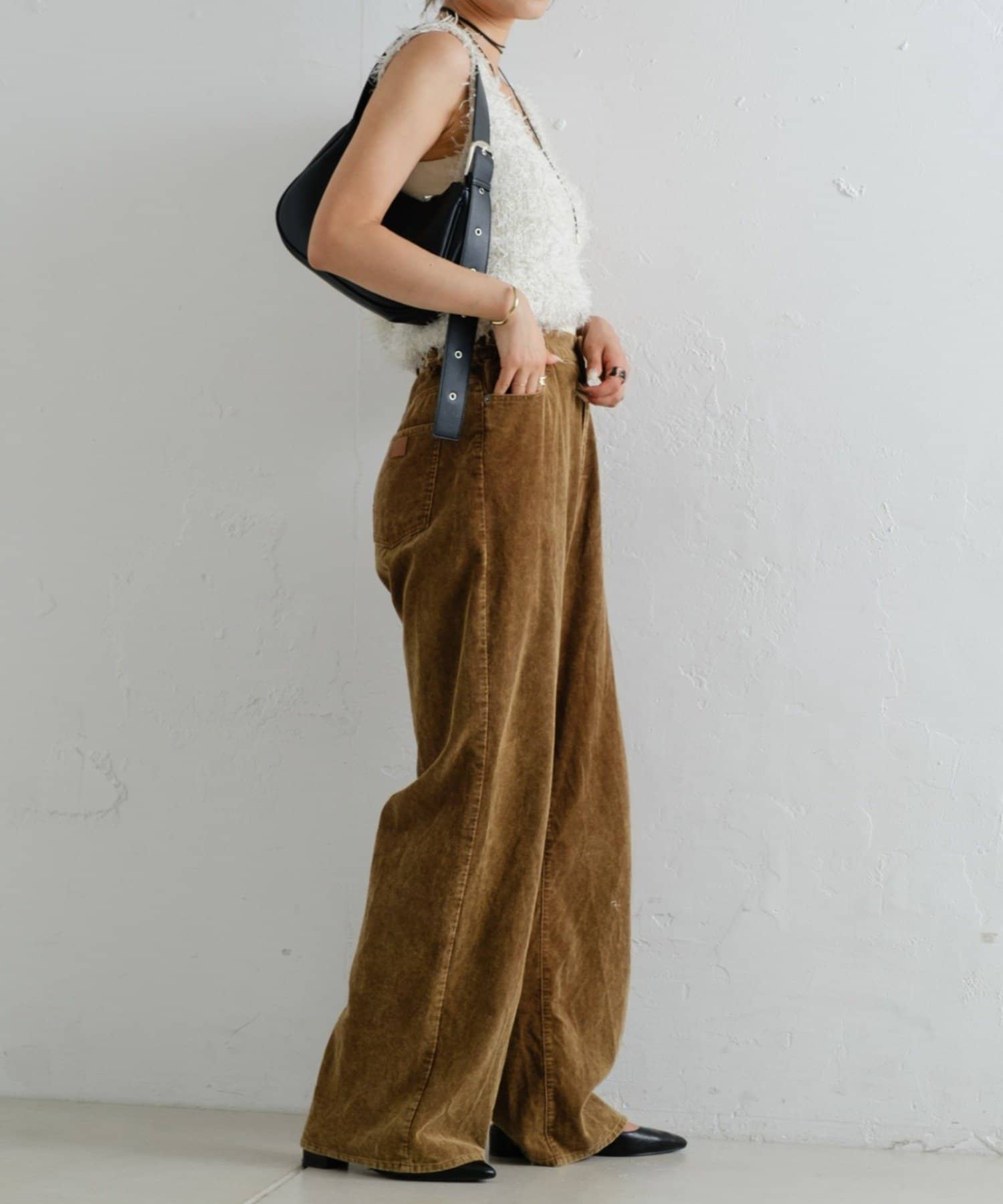 シアートップスやリブカーディガンなどと合わせて女性らしいコーディネートに。