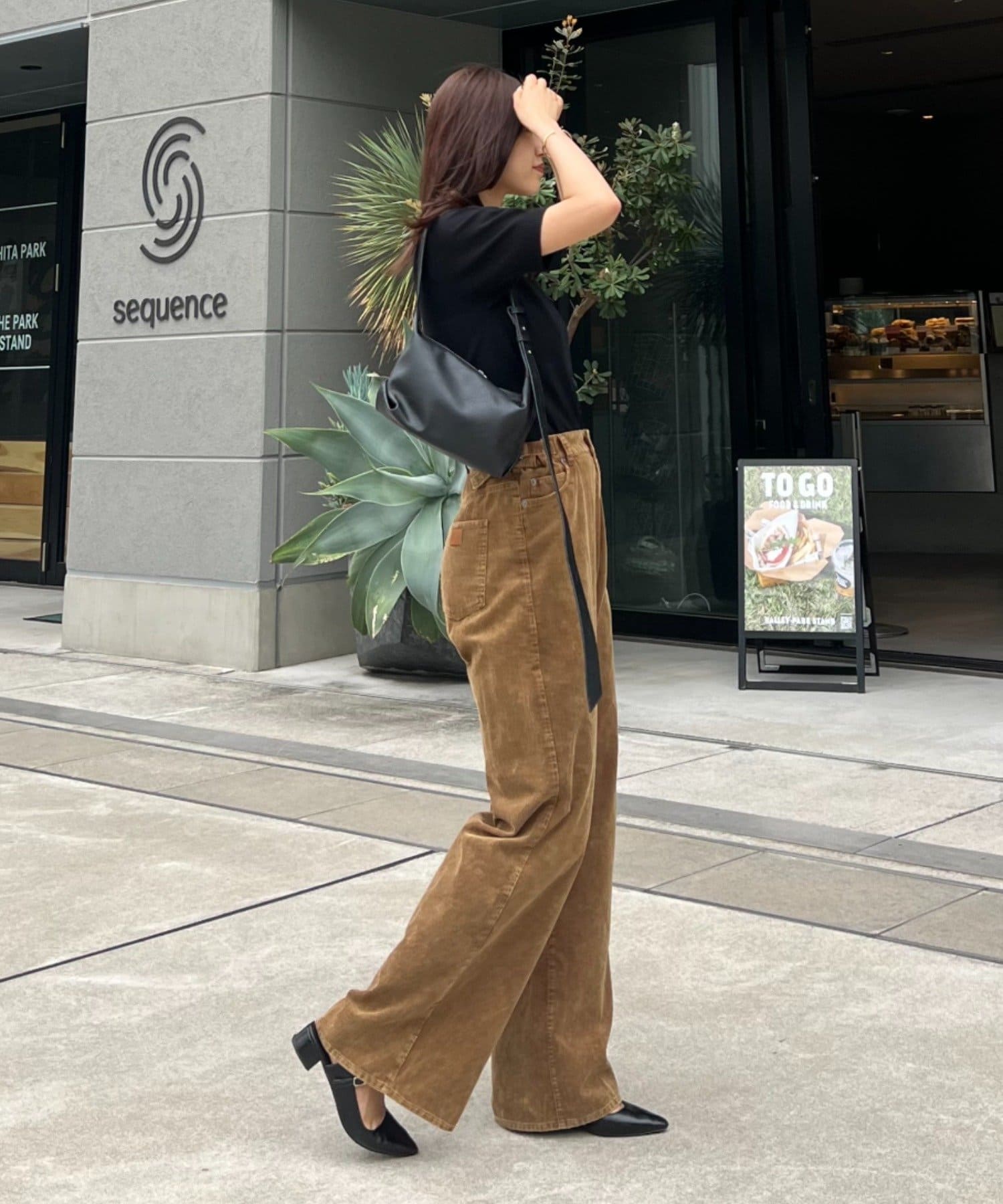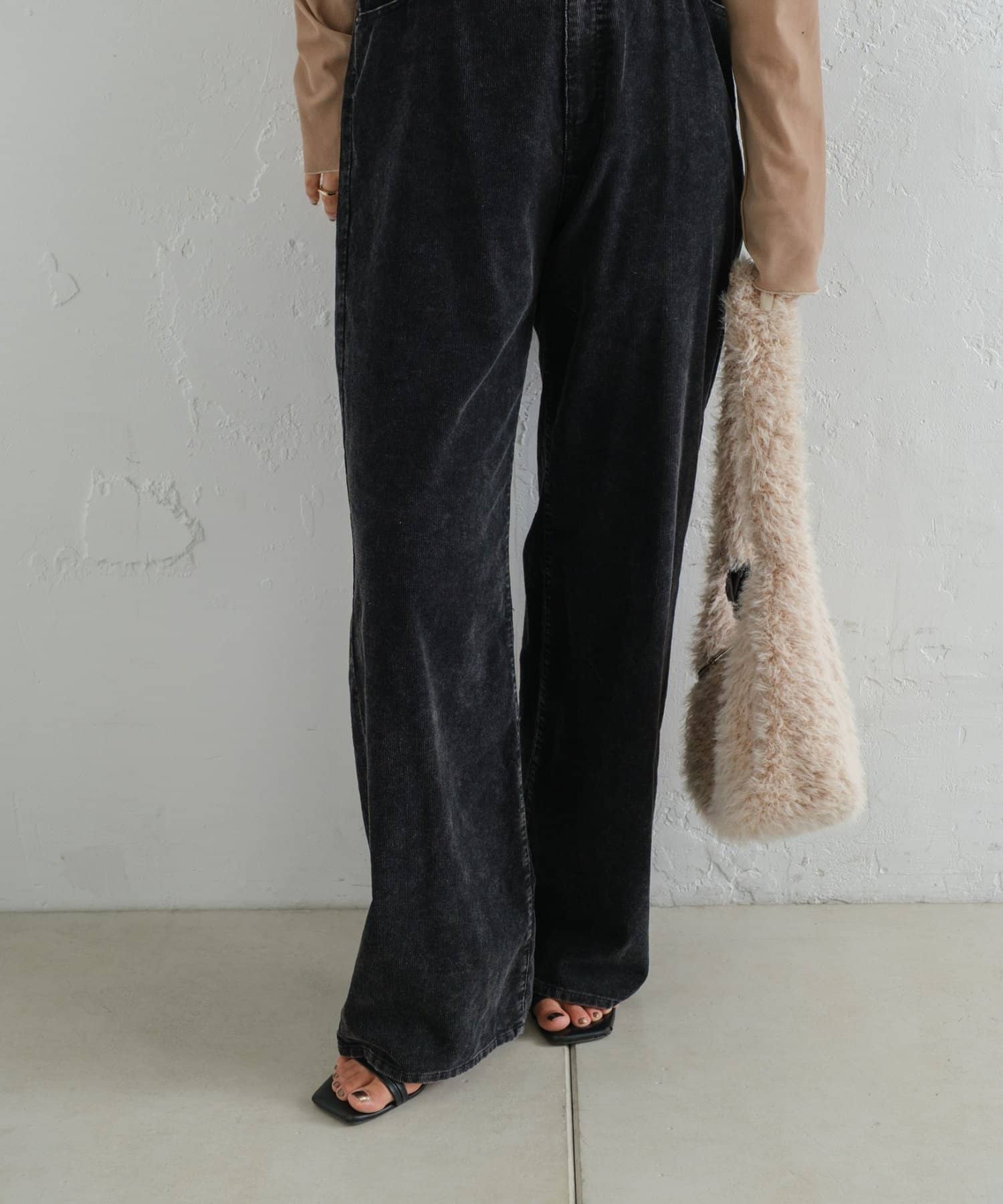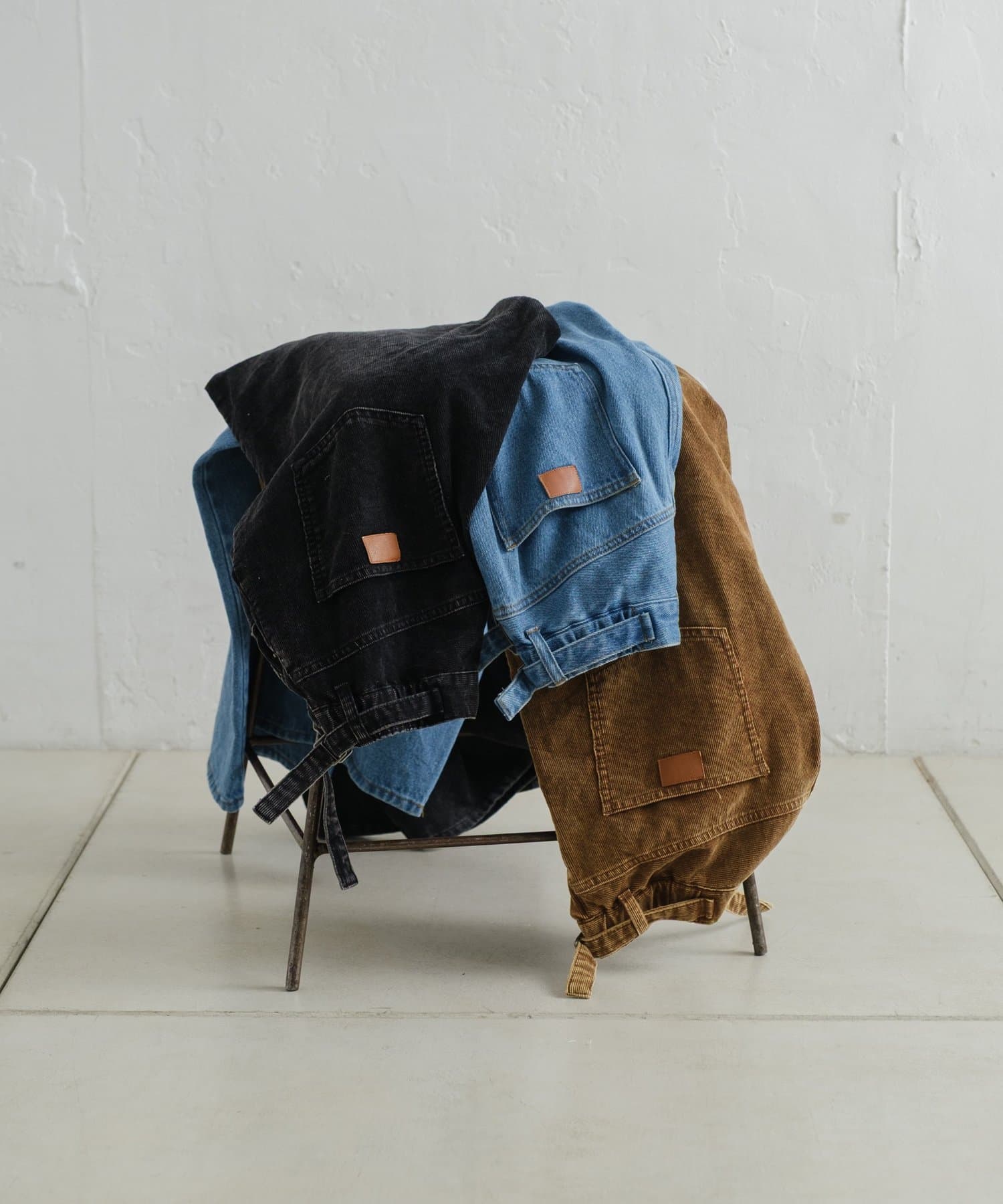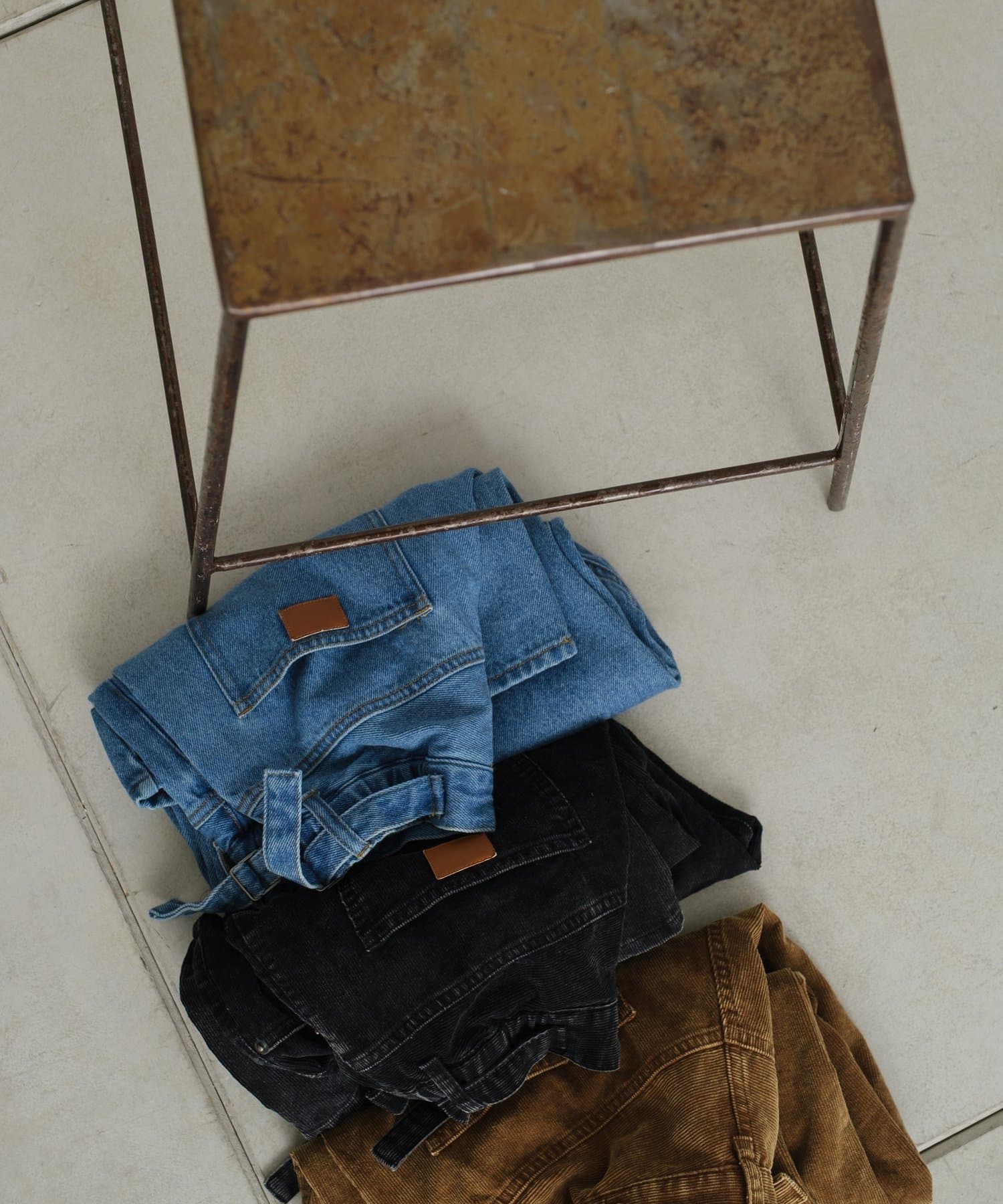 コーデュロイ素材のブラック、キャメルとデニム素材のインディゴブルーの3色展開。