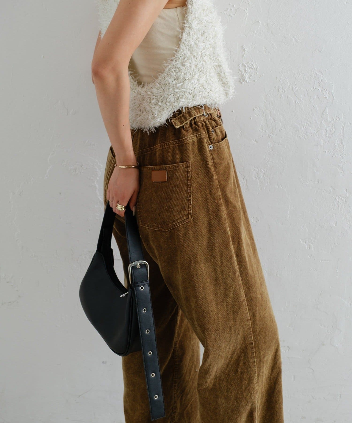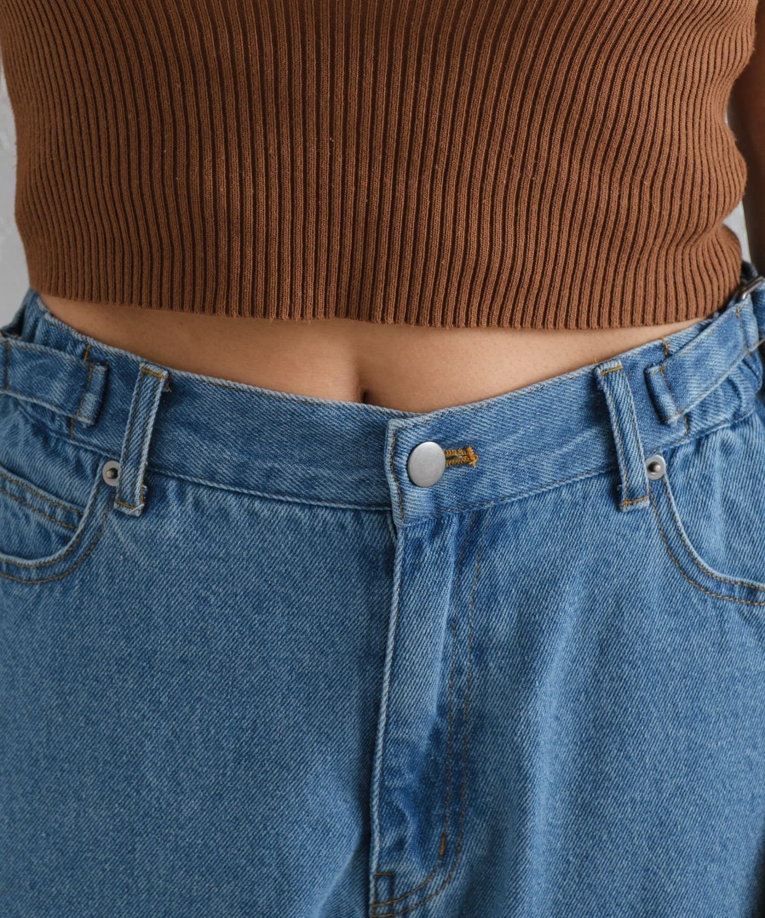 ウエストとヒップが合わないという悩みを解決してくれ、ベルトいらずで自分の体型に合わせたサイズ感で着用ができます◎