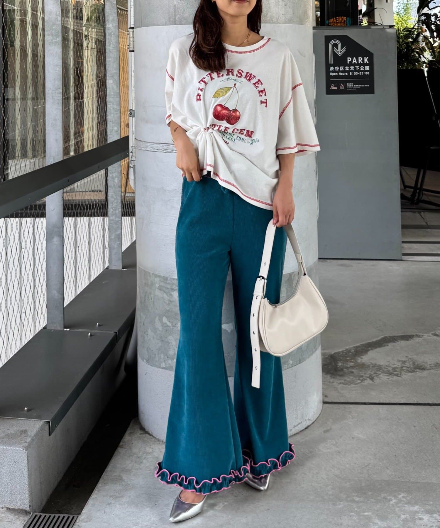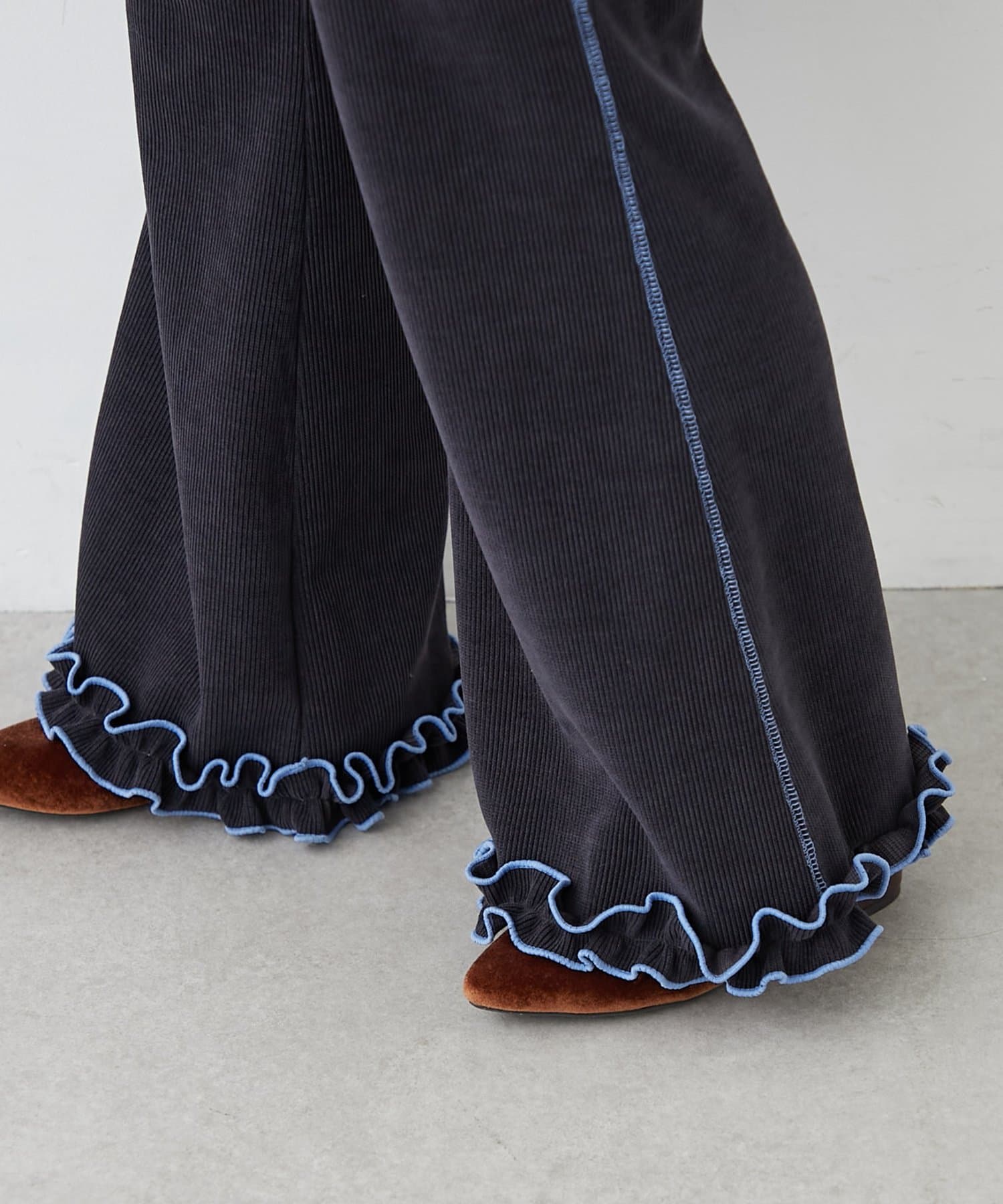 \フレアでシルエット◎コーデュロイ×メローフリルが可愛いイージーパンツ/