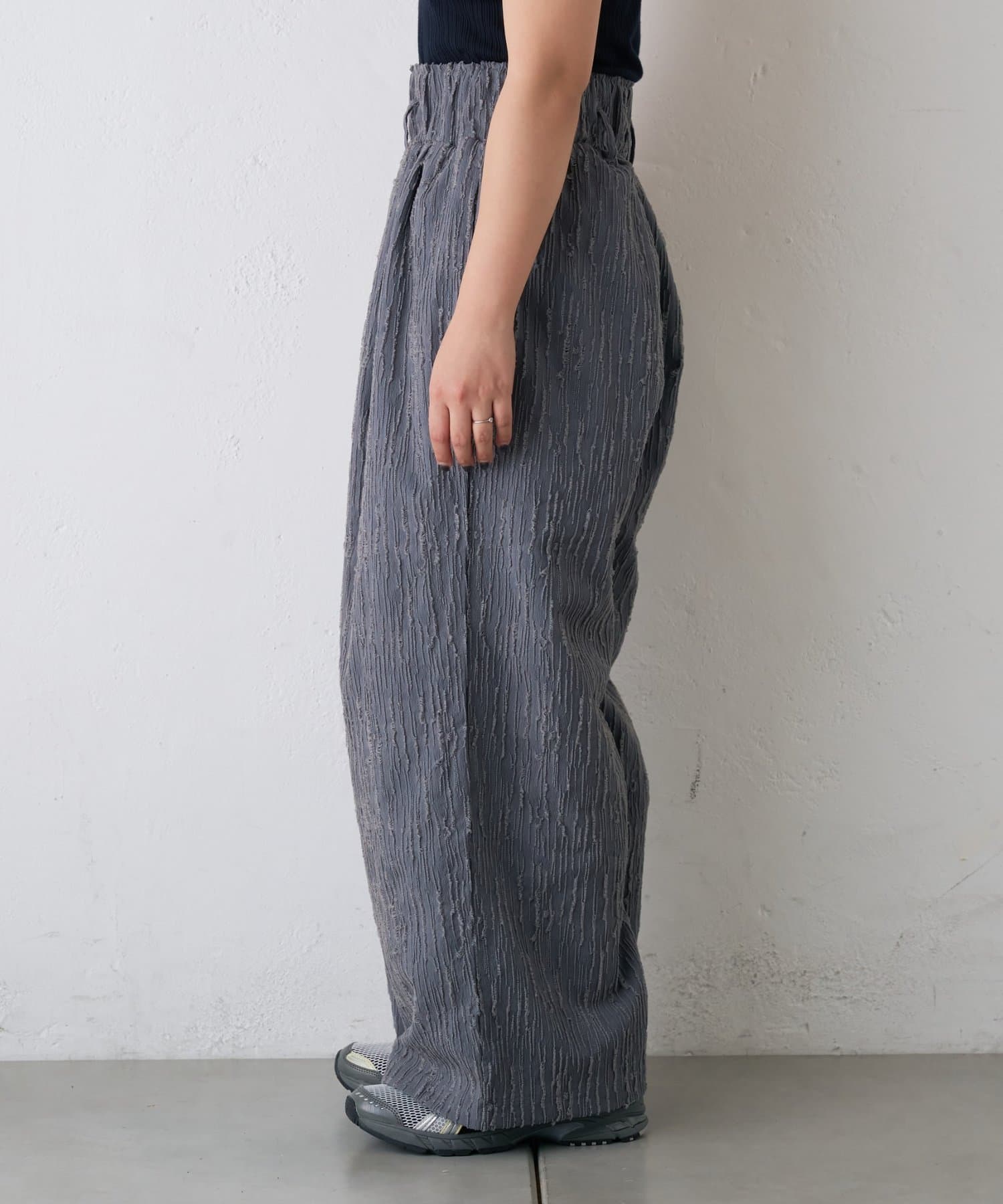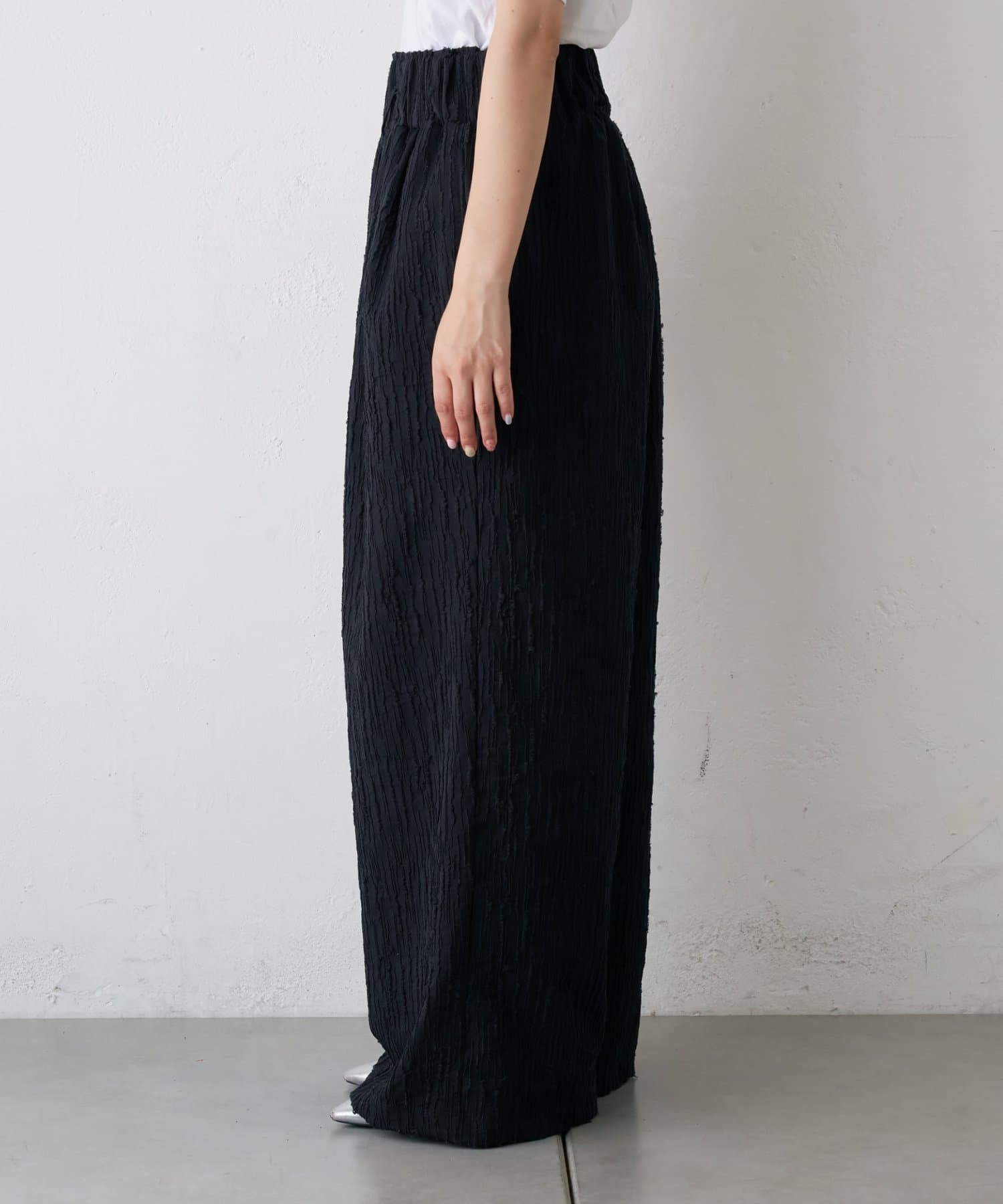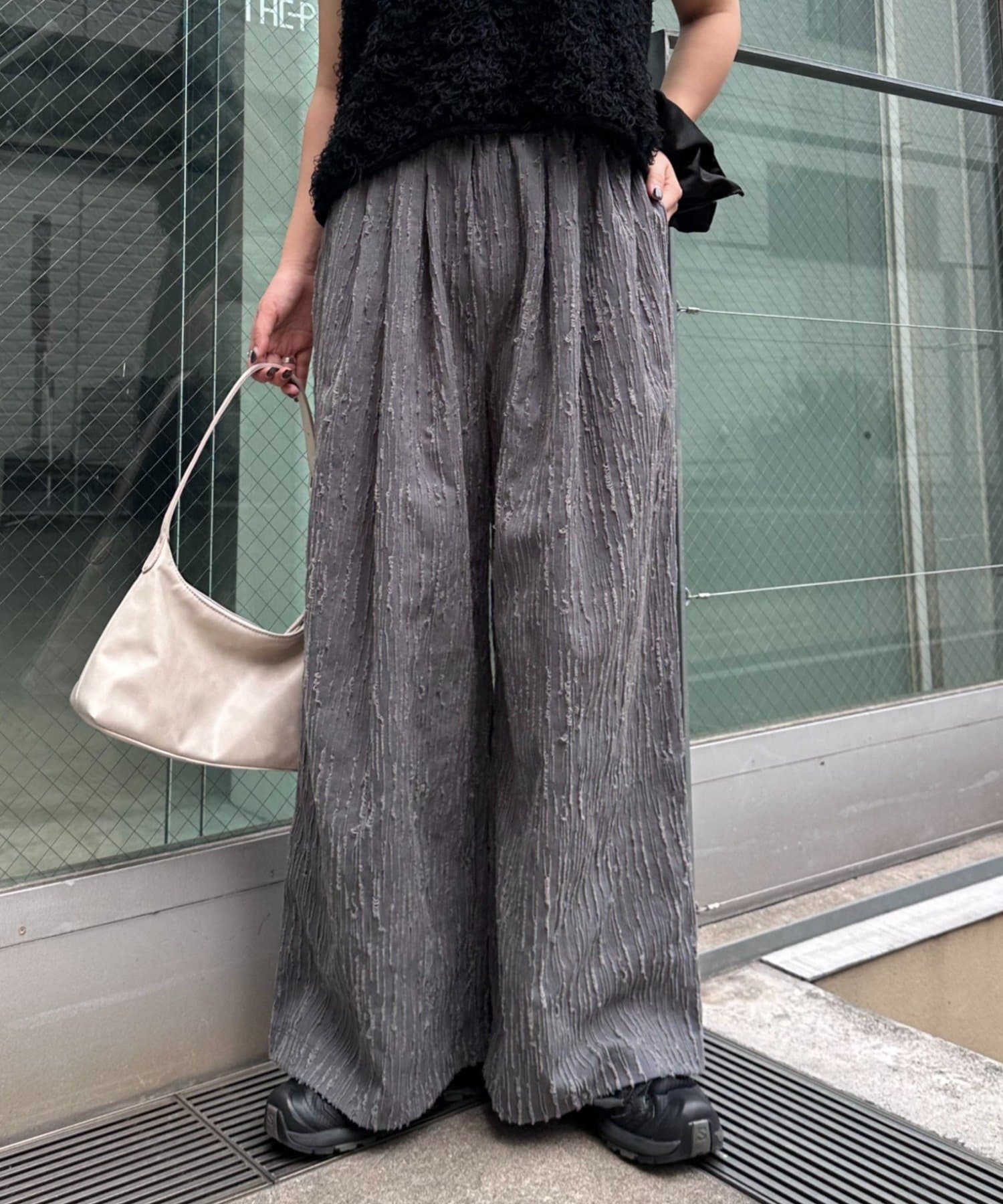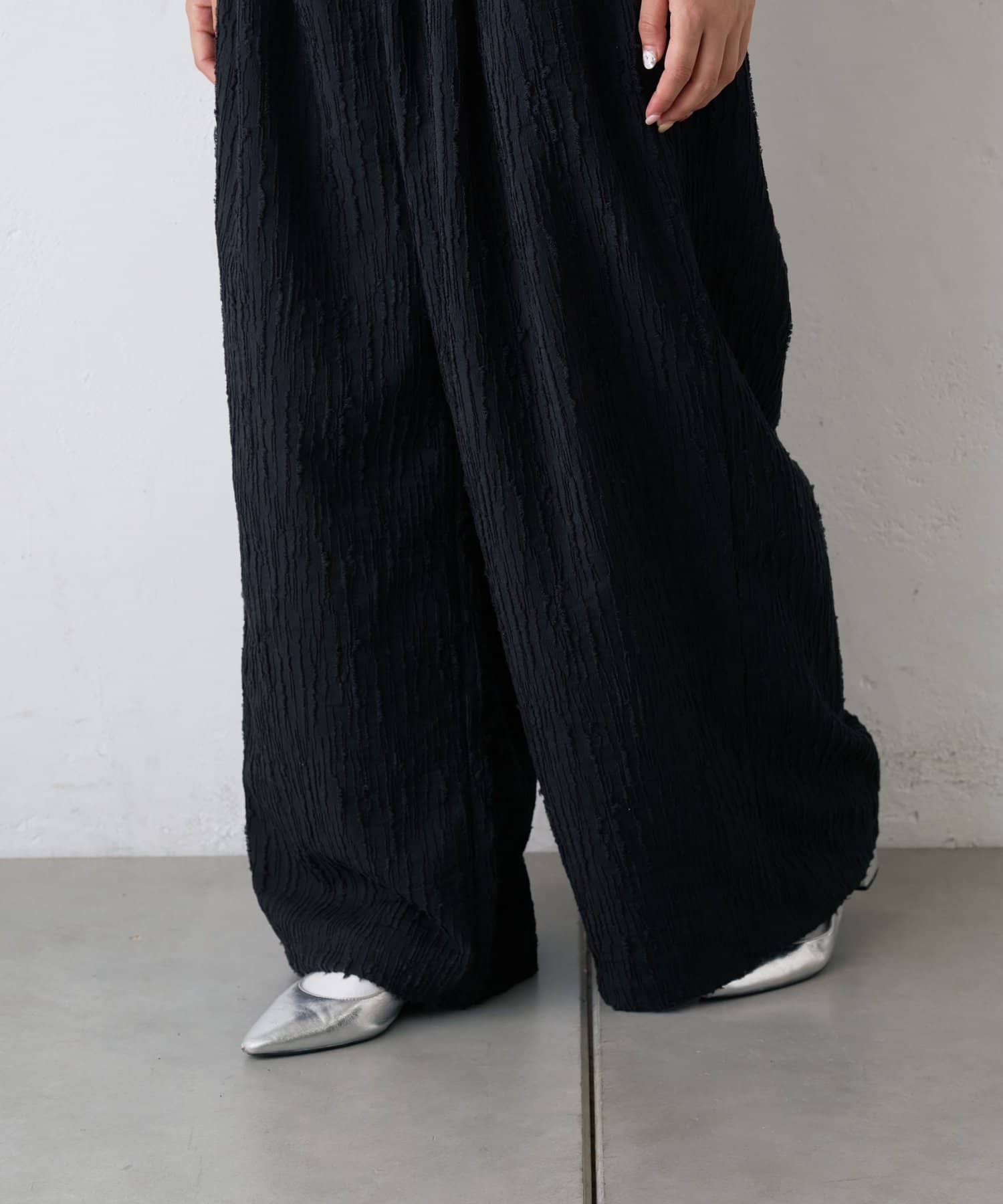 表面感のあるジャガード柄の生地が魅力のワイドパンツ!
