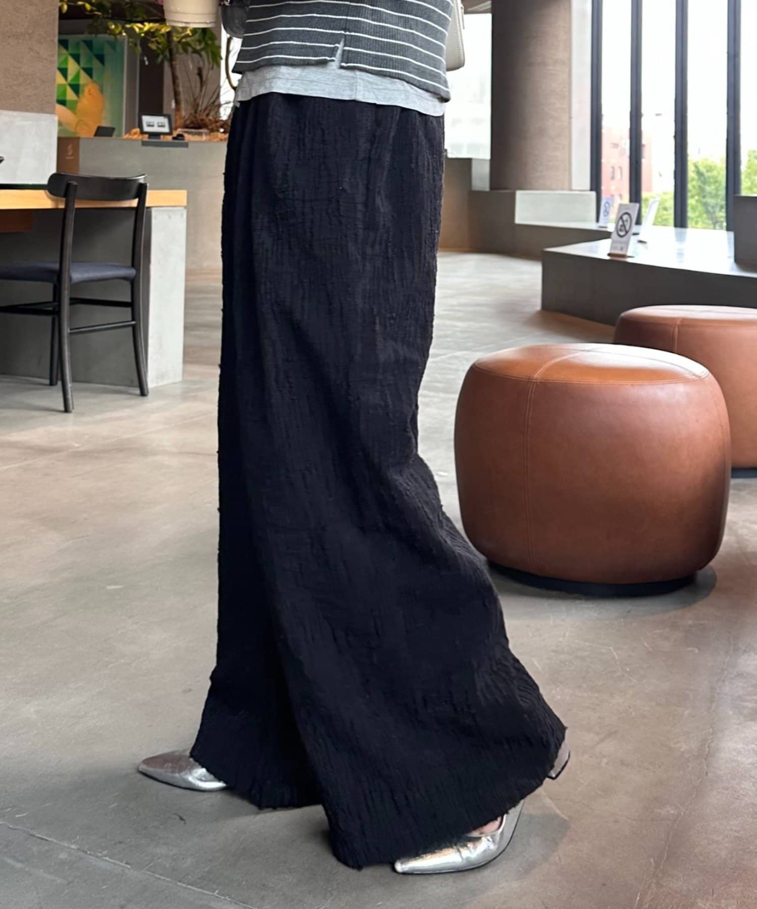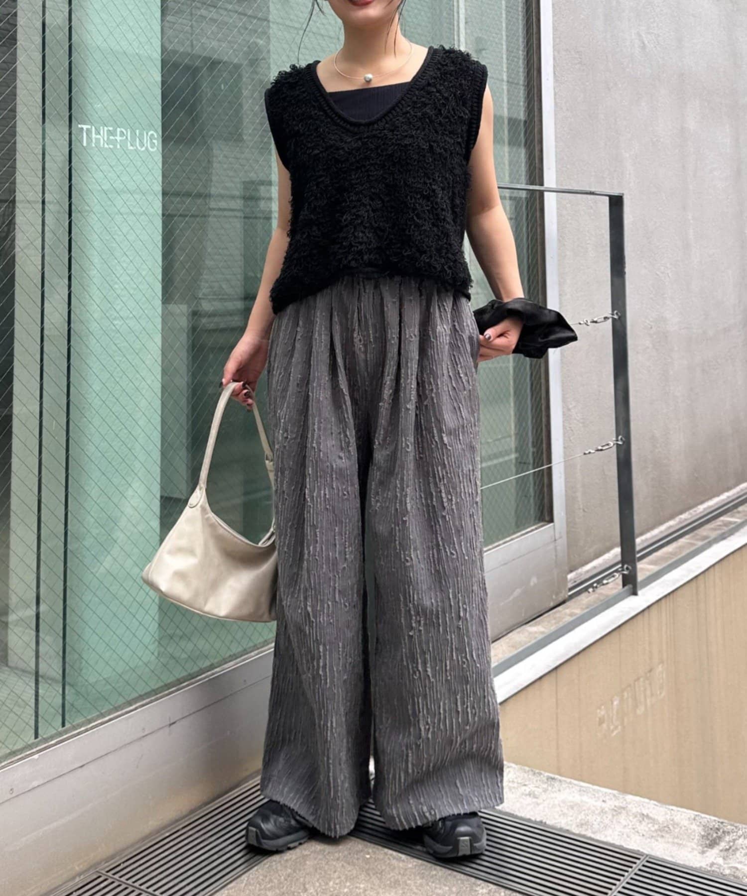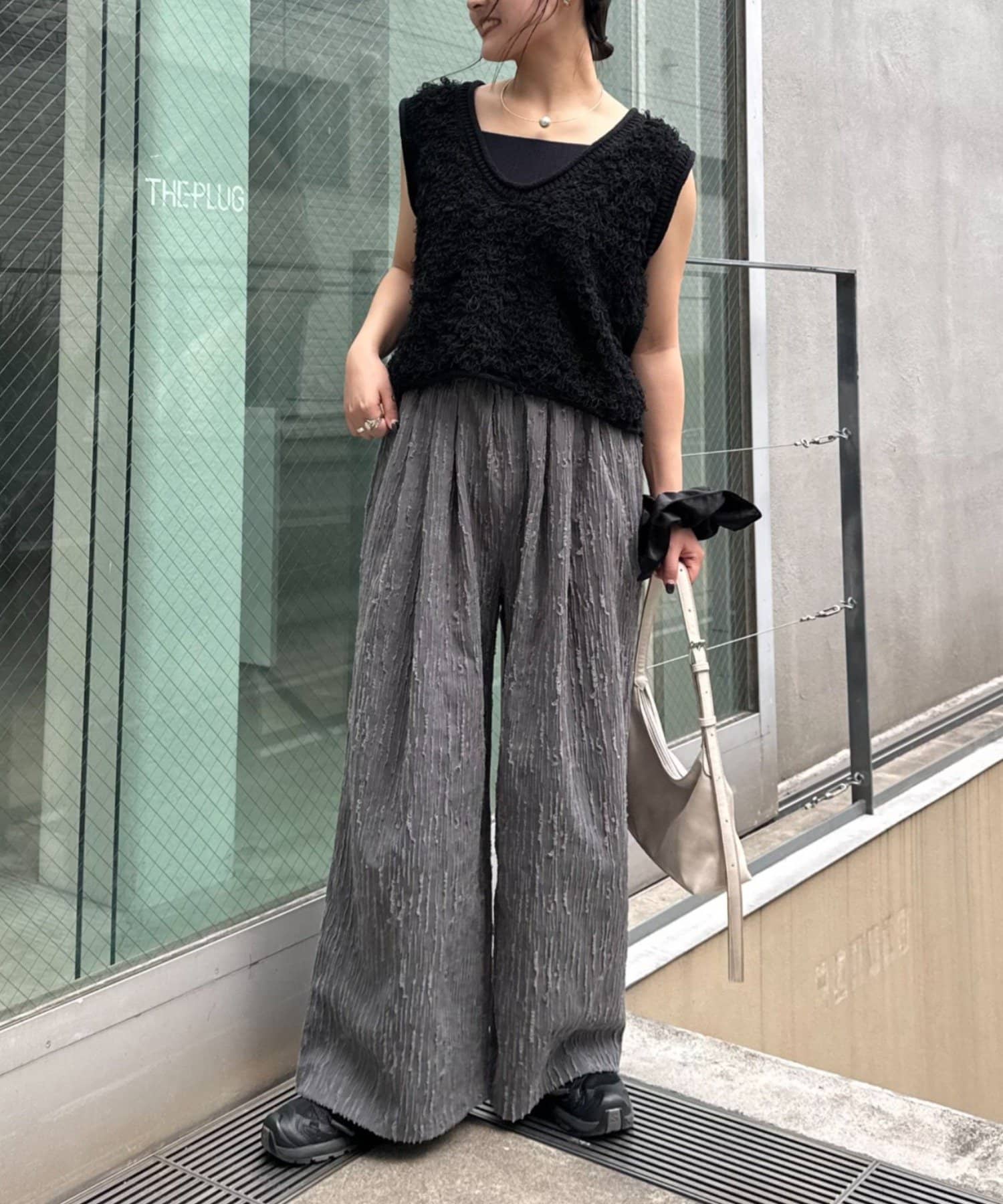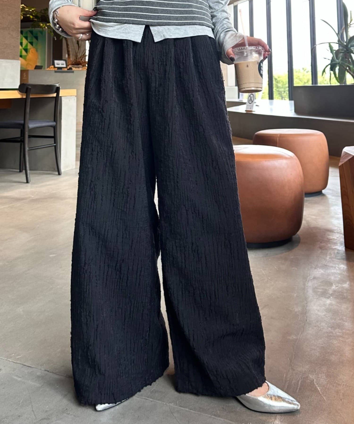 表面感のあるジャガード柄の生地が魅力のワイドパンツ!