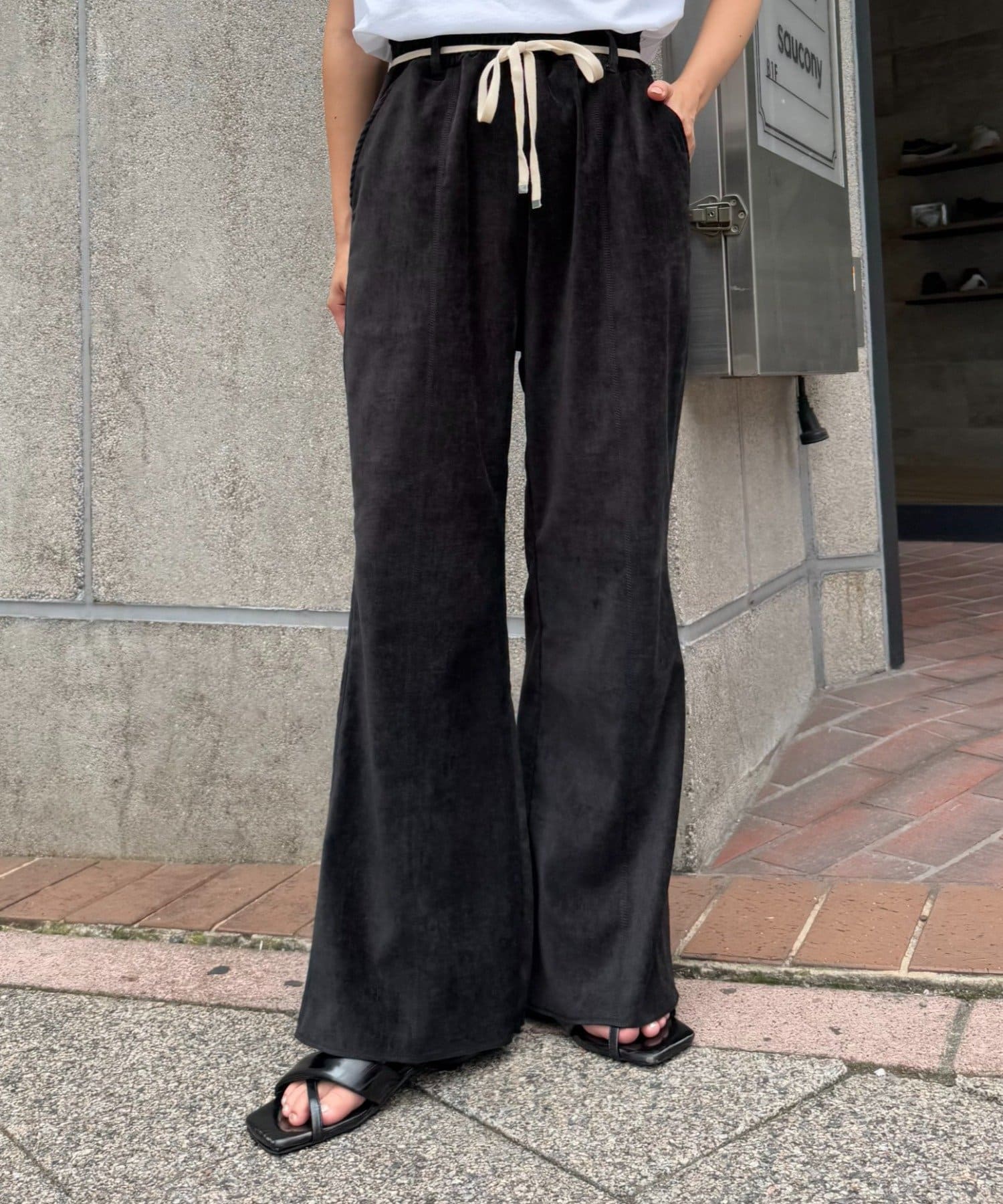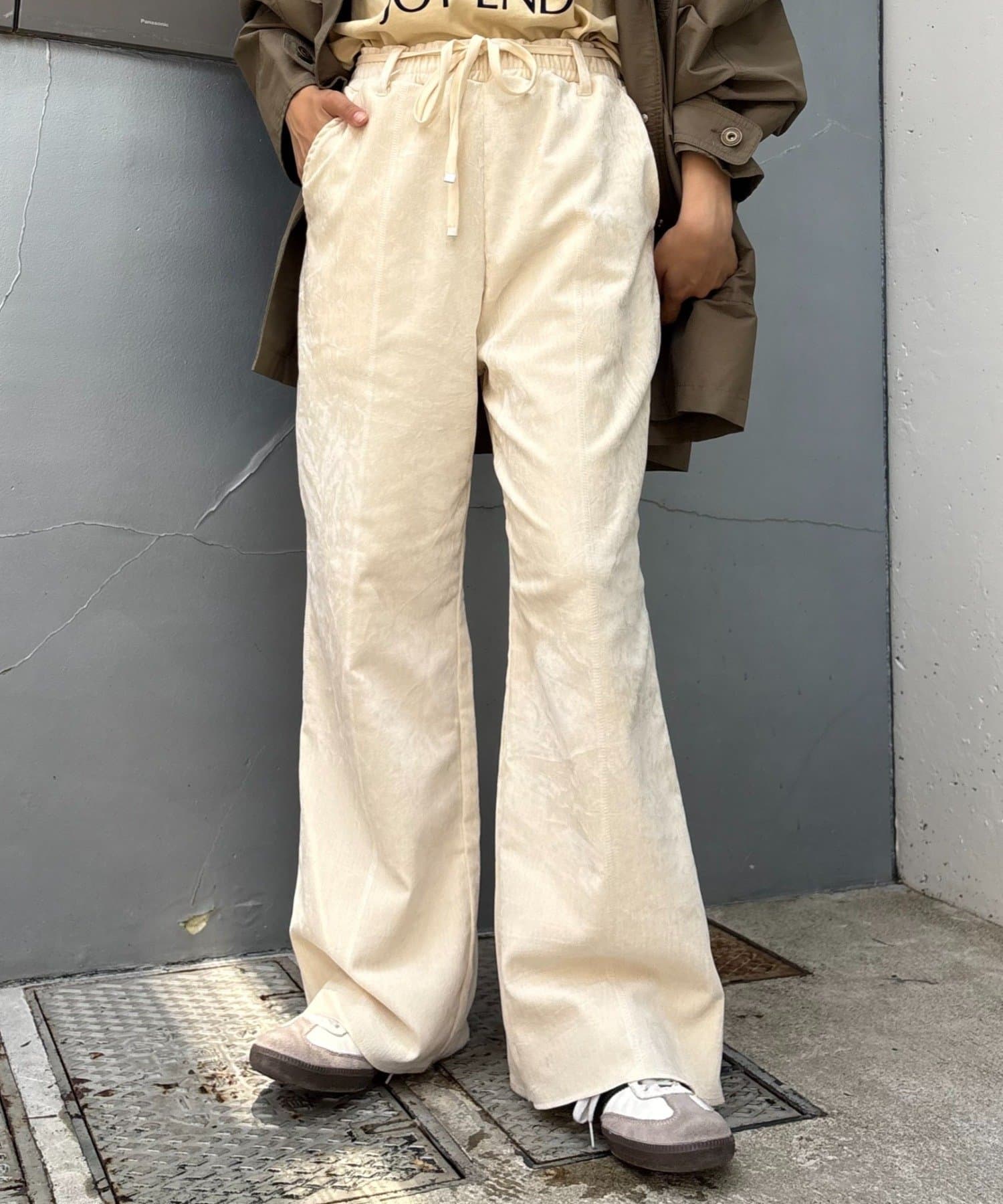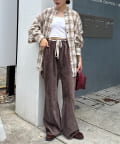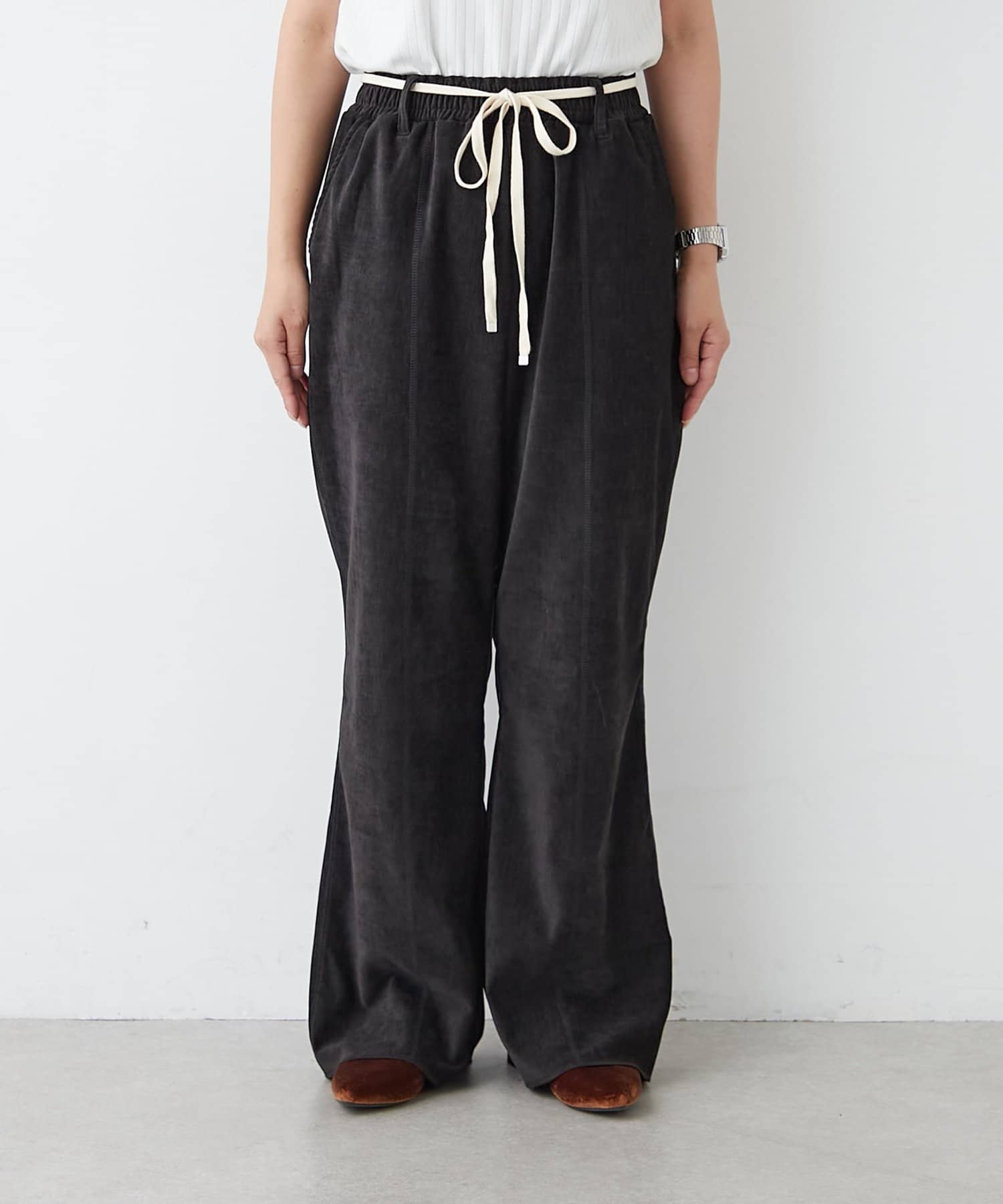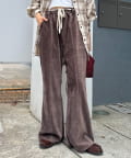 【スタイルアップ】紐ベルト付きベロアフレアパンツ