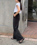 裾に向かって緩やかに広がるフレアシルエットは、脚長効果を高め、スタイルアップを叶えます。