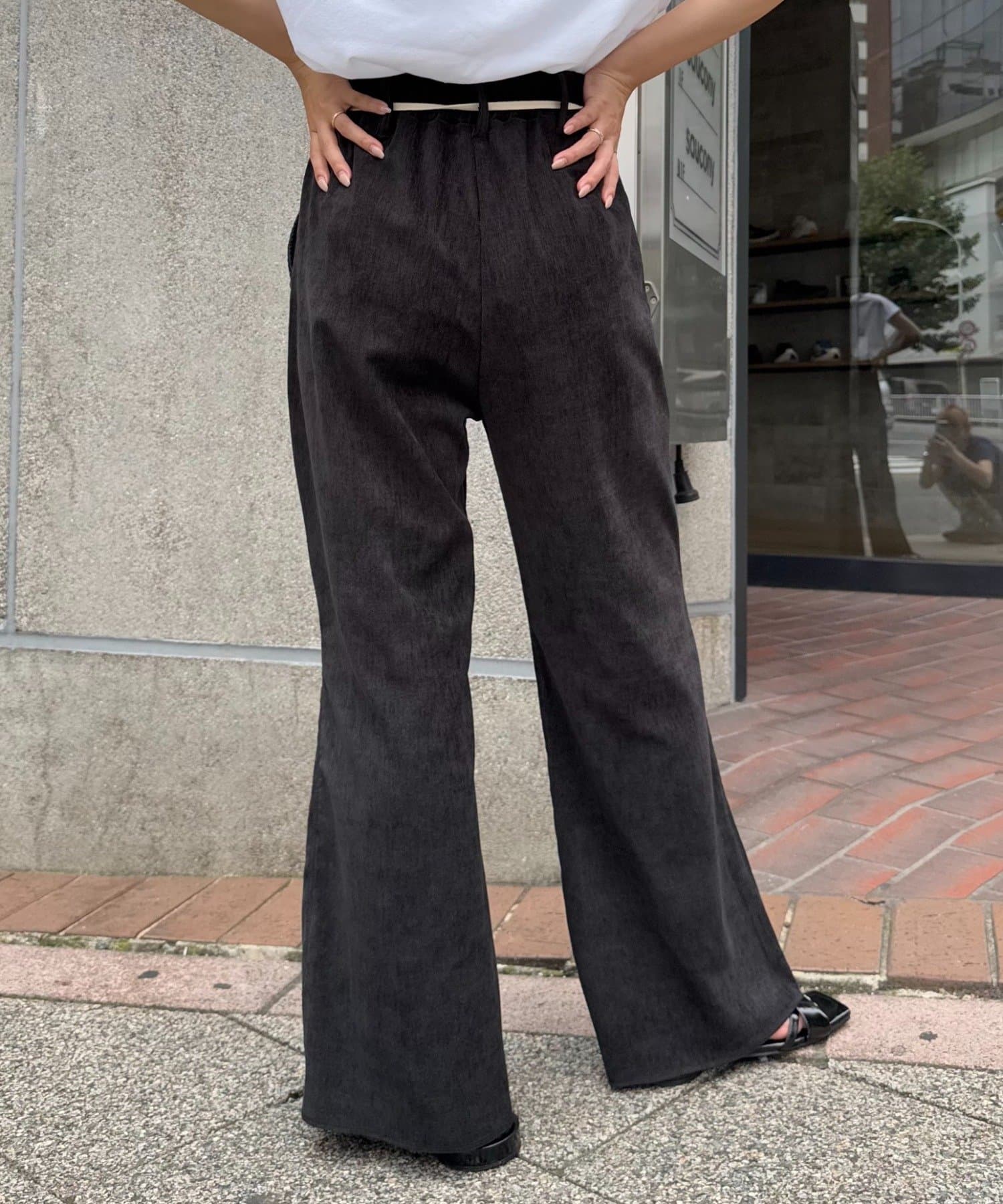 カジュアルでありながら、どこか上品さを感じさせるフレアパンツ。