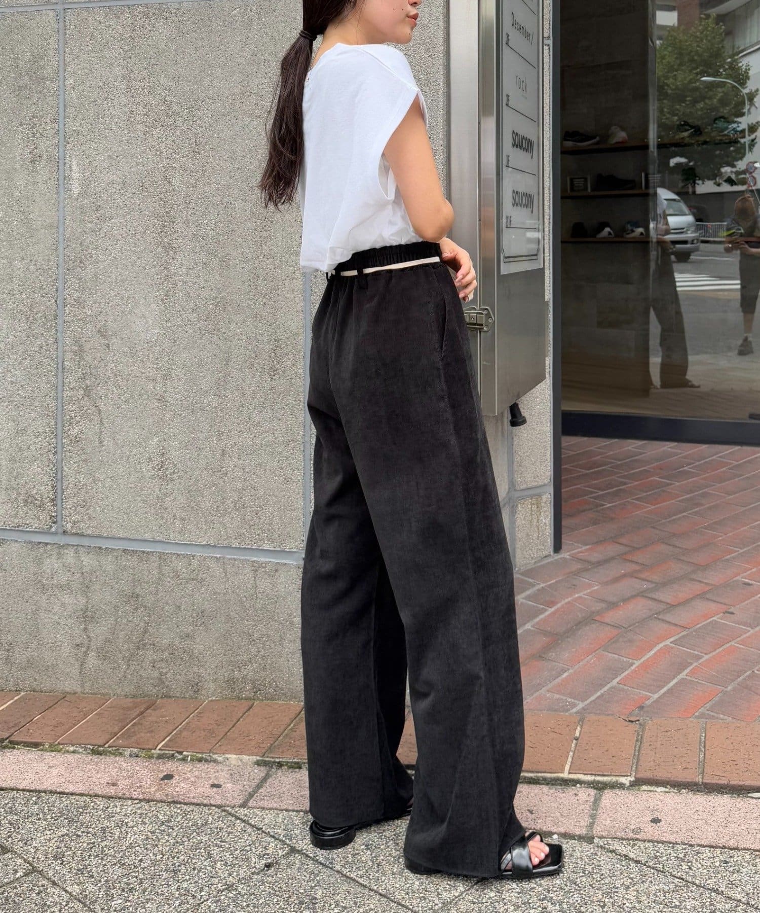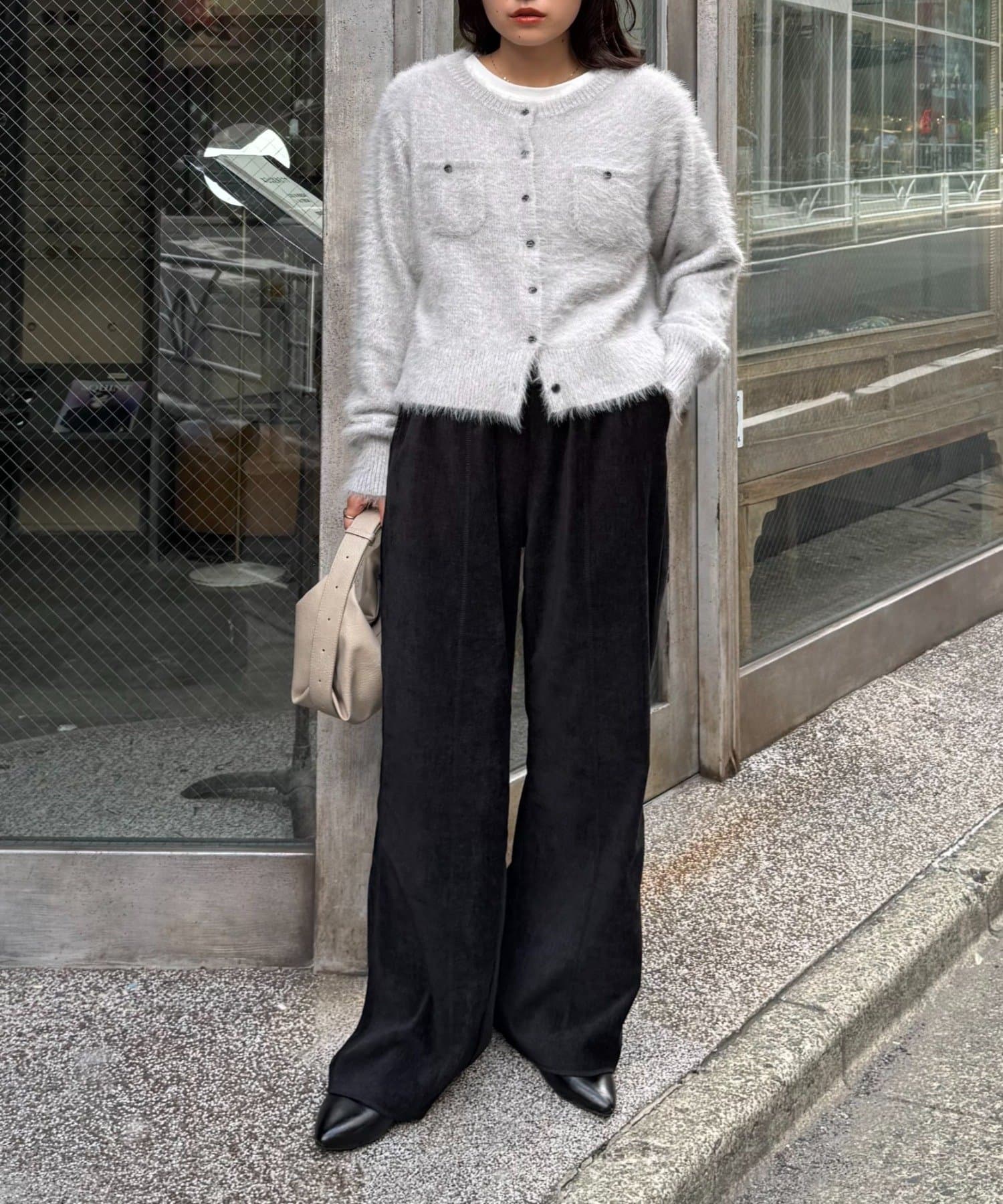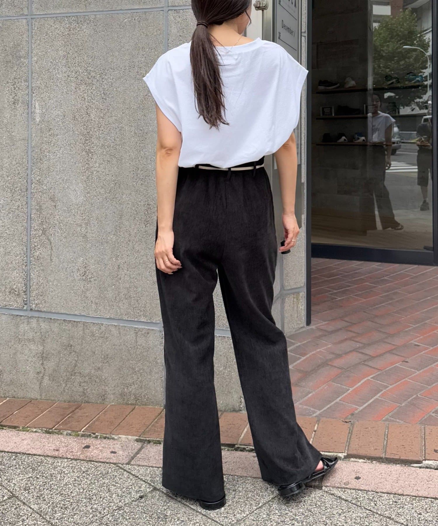 ブラウスやシャツと合わせて、きれいめなスタイリングにも。