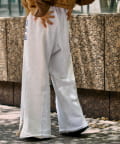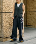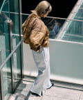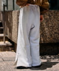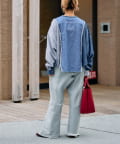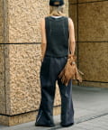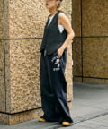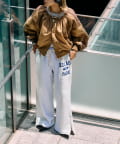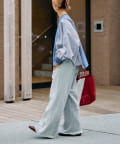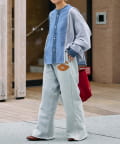 ゆったりとしたシルエットなので、トップスはインしてバランスを取るのが◎。