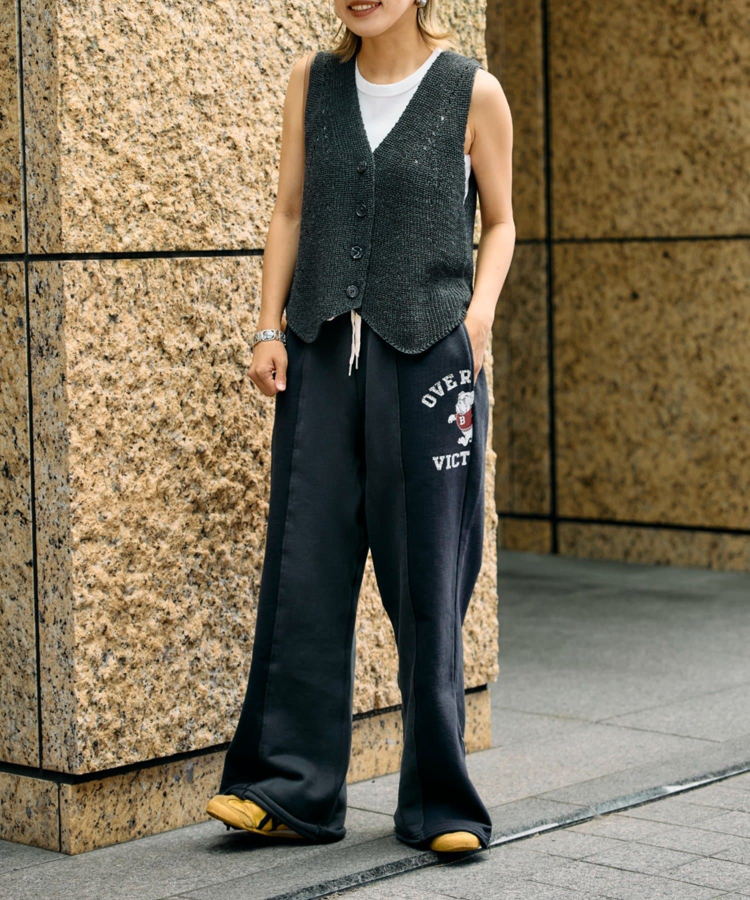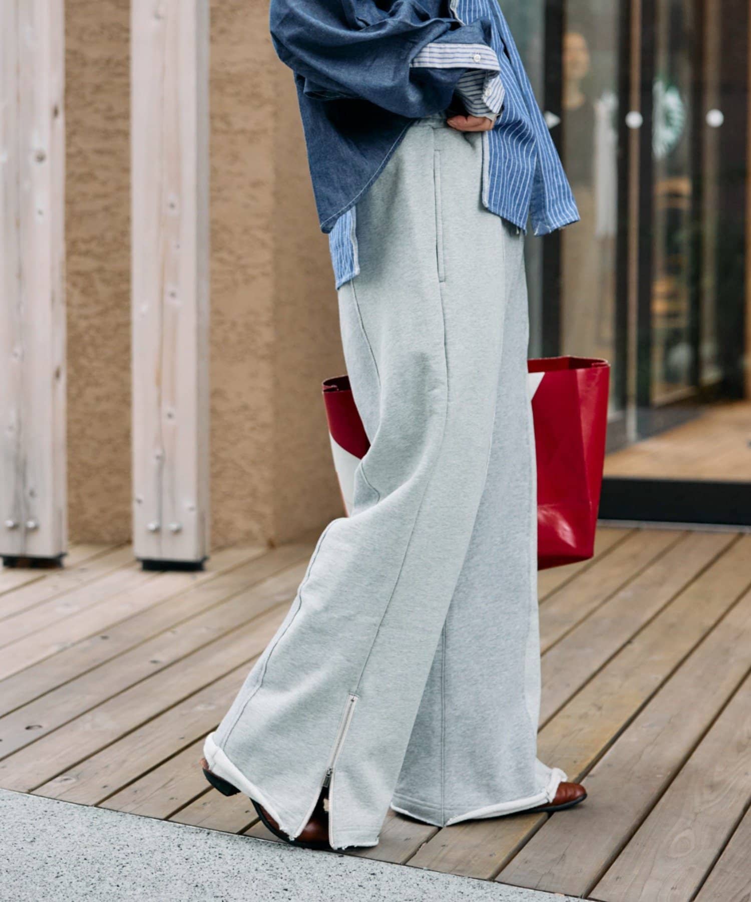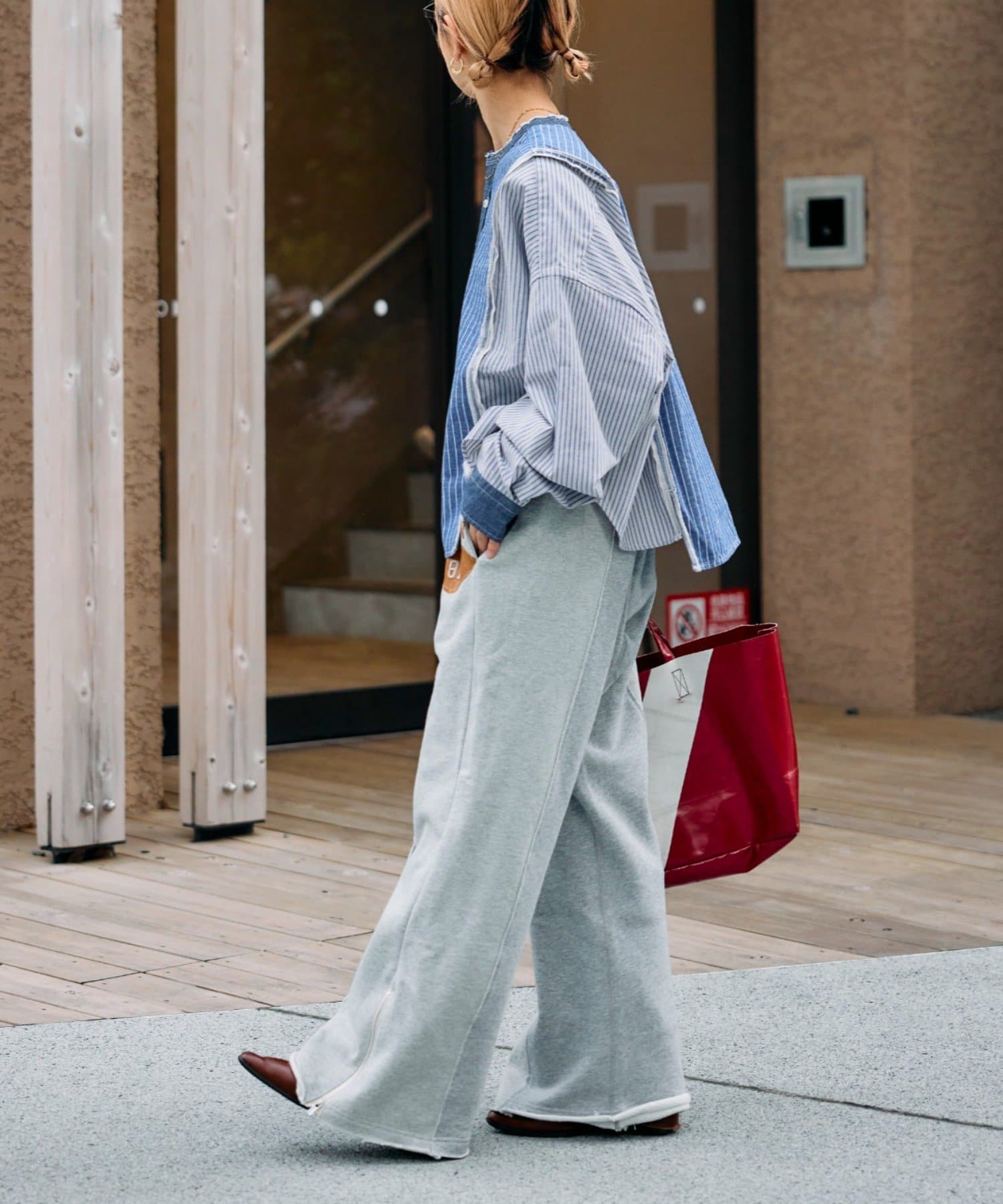 カジュアルなスウェットパンツは、あえてきれいめなアイテムと合わせるのがおすすめです。