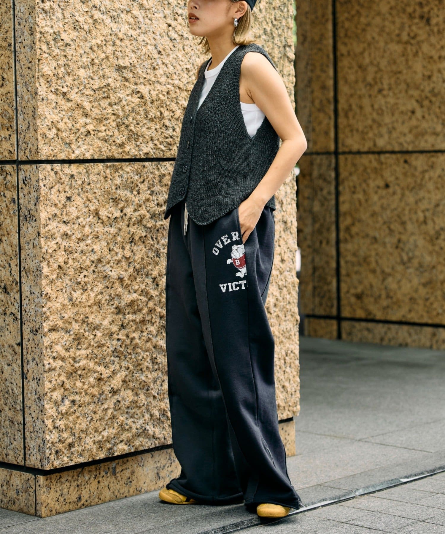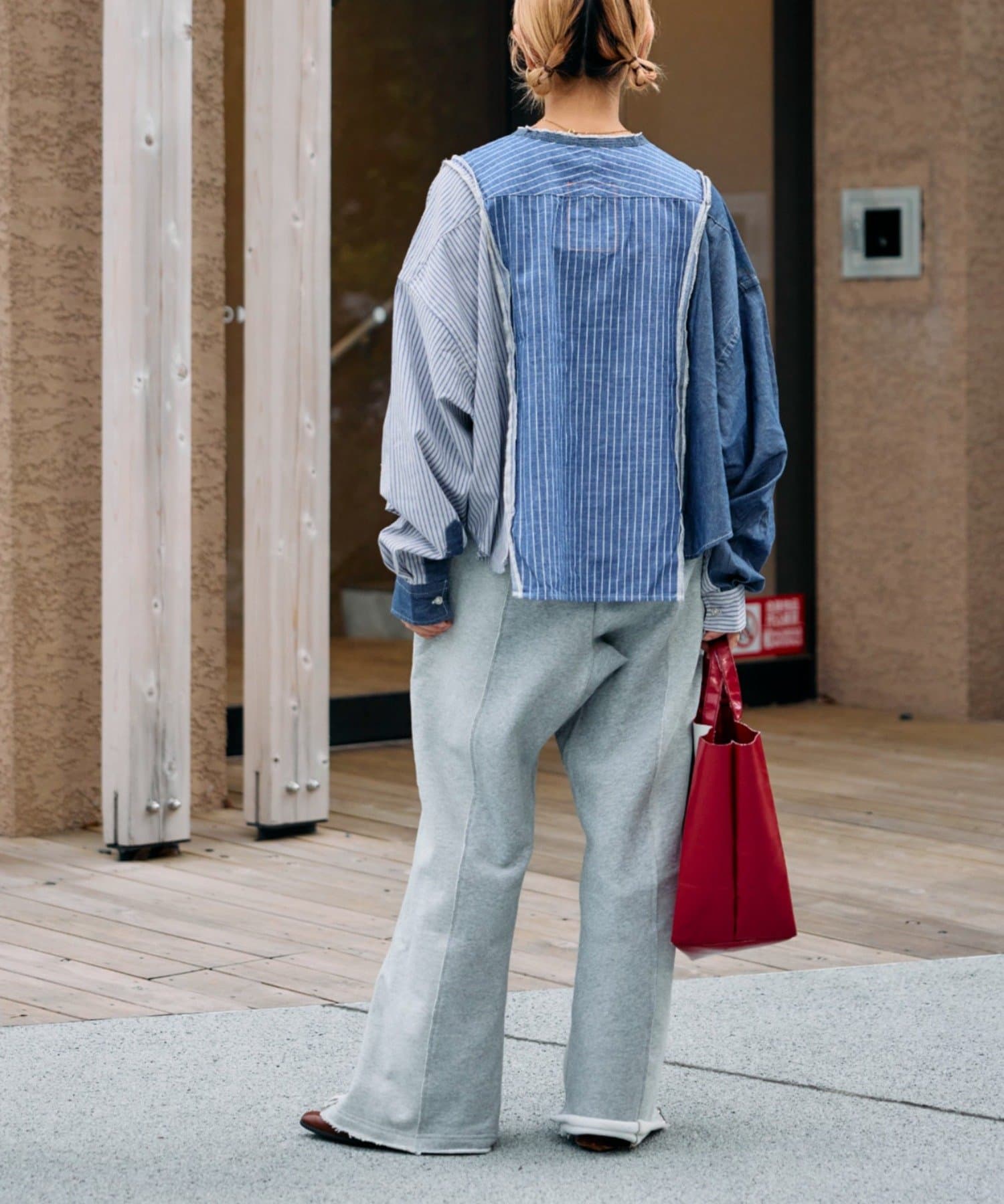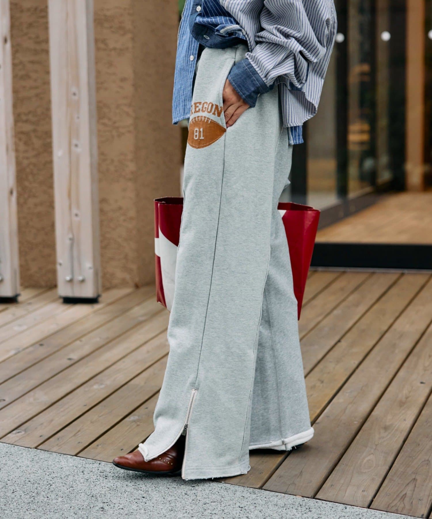 カジュアルなスウェットパンツは、あえてきれいめなアイテムと合わせるのがおすすめです。