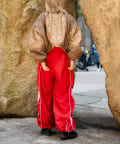 リラックス感のある素材ながらも、上品な光沢感がカジュアルさを抑え、きれいめな印象をプラス。