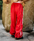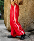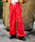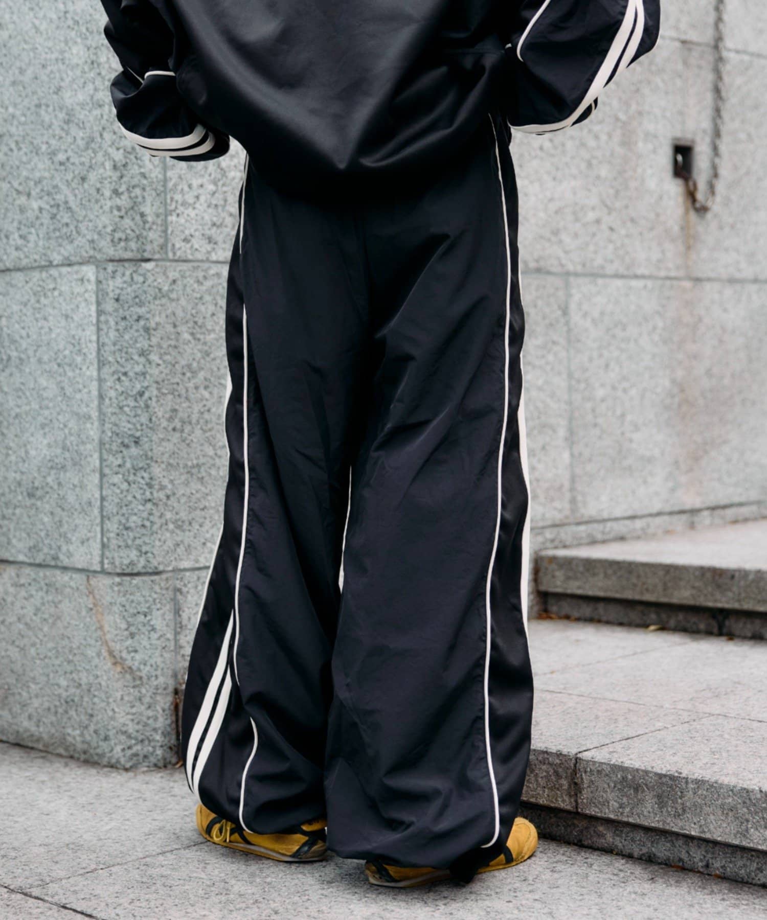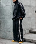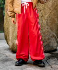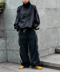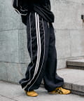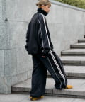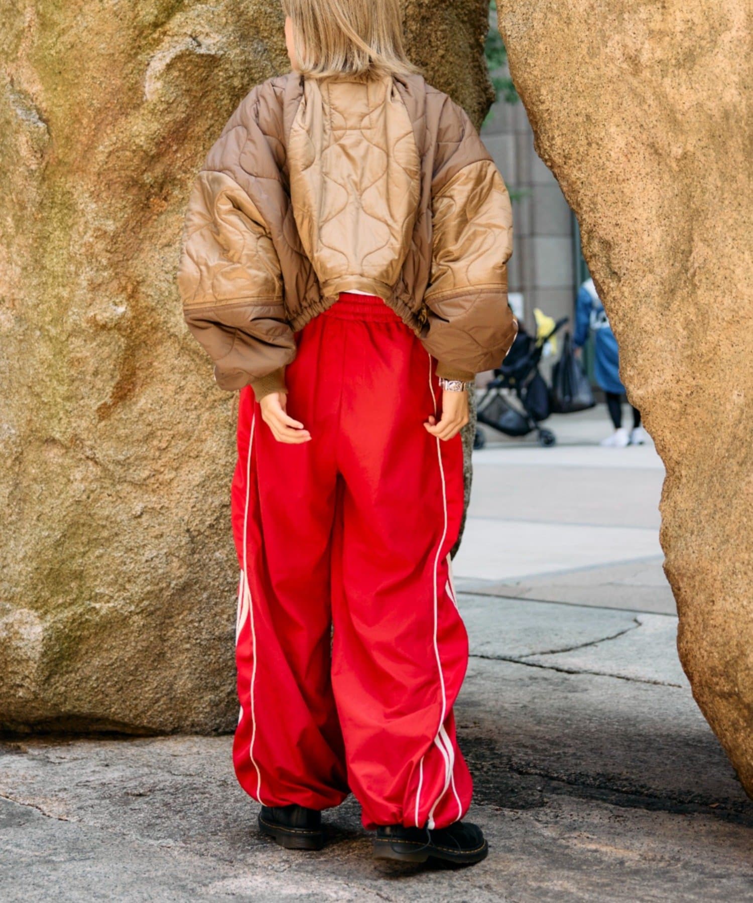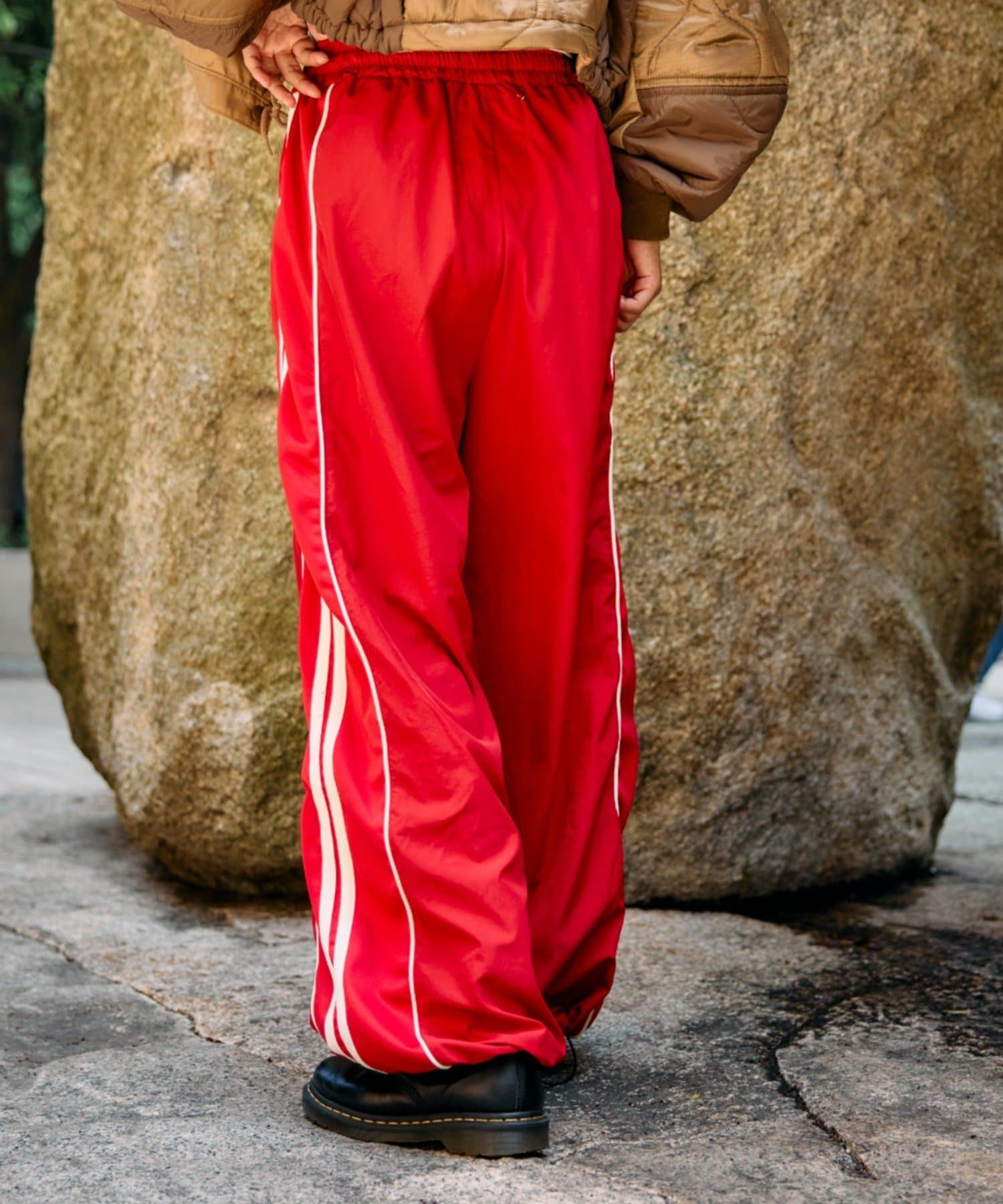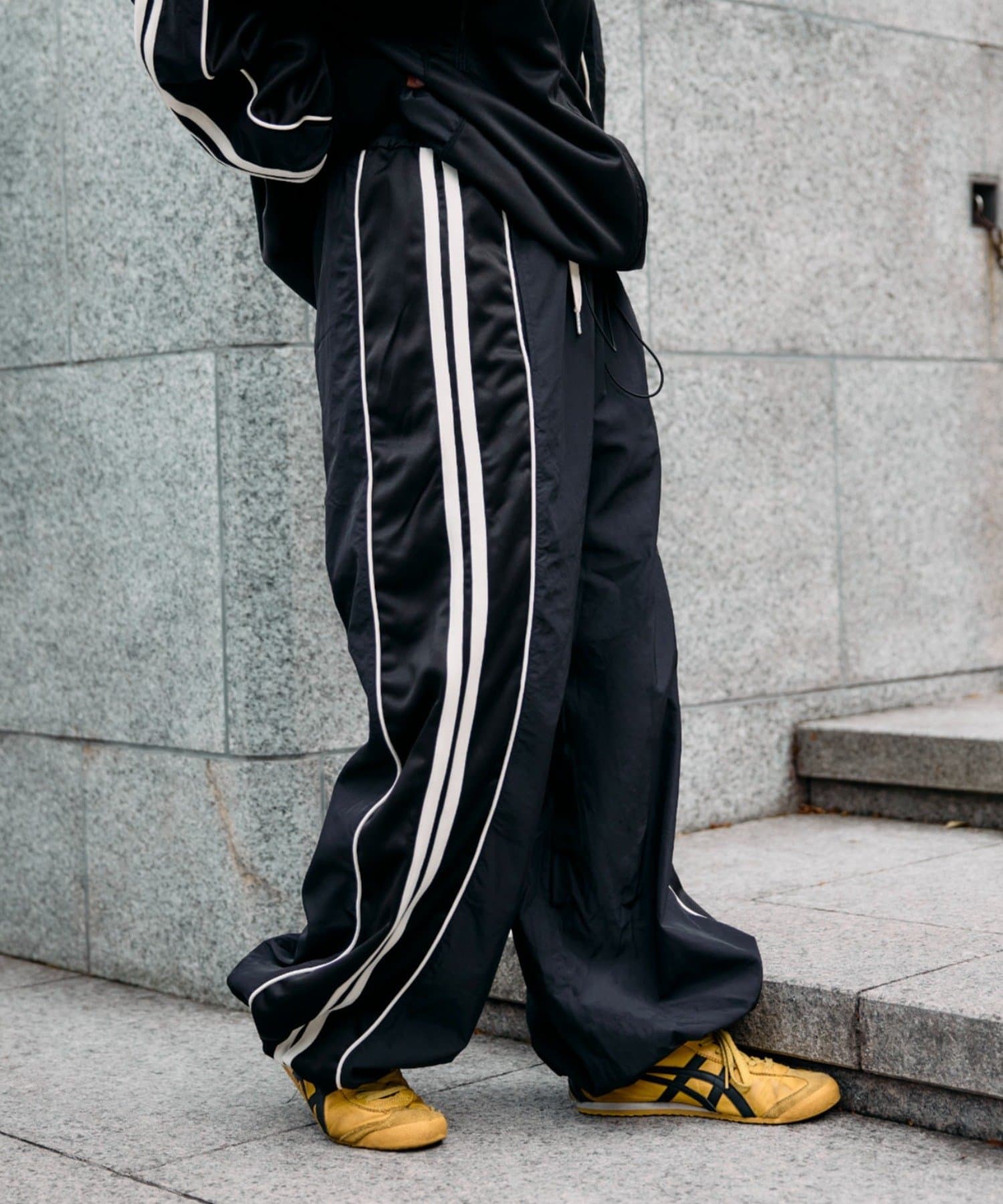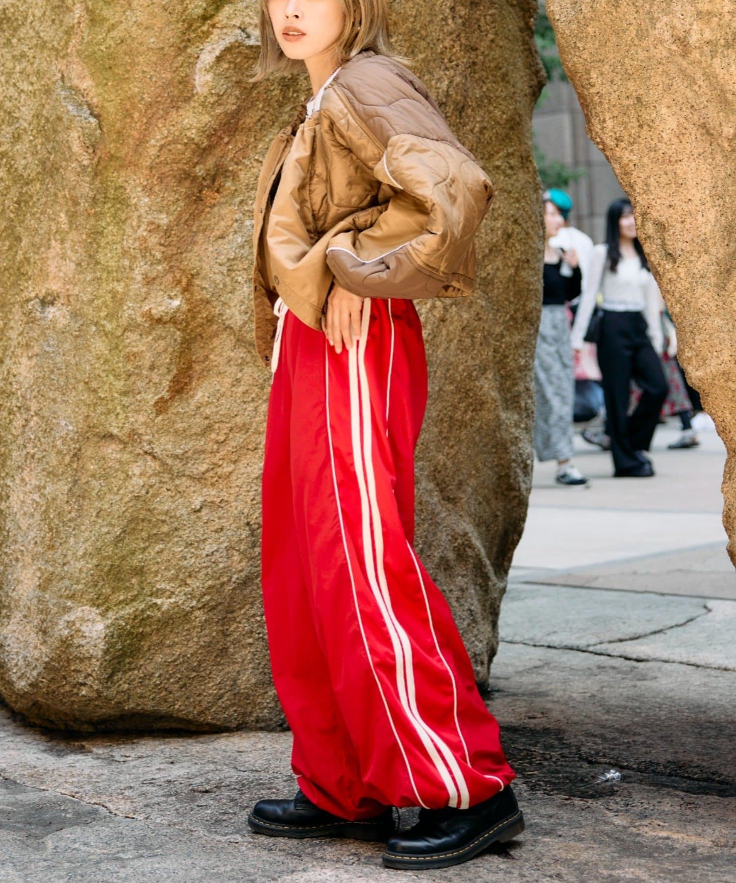 一見スポーティーな印象のサイドラインパンツですが、ワイドなシルエットと落ち着いたカラーリングで、大人の女性に似合う洗練された雰囲気に仕上がっています。