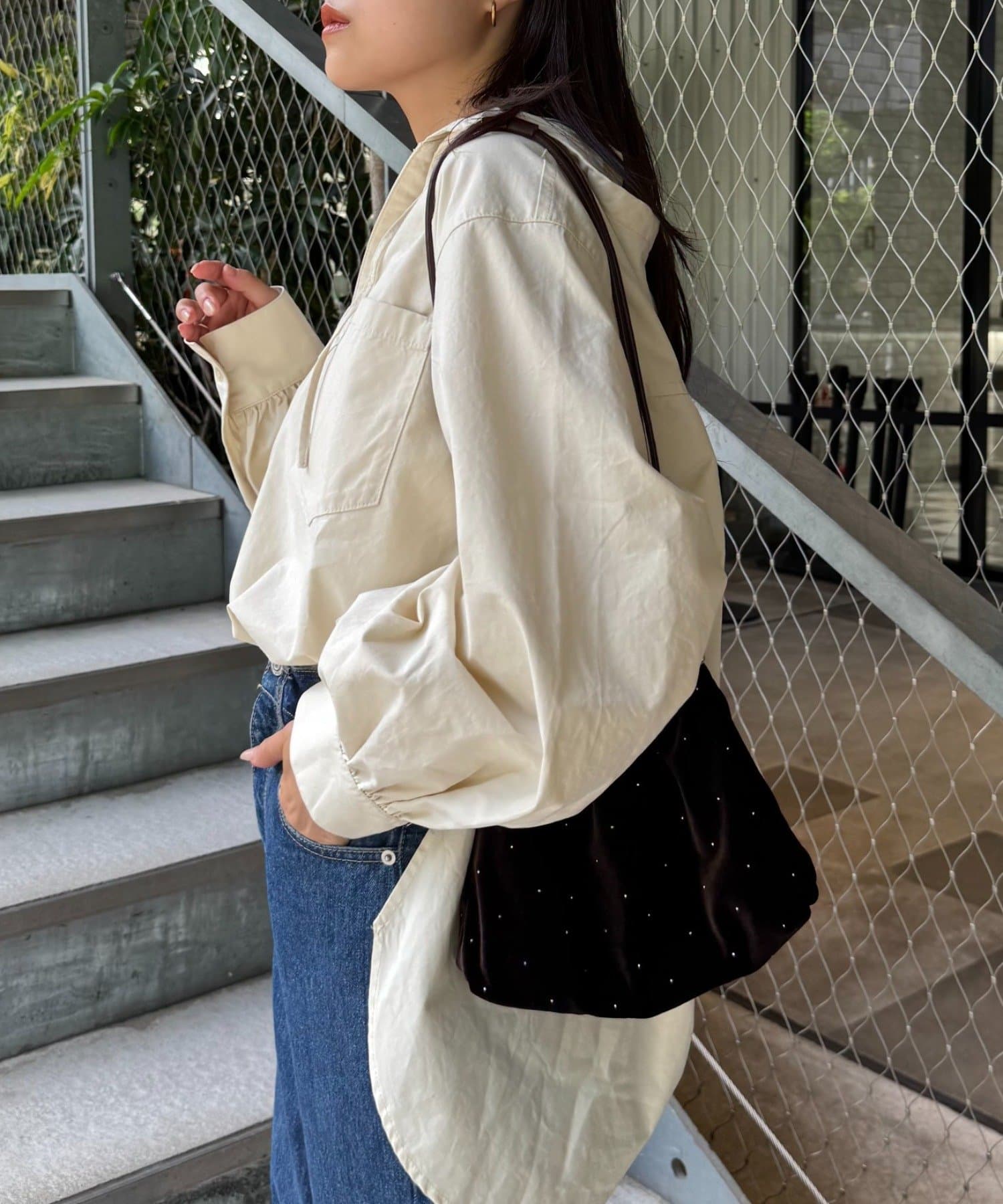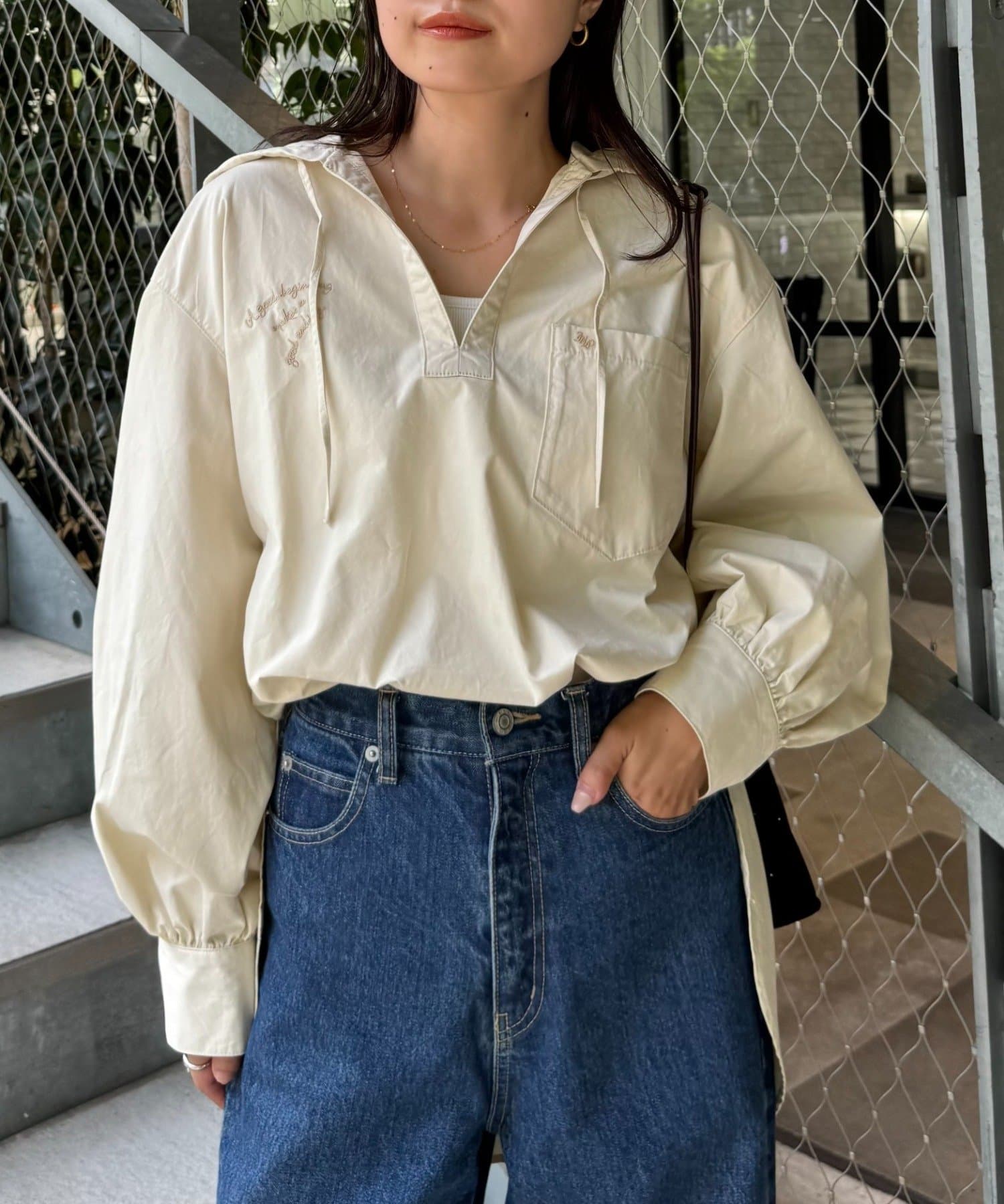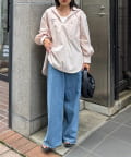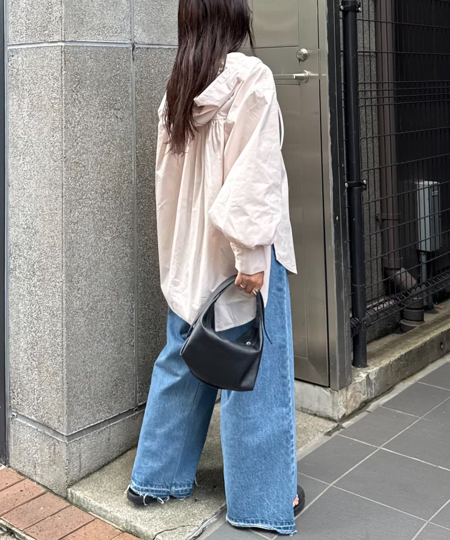 袖口のギャザーが、フェミニンな印象をプラスし、カジュアルながらも上品さを忘れないデザイン。