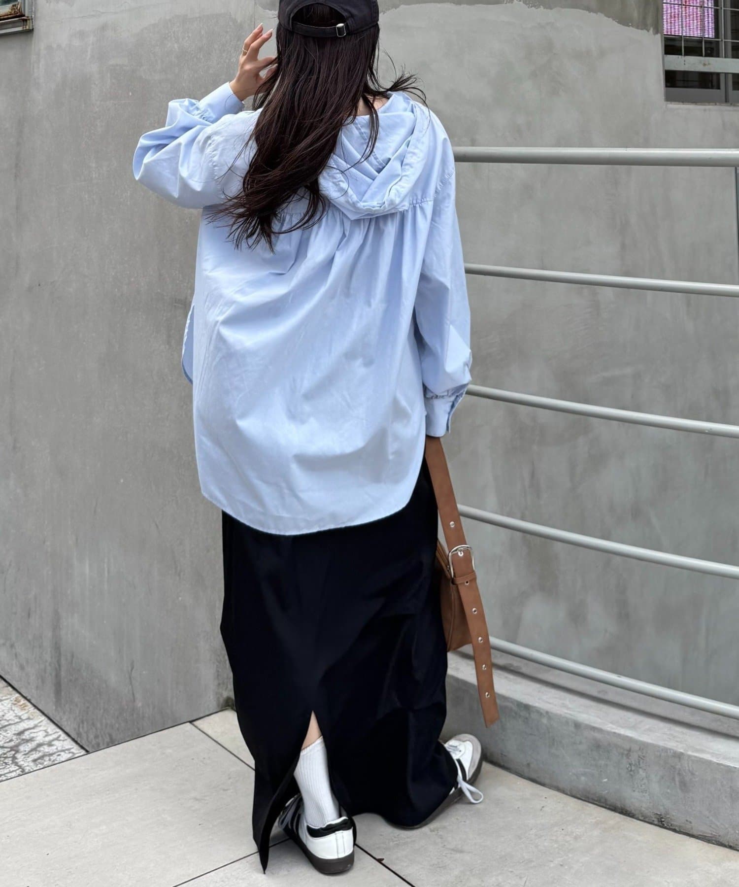カジュアルな着こなしから、きれいめなスタイリングまで、幅広いコーディネートが楽しめるフーディシャツ。