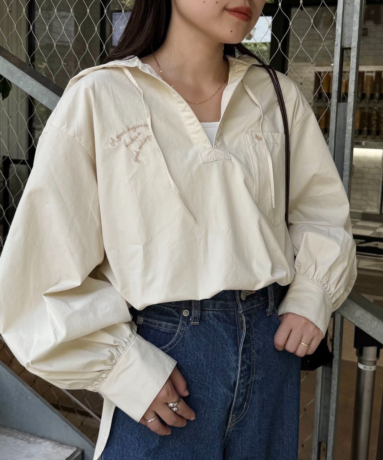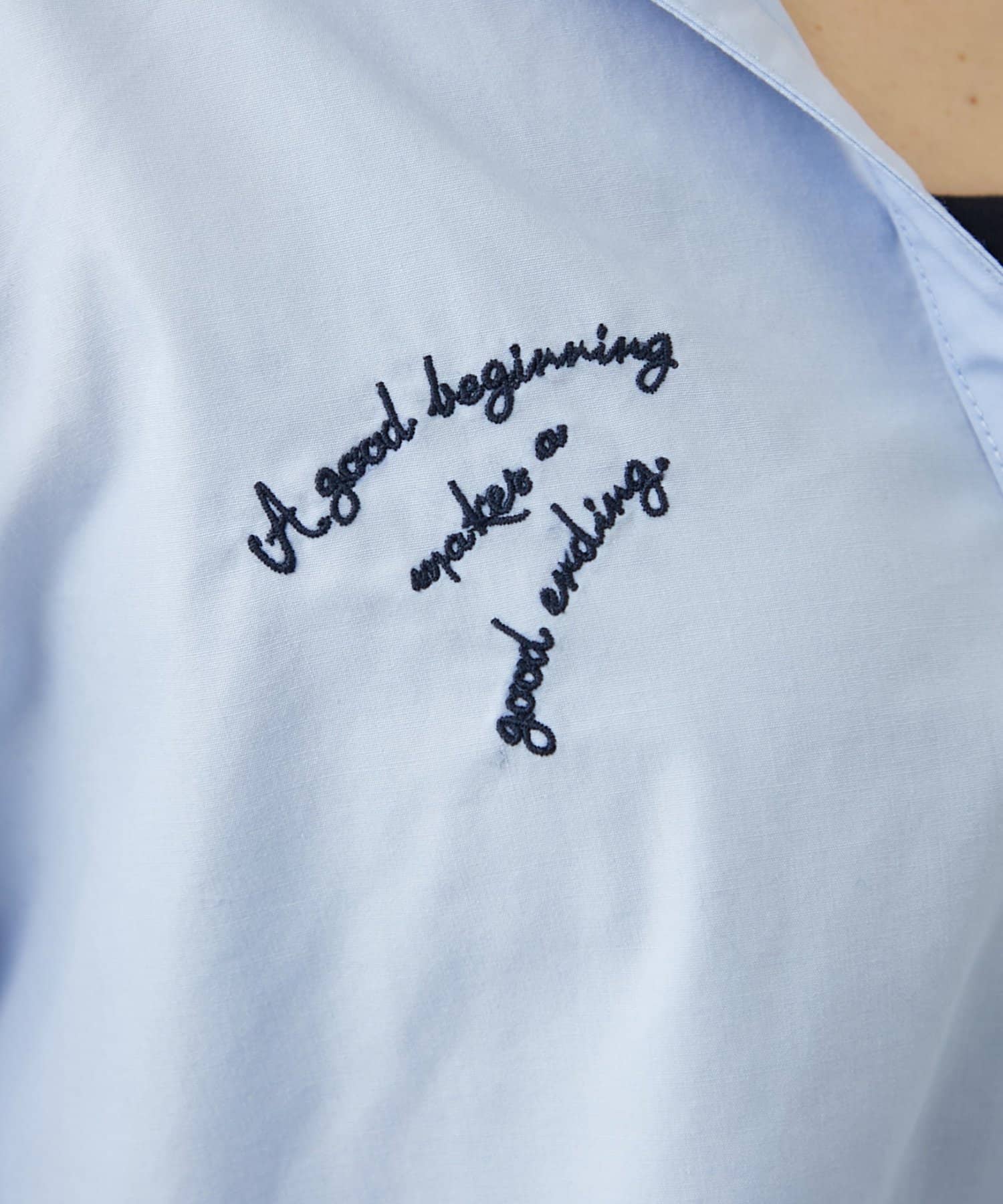 胸元のさりげない刺繍が、洗練された雰囲気をプラスします。