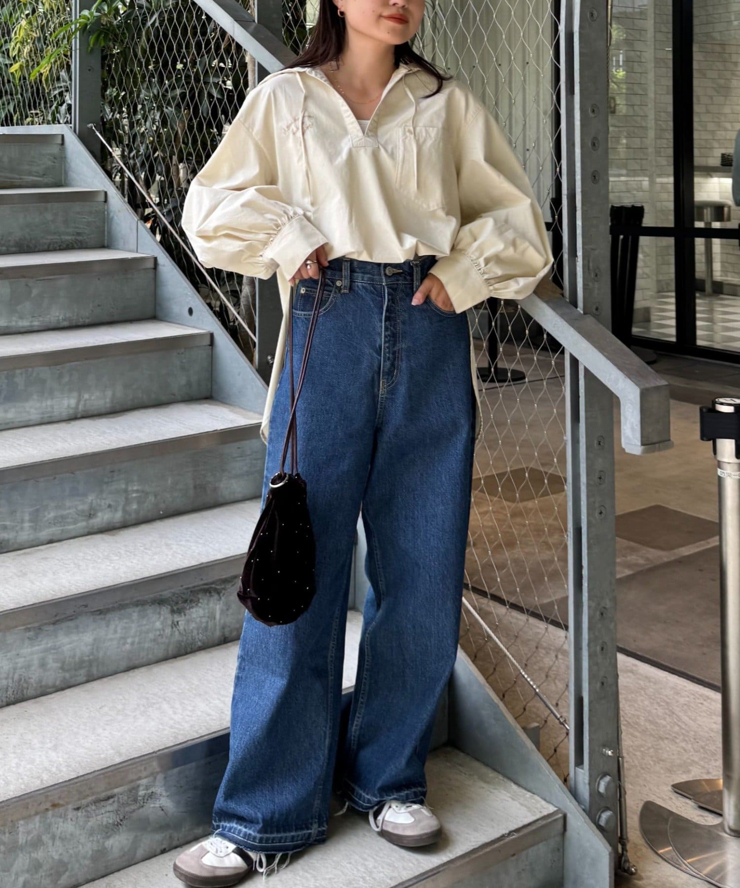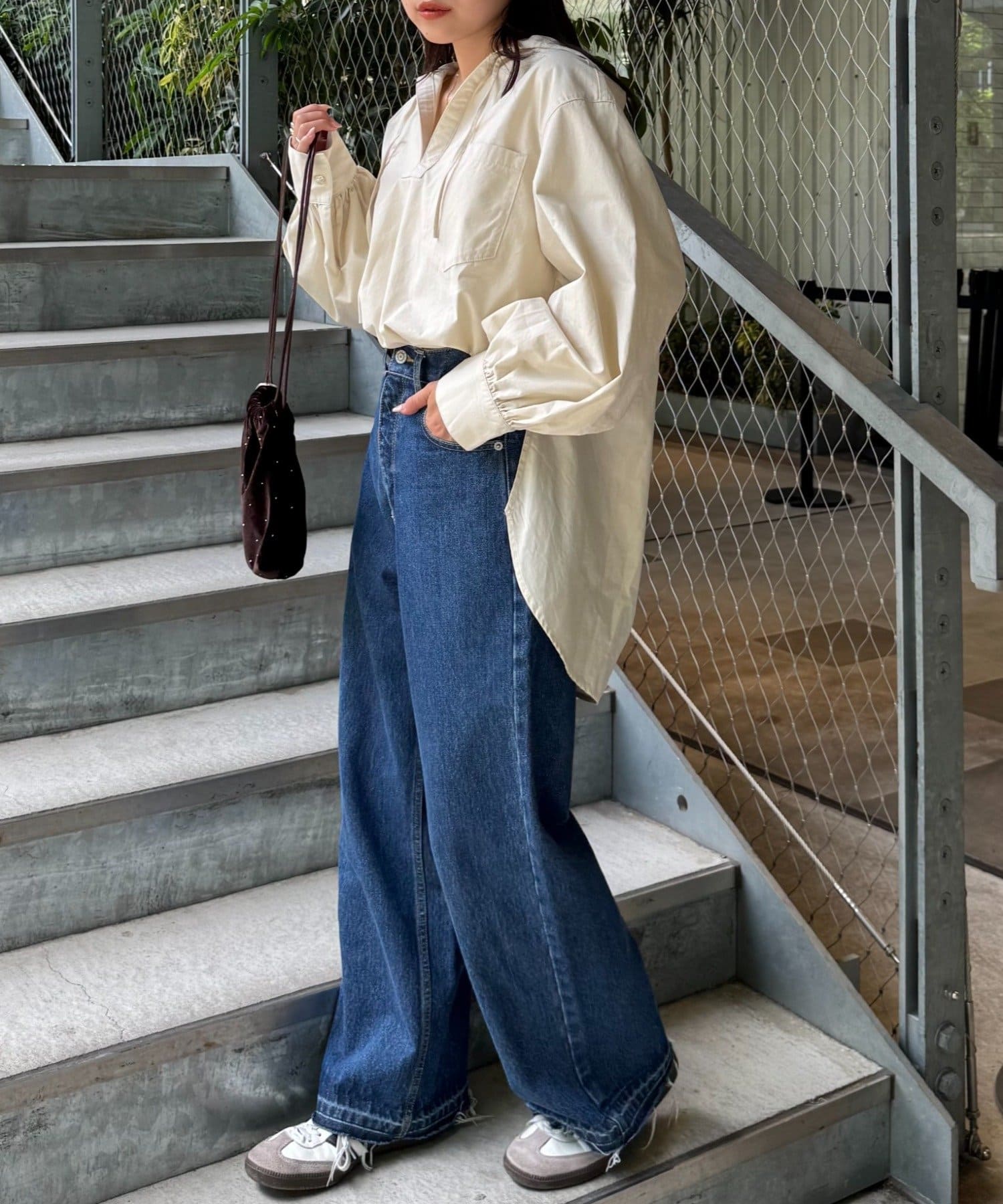 ゆったりとしたシルエットは、リラックス感がありながらも、計算された丈感でスタイルアップ効果も期待できます。