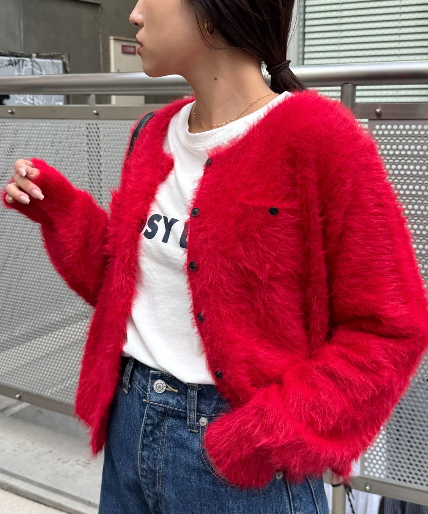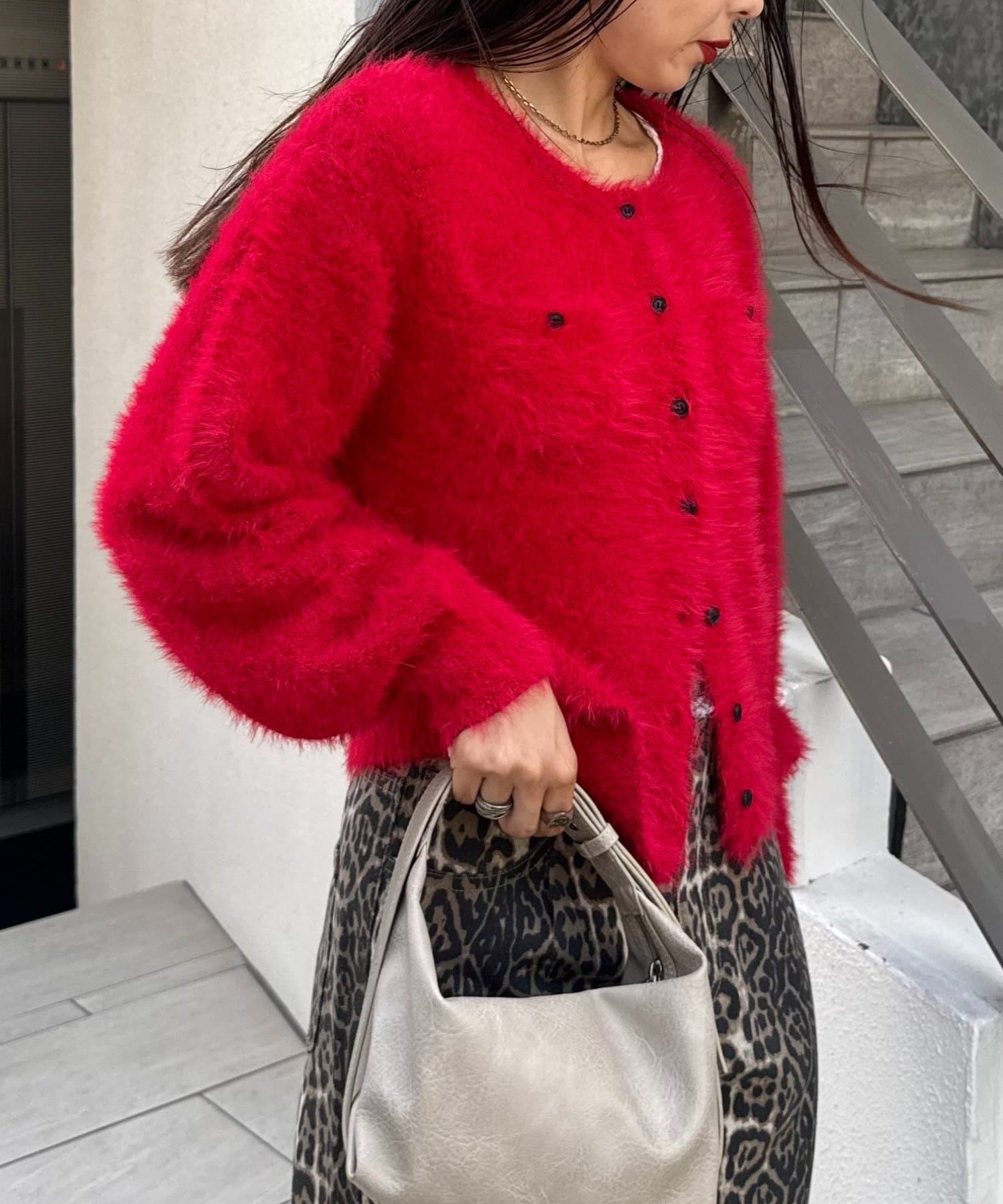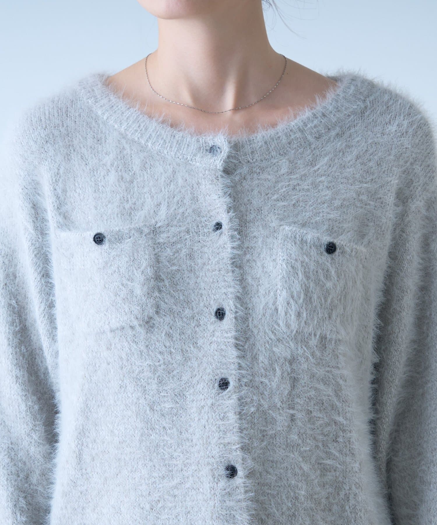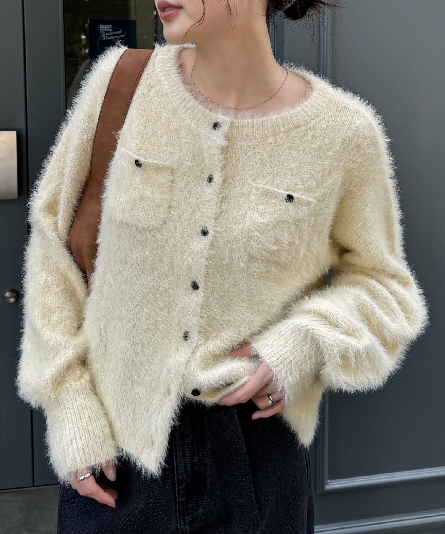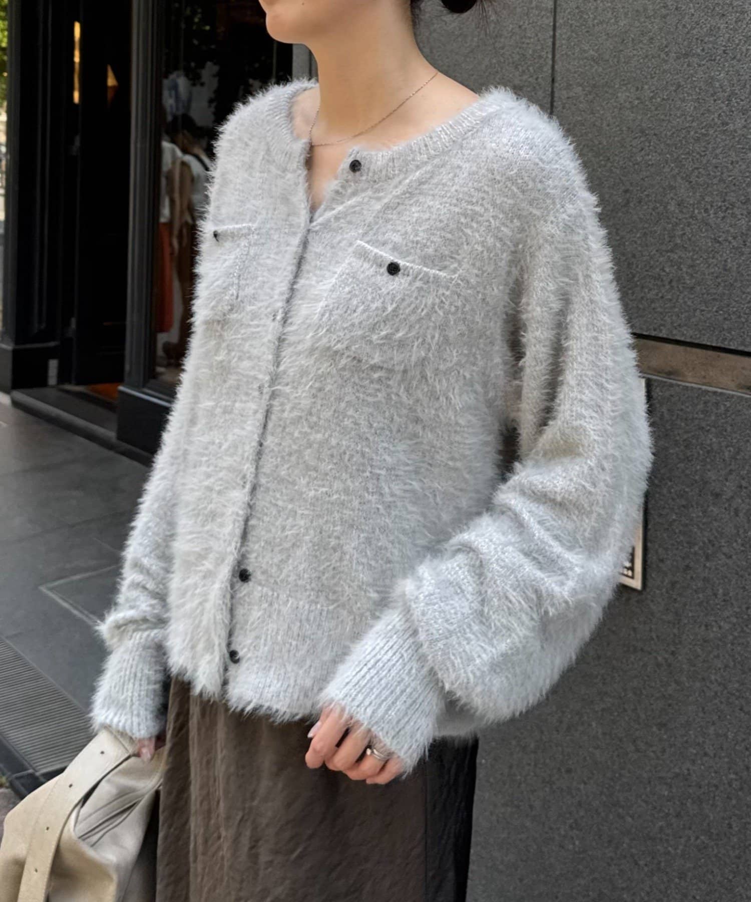 まるでカシミヤのような、ふわふわと柔らかな風合いが魅力のシャギーニットカーディガン。