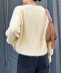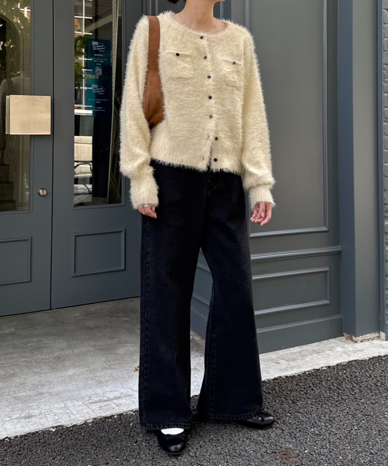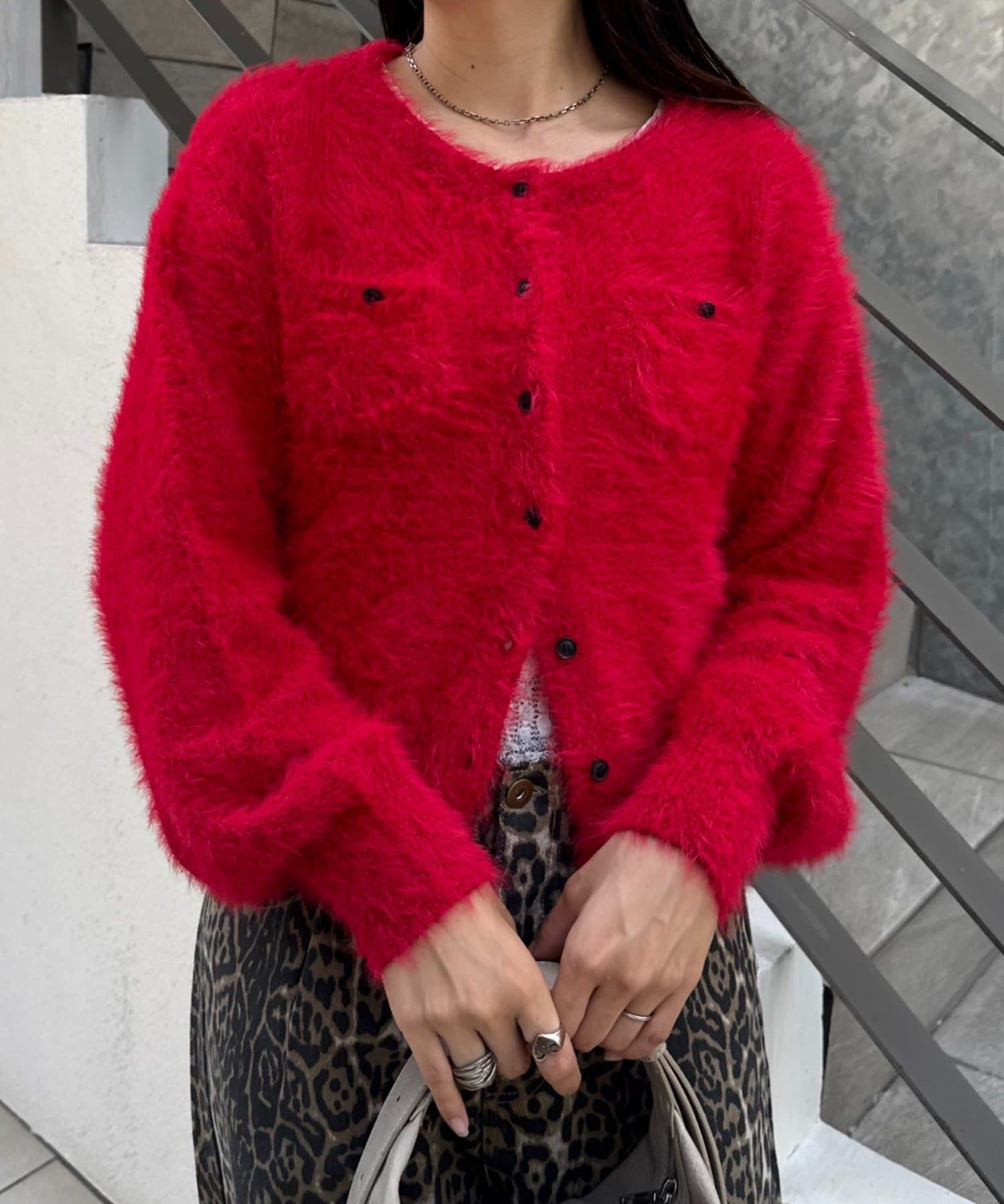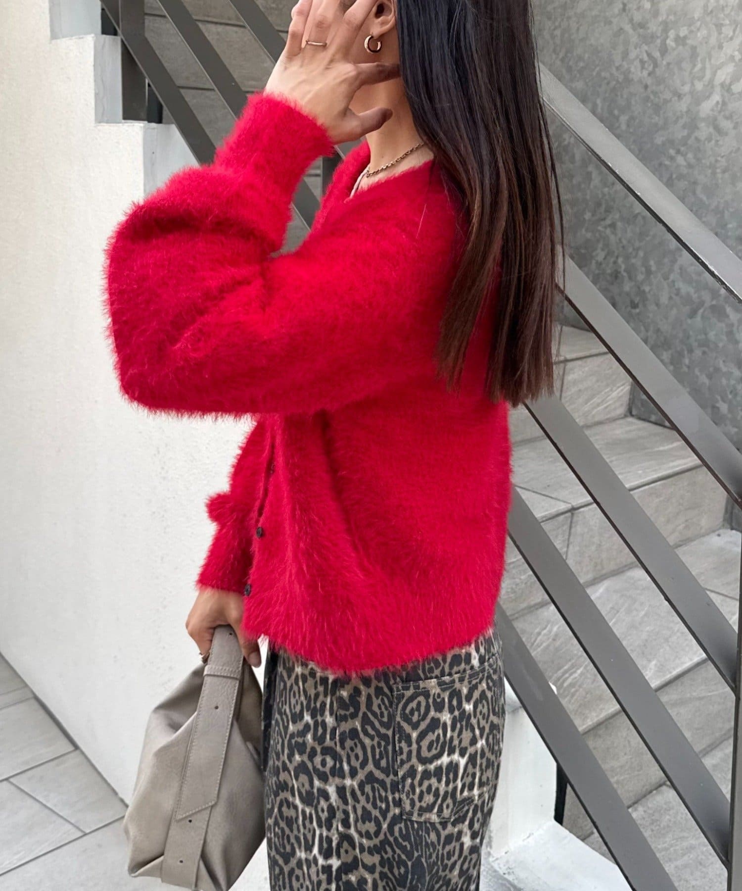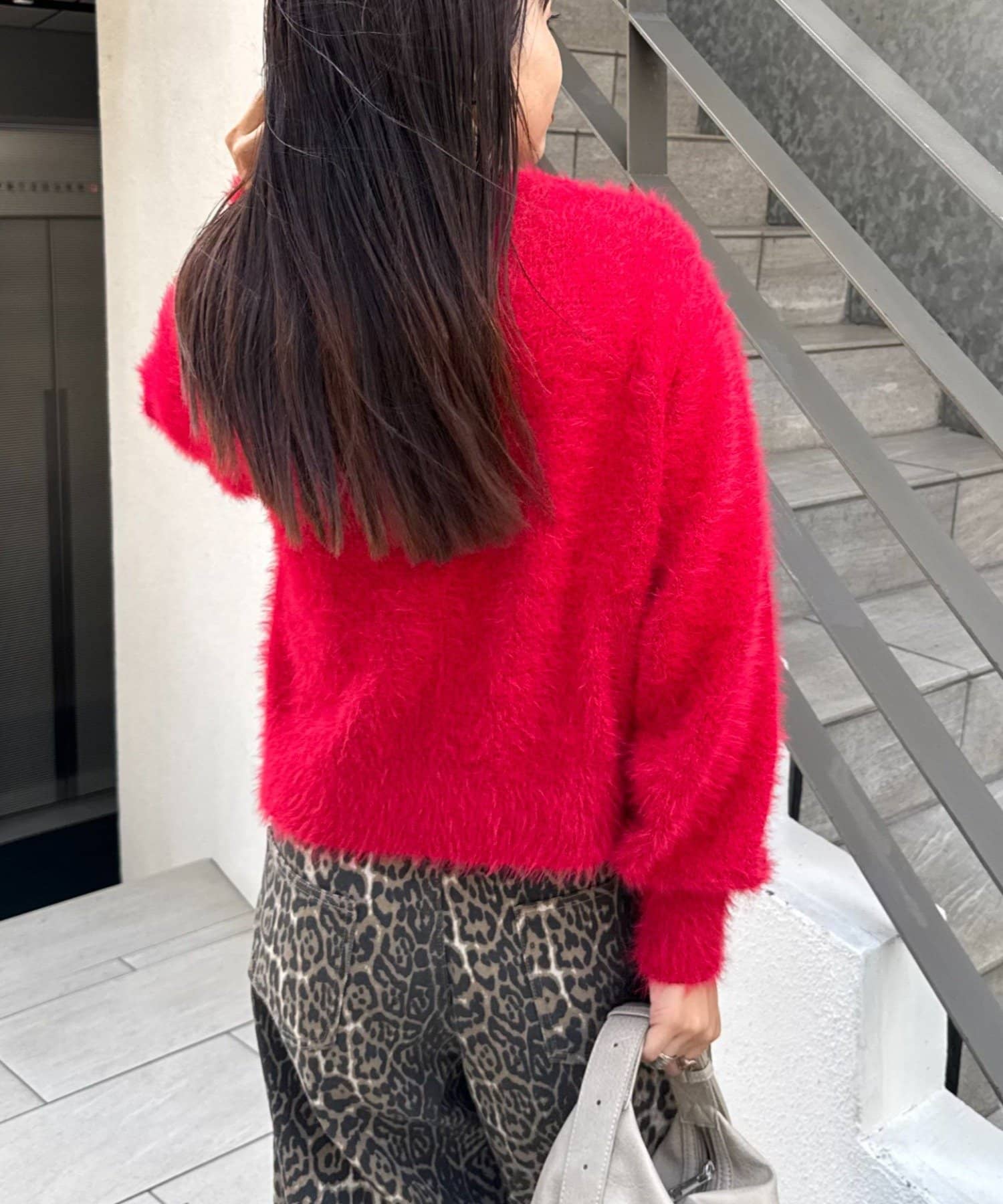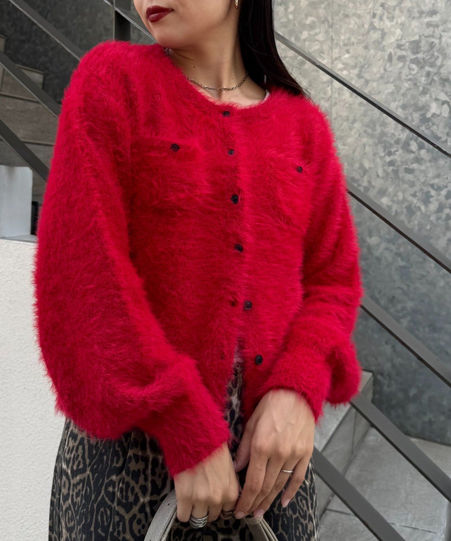 まるでカシミヤのような、ふわふわと柔らかな風合いが魅力のシャギーニットカーディガン。