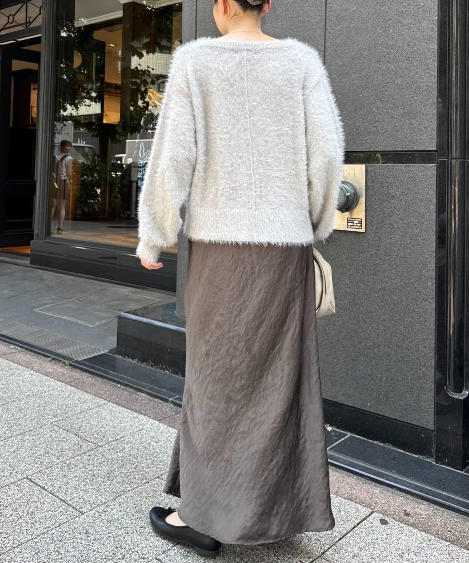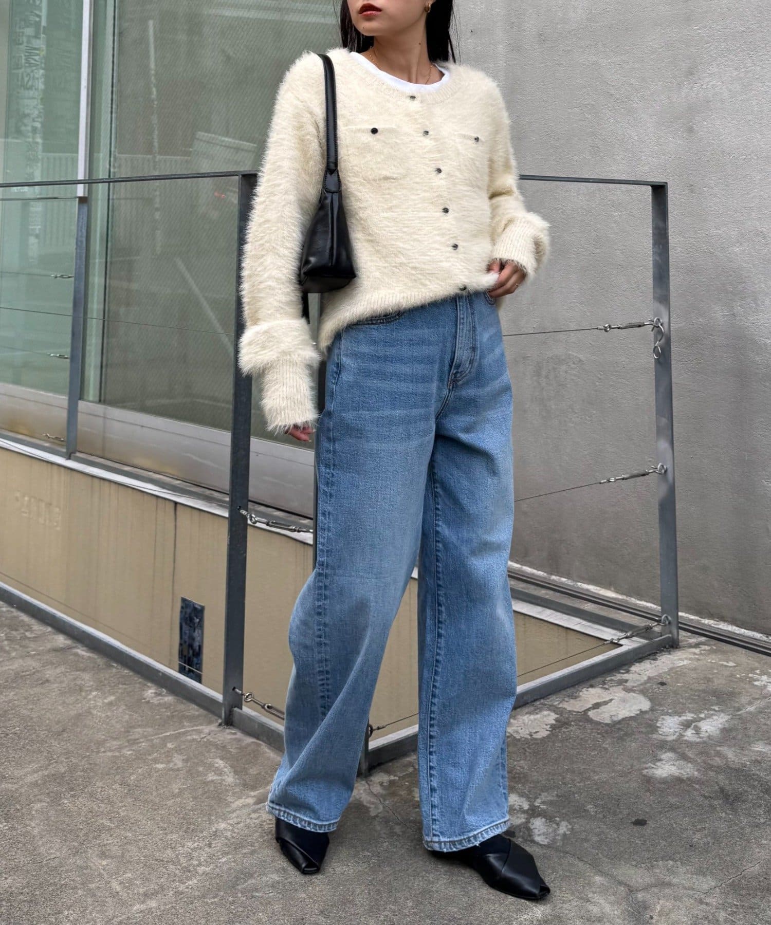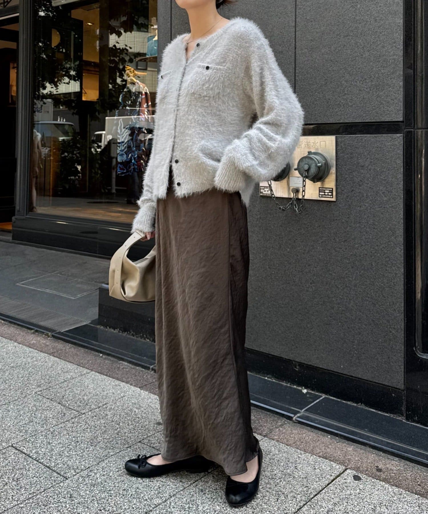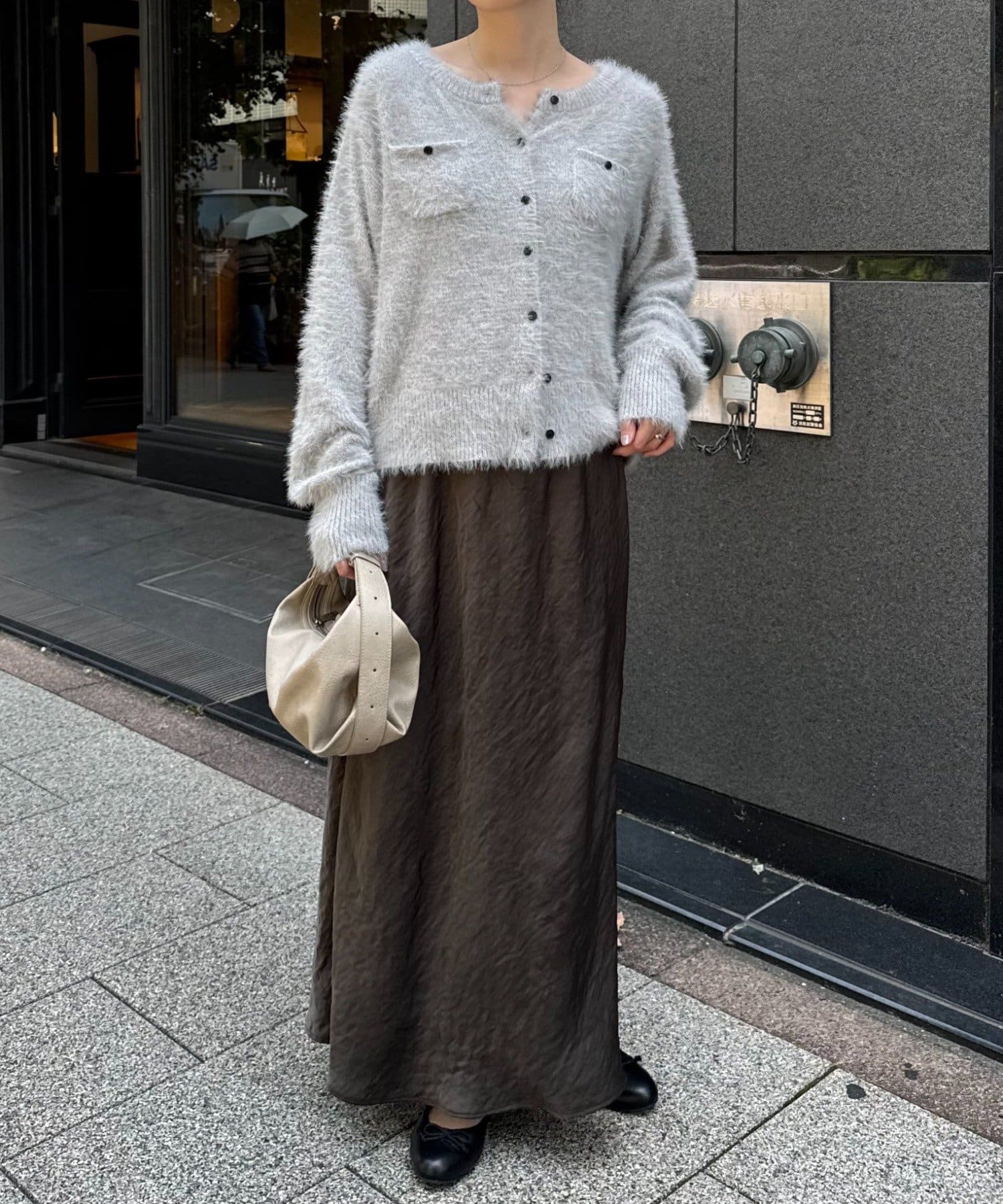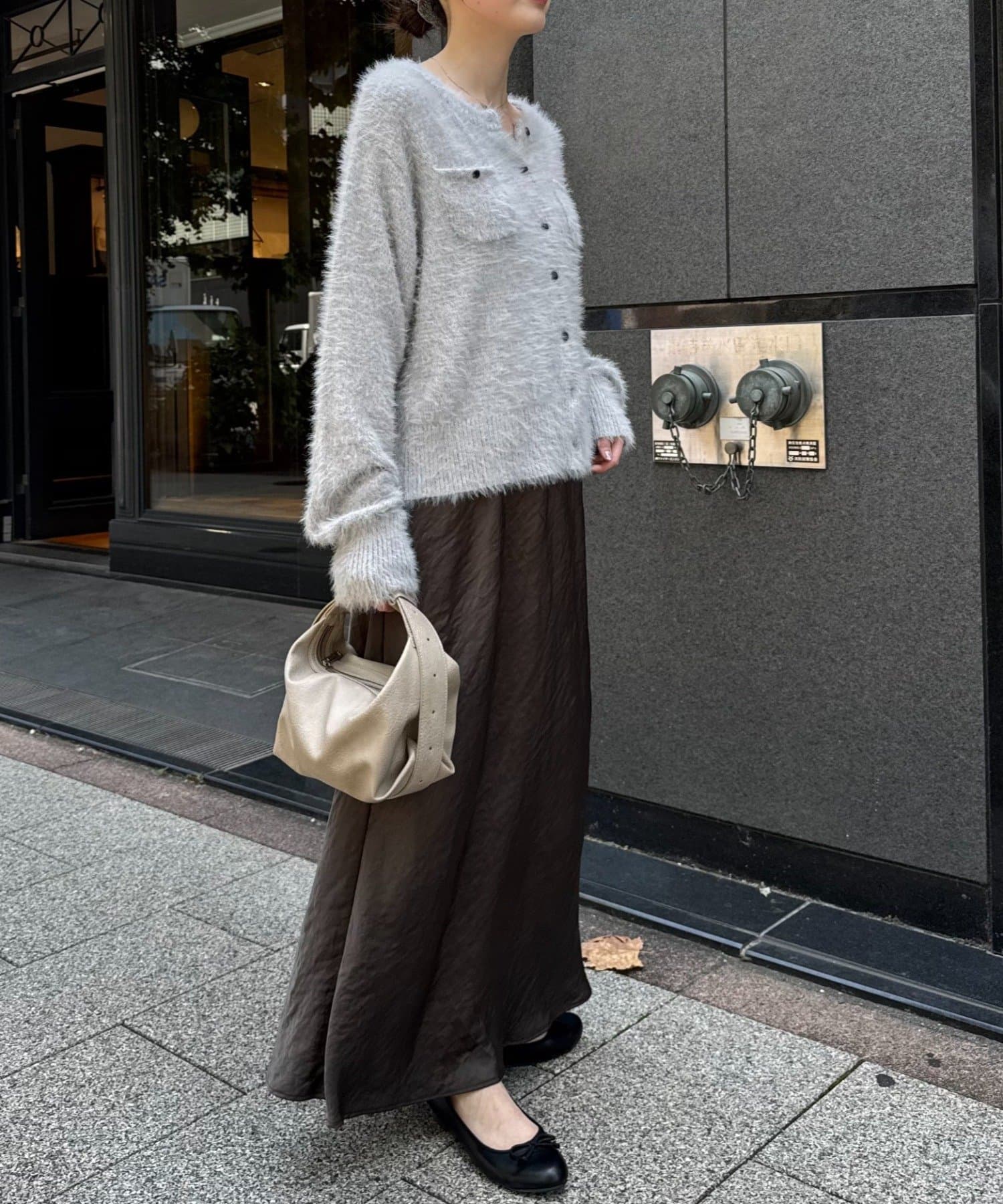 まるでカシミヤのような、ふわふわと柔らかな風合いが魅力のシャギーニットカーディガン。