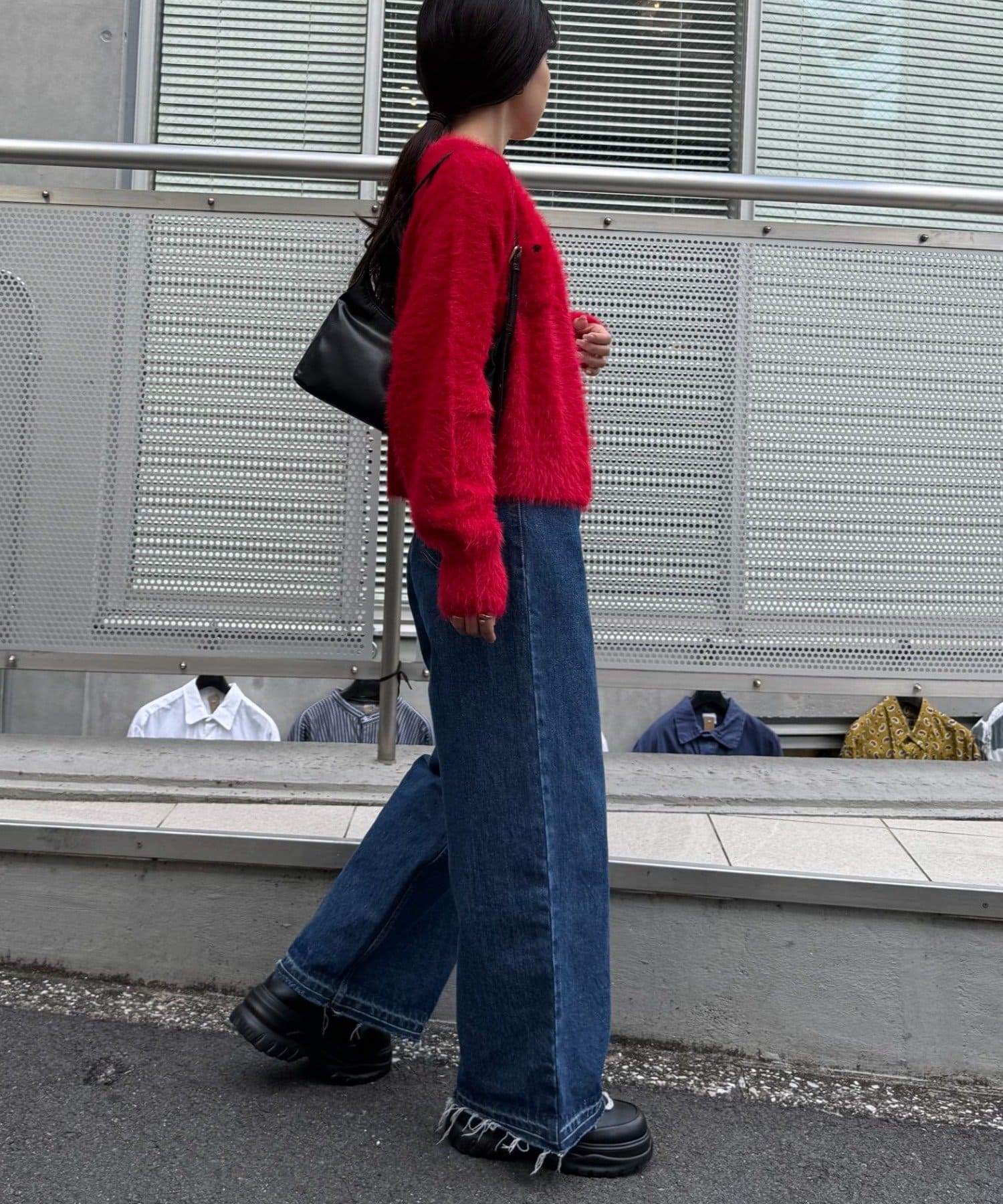 デニムやワイドパンツと合わせてカジュアルに、タイトスカートやワンピースと合わせて上品にと、ボトムスを選ばない着回し力の高さも魅力。