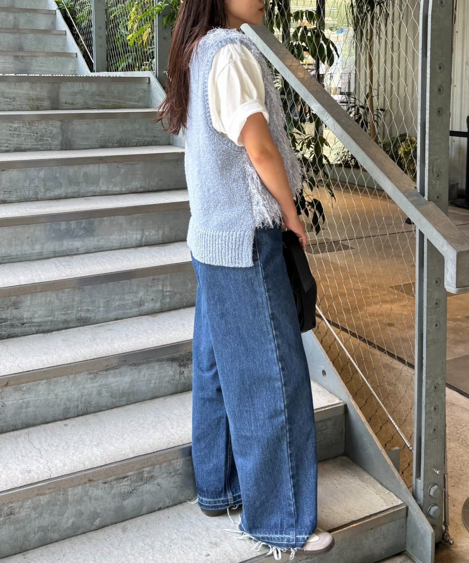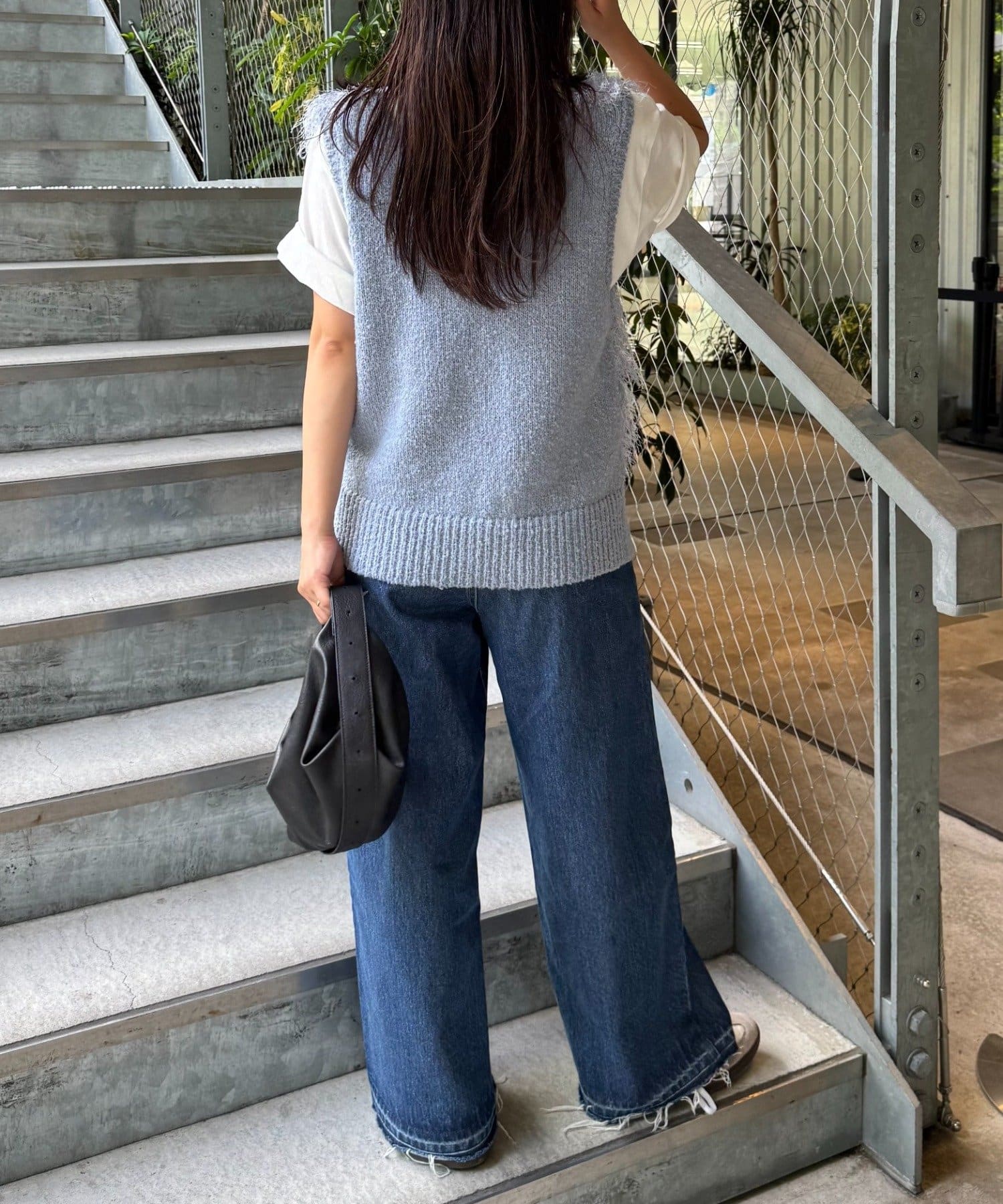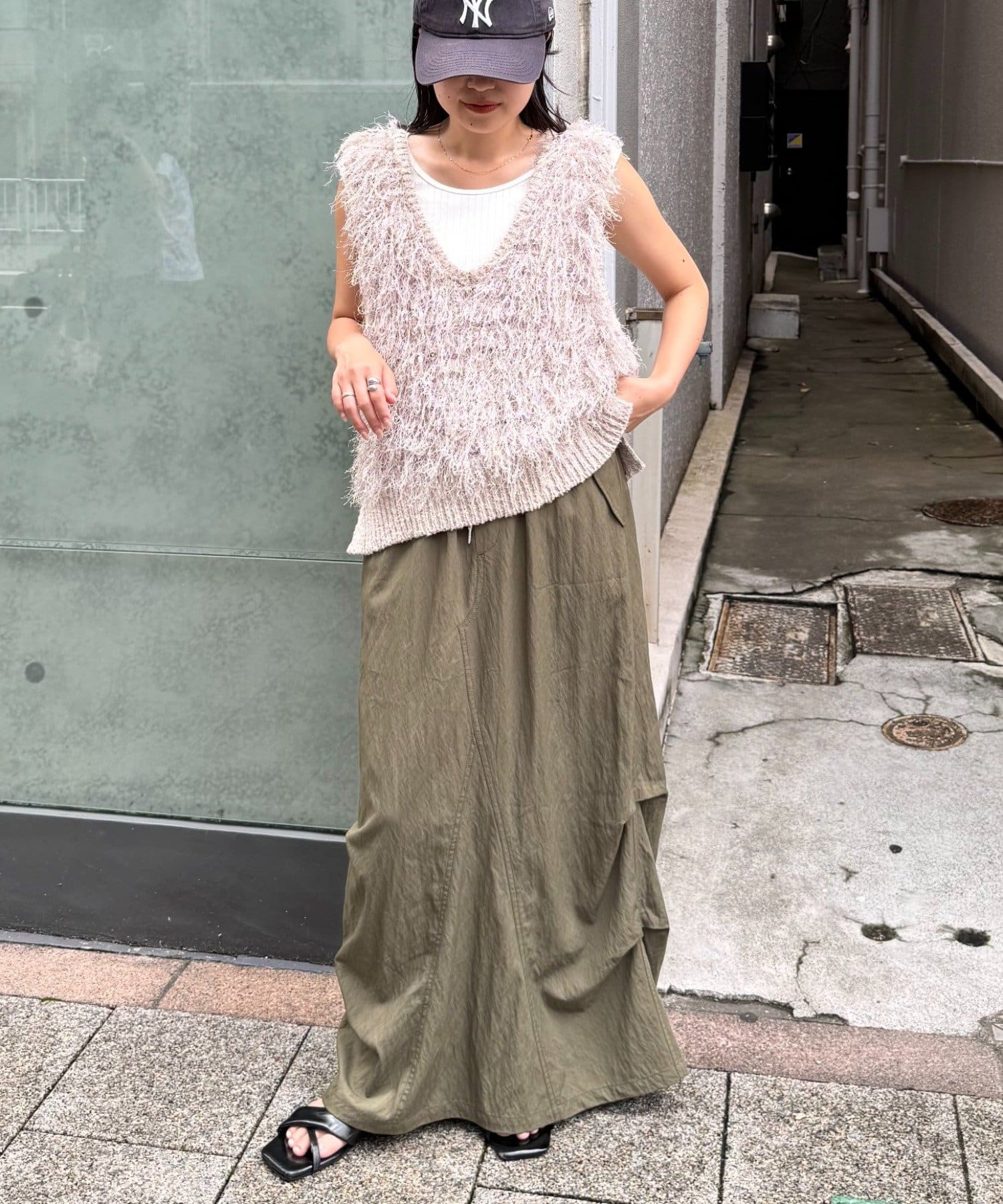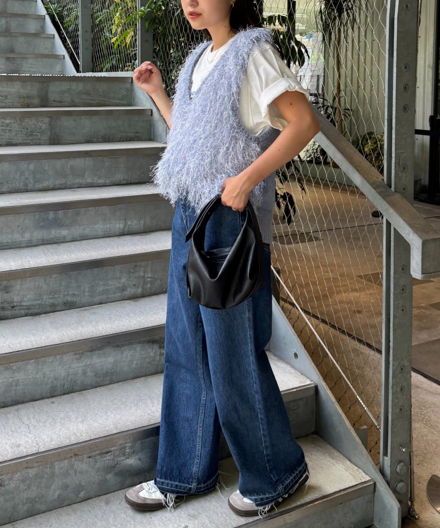目を引くふわふわとした素材感が特徴的なフリンジベスト。