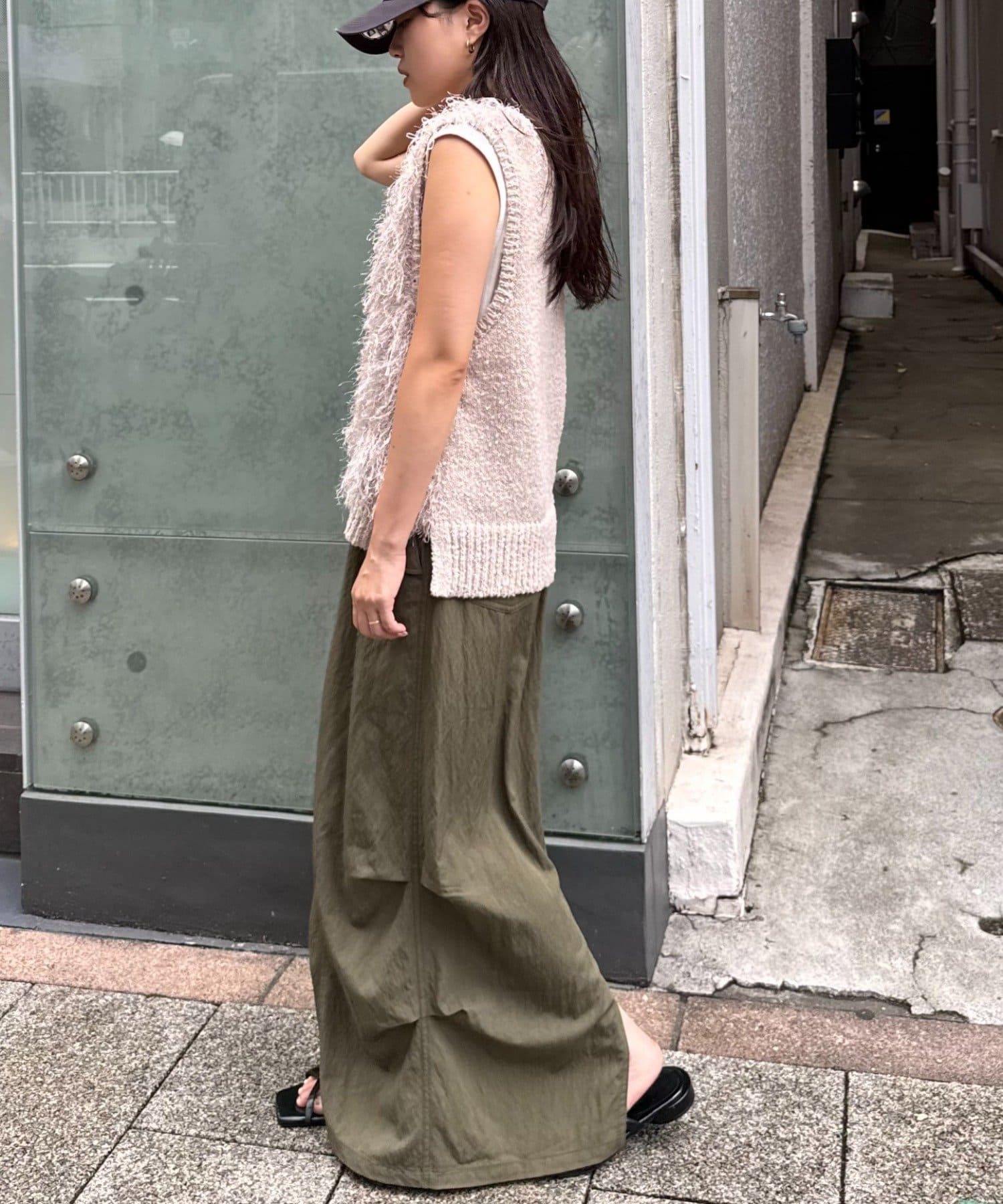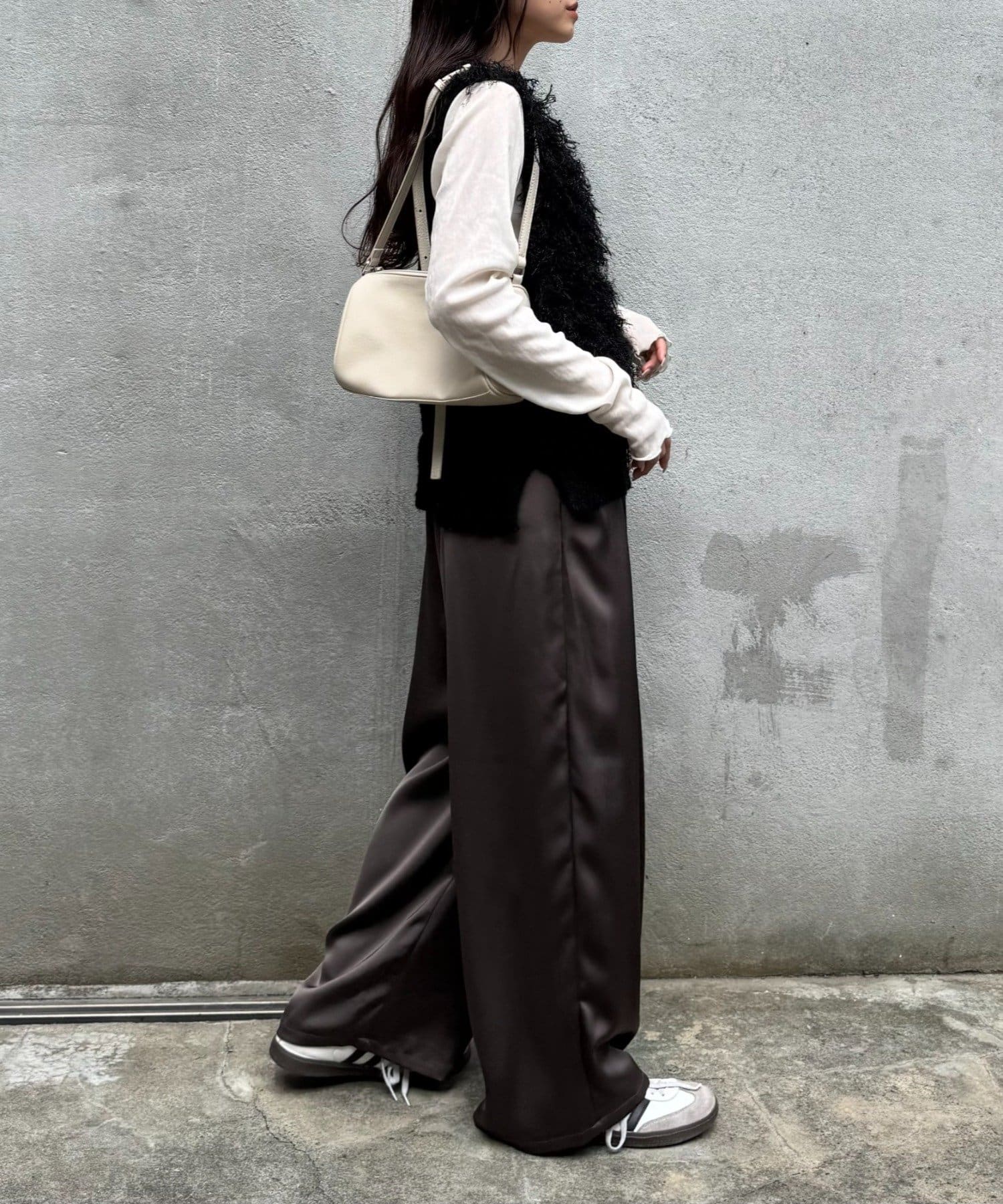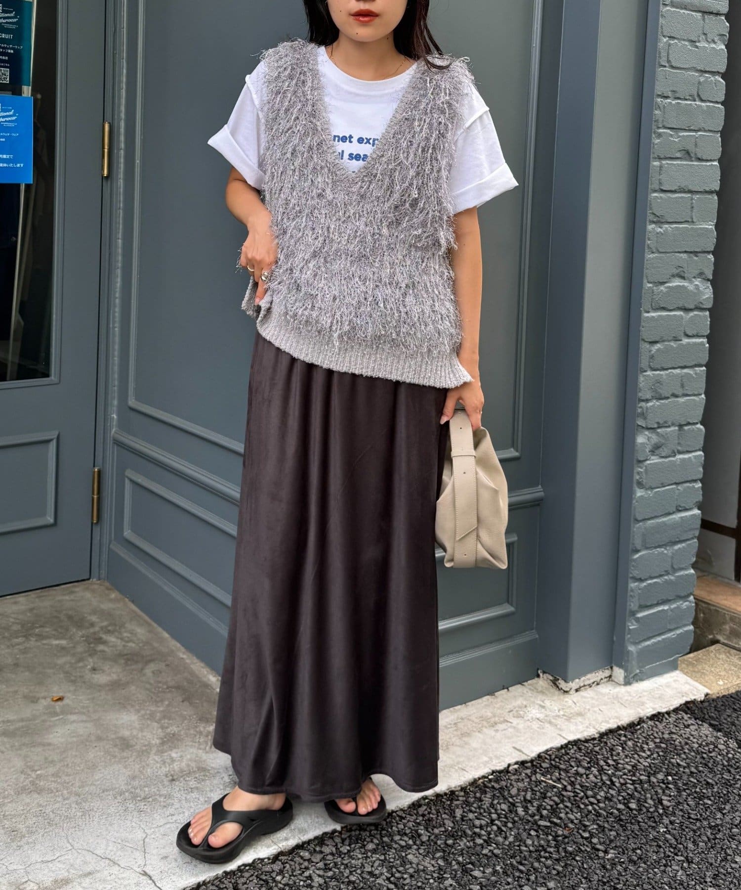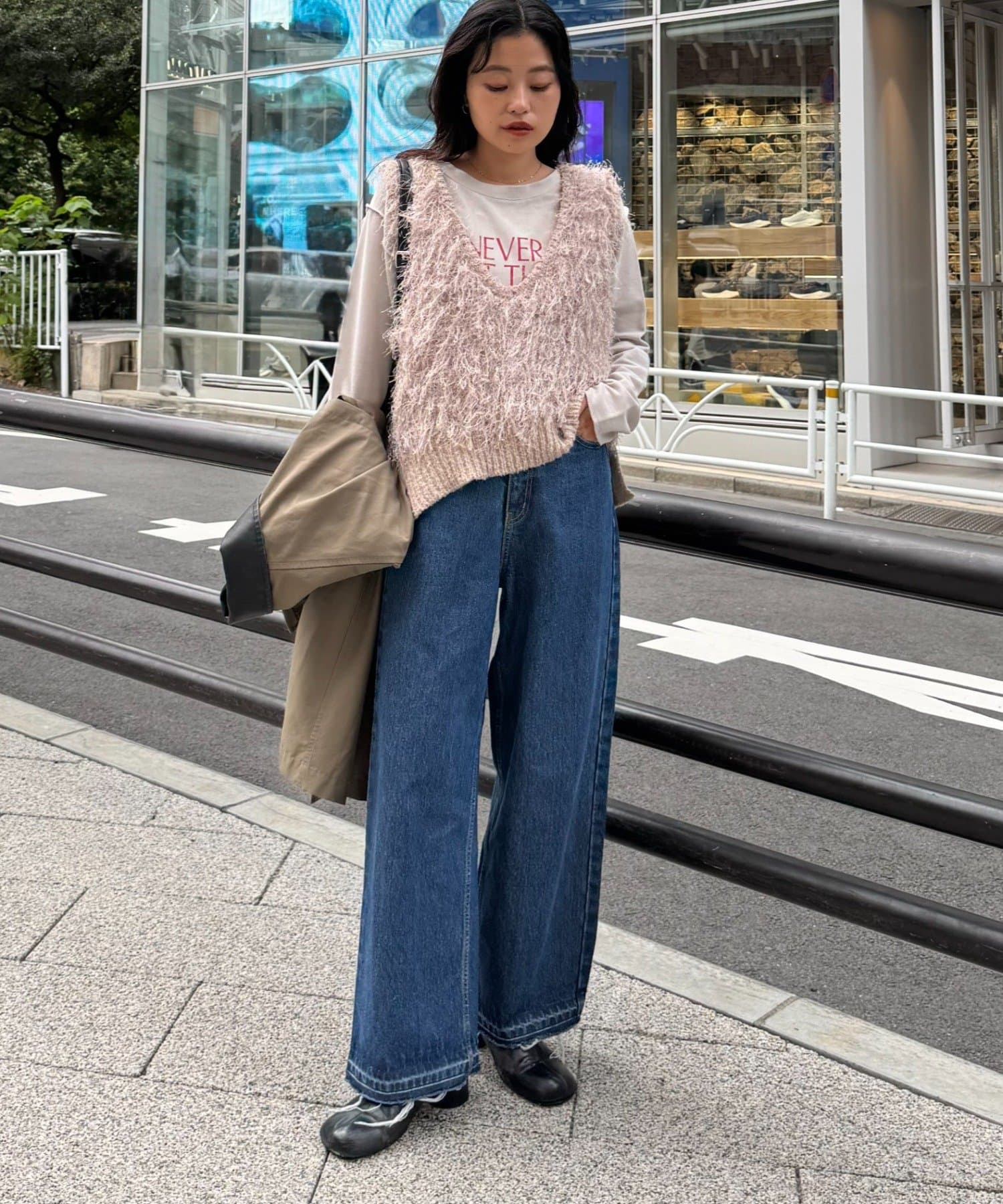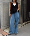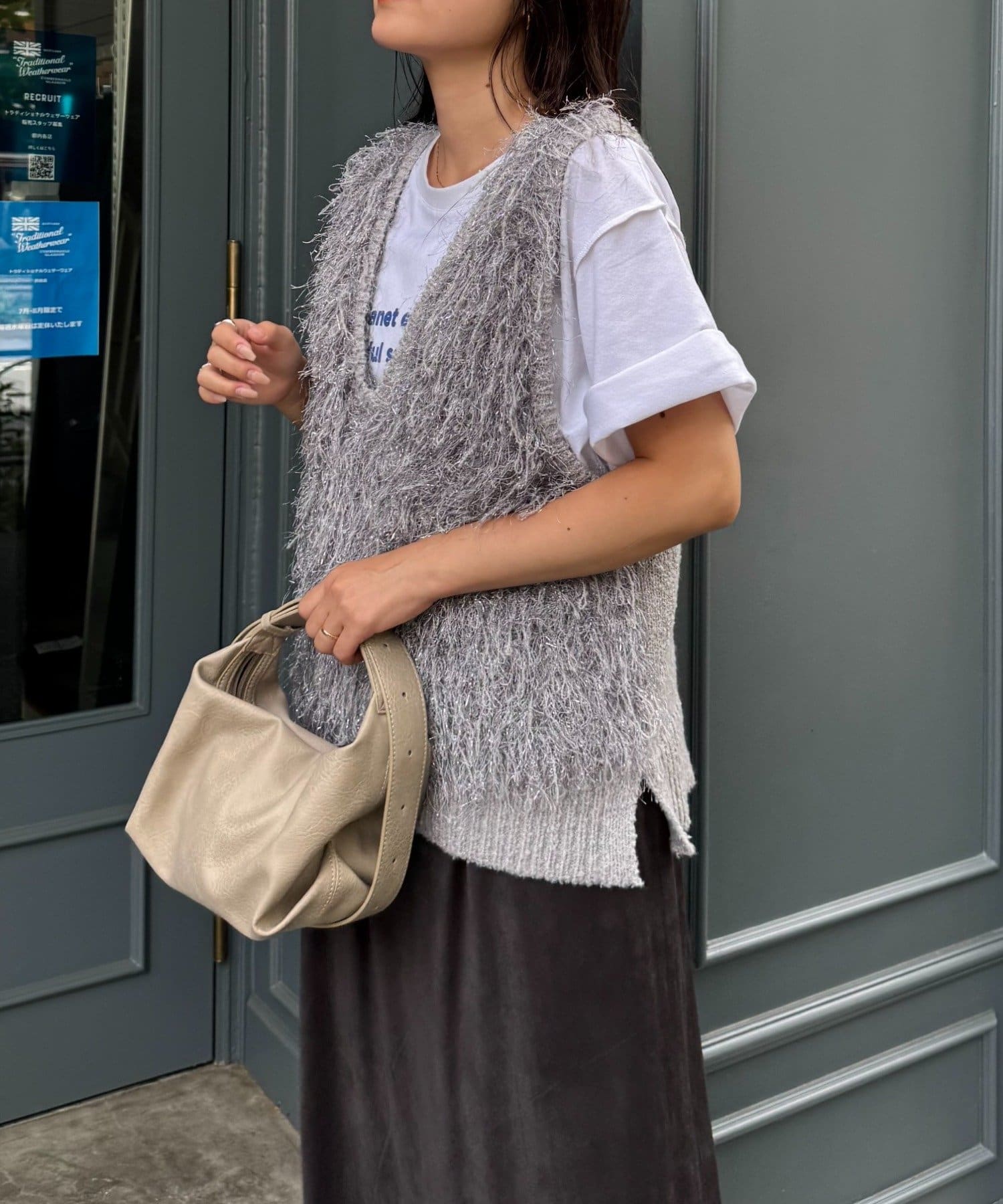 目を引くふわふわとした素材感が特徴的なフリンジベスト。