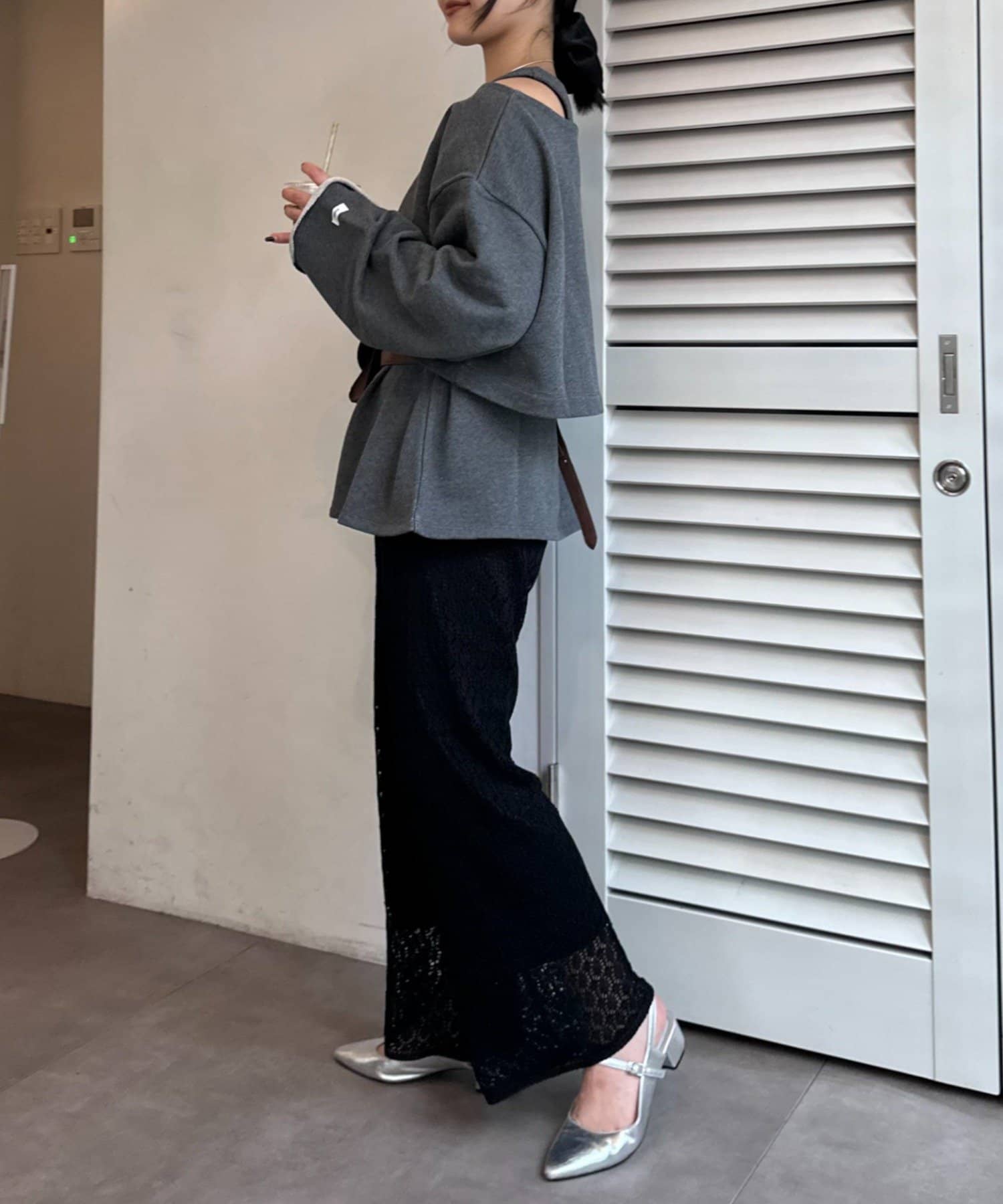 オーバーなサイズ感なのでフレアシルエットのパンツとも相性◎
