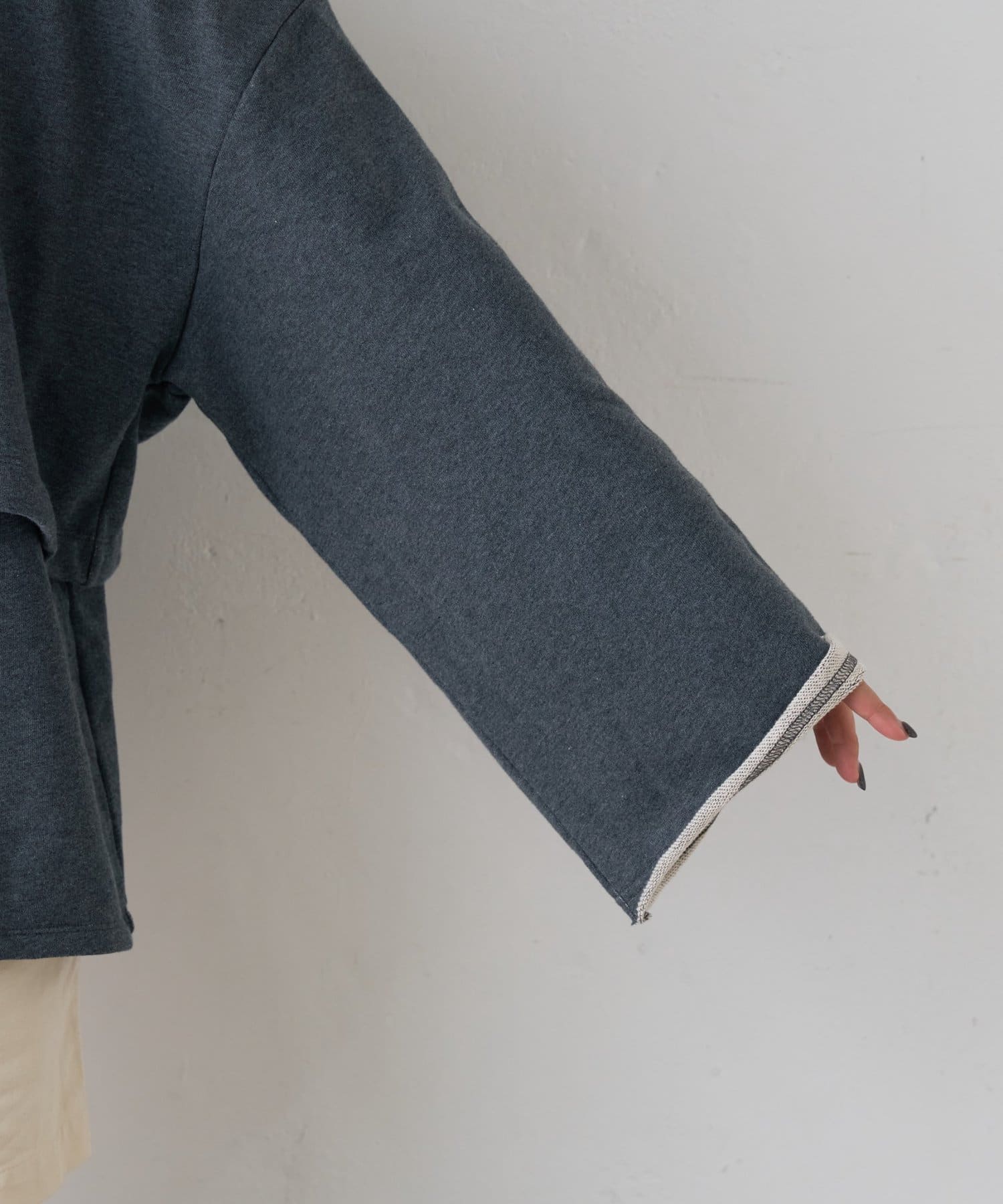 ゆるっとシルエットとワイドスリーブが今っぽいスウェット。