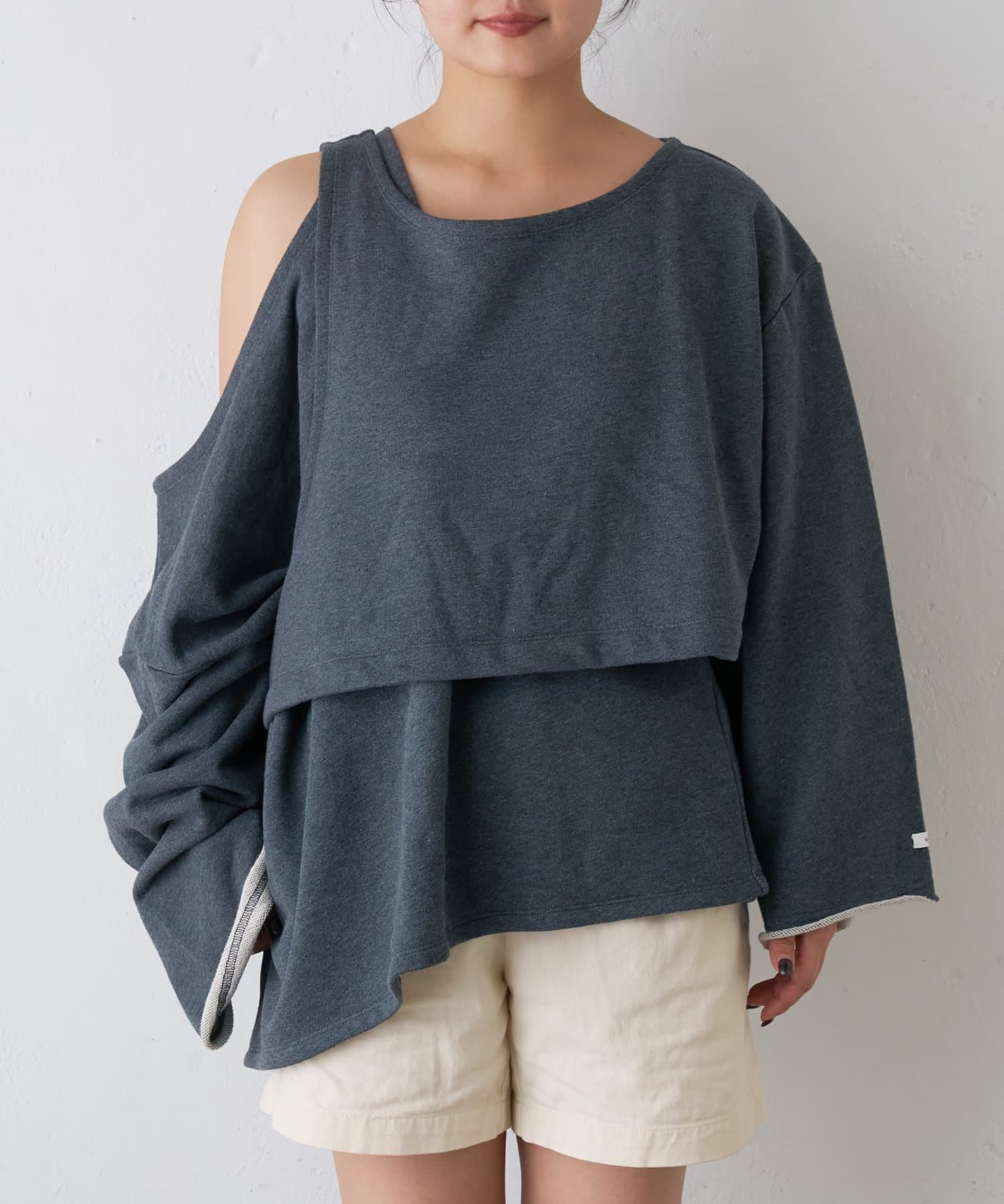アシメデザインがポイントのオーバースウェット