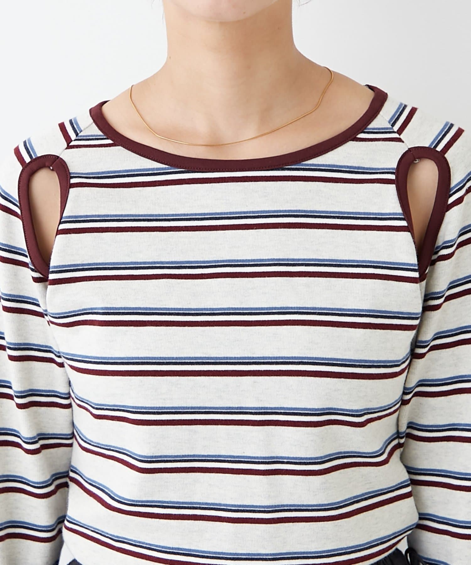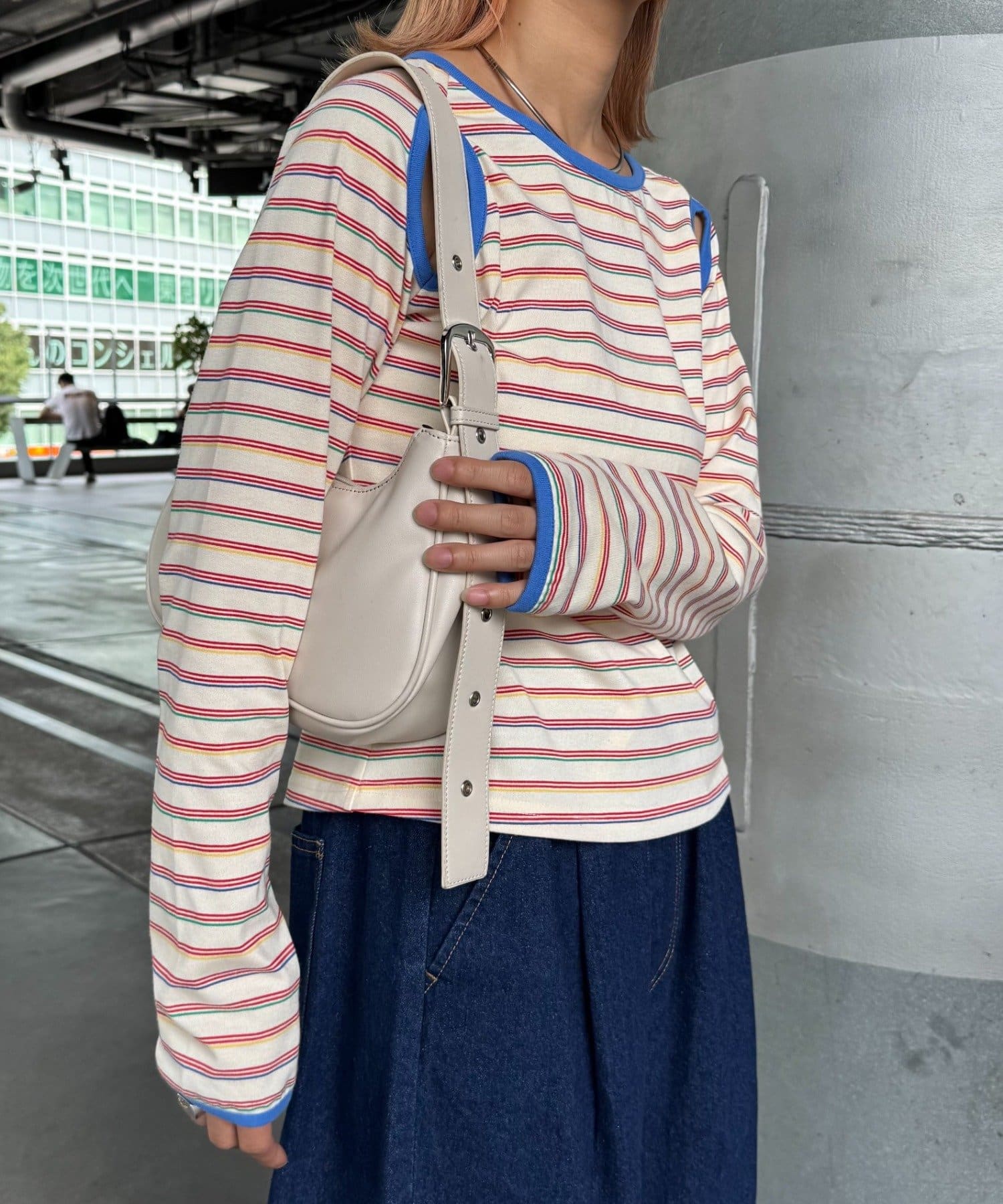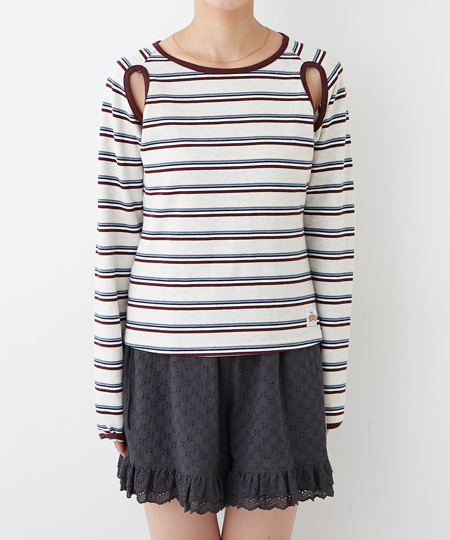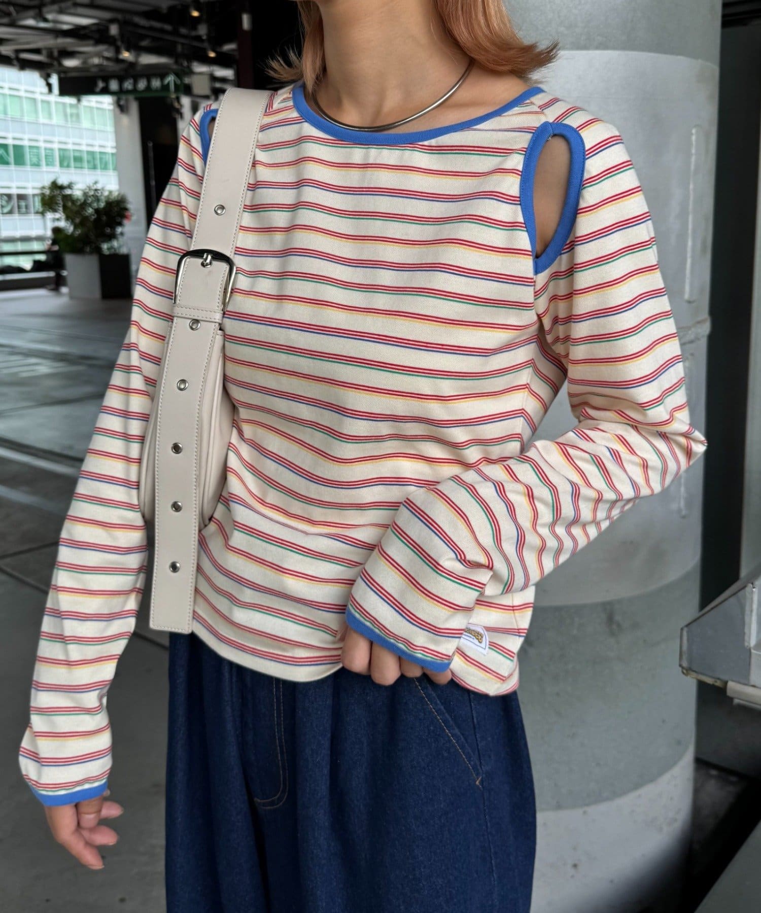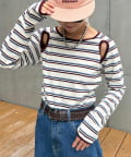 ストリートムードとガーリーさをMIXした、ちょっぴり肌見せがアクセントのマルチボーダーTEE