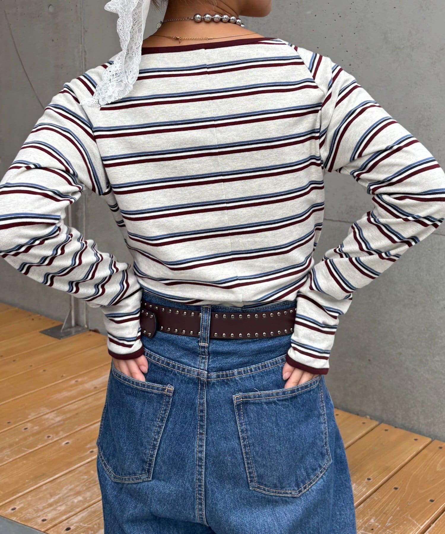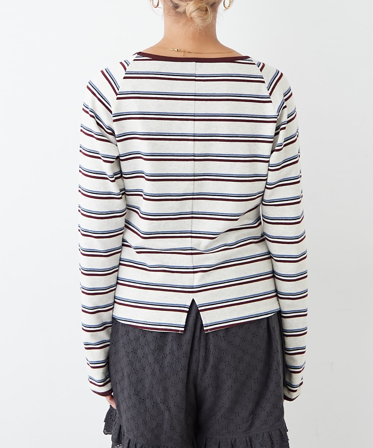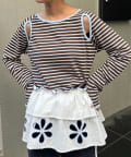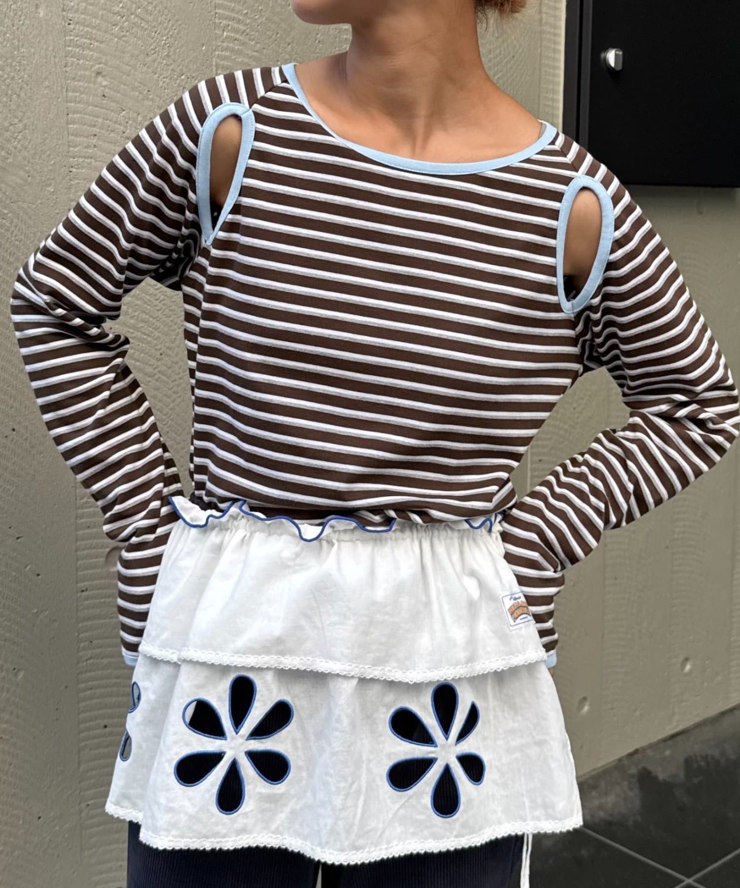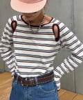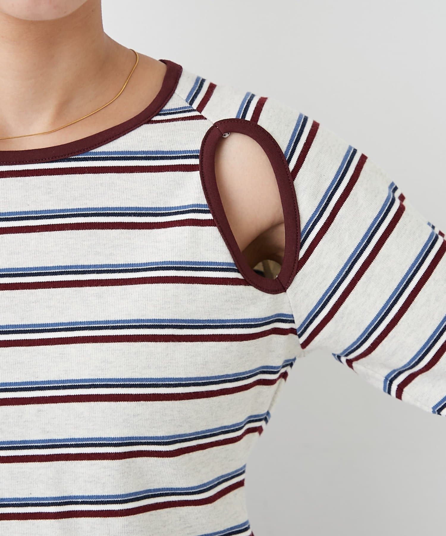 ストリートムードとガーリーさをMIXした、ちょっぴり肌見せがアクセントのマルチボーダーTEE