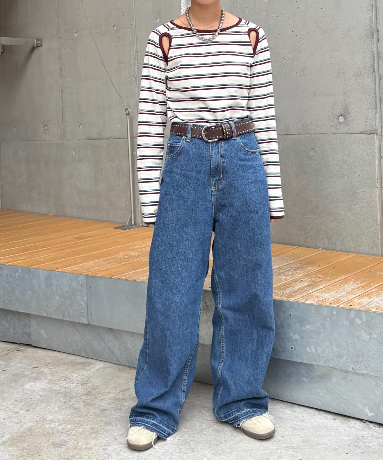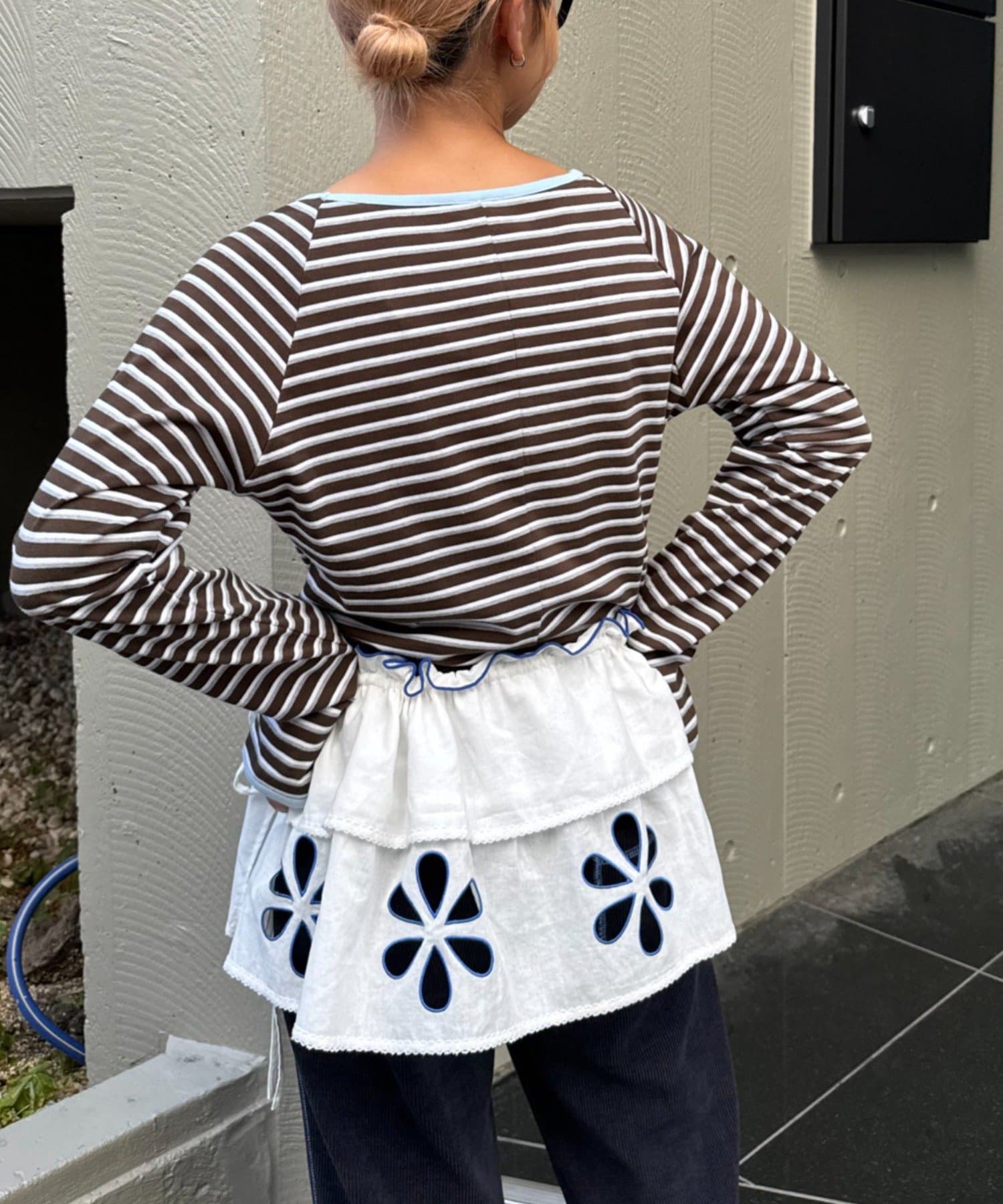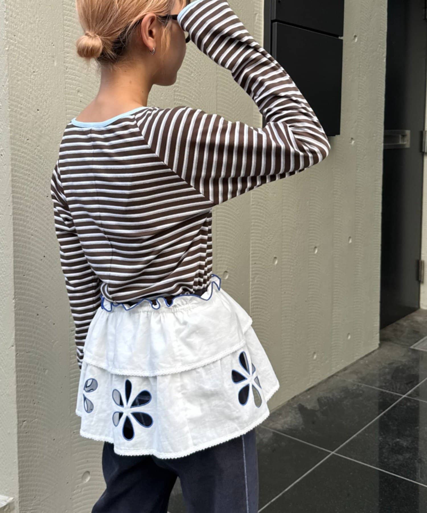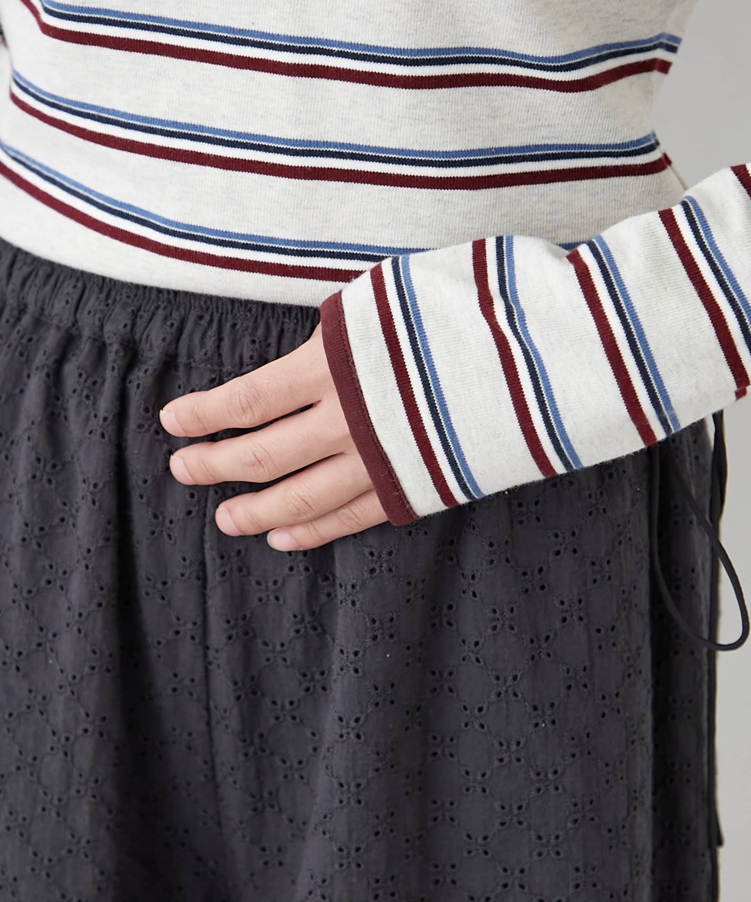 ストリートムードとガーリーさをMIXした、ちょっぴり肌見せがアクセントのマルチボーダーTEE